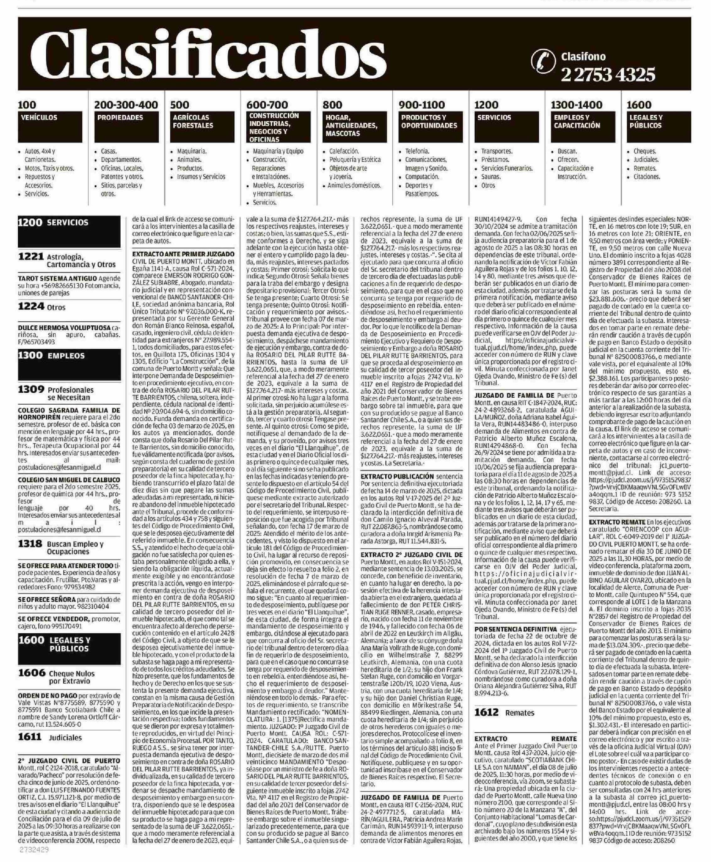 Extractos: CLASIFICADOS 18-06-2025 El Llanquihue |