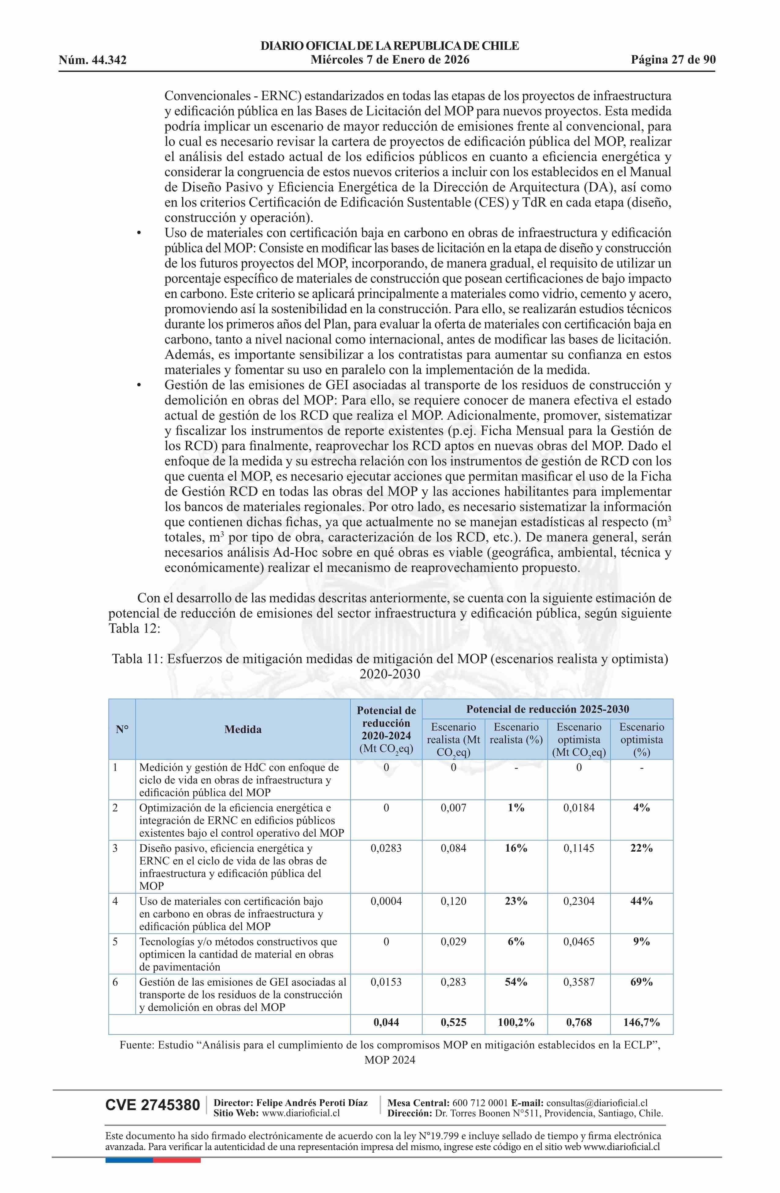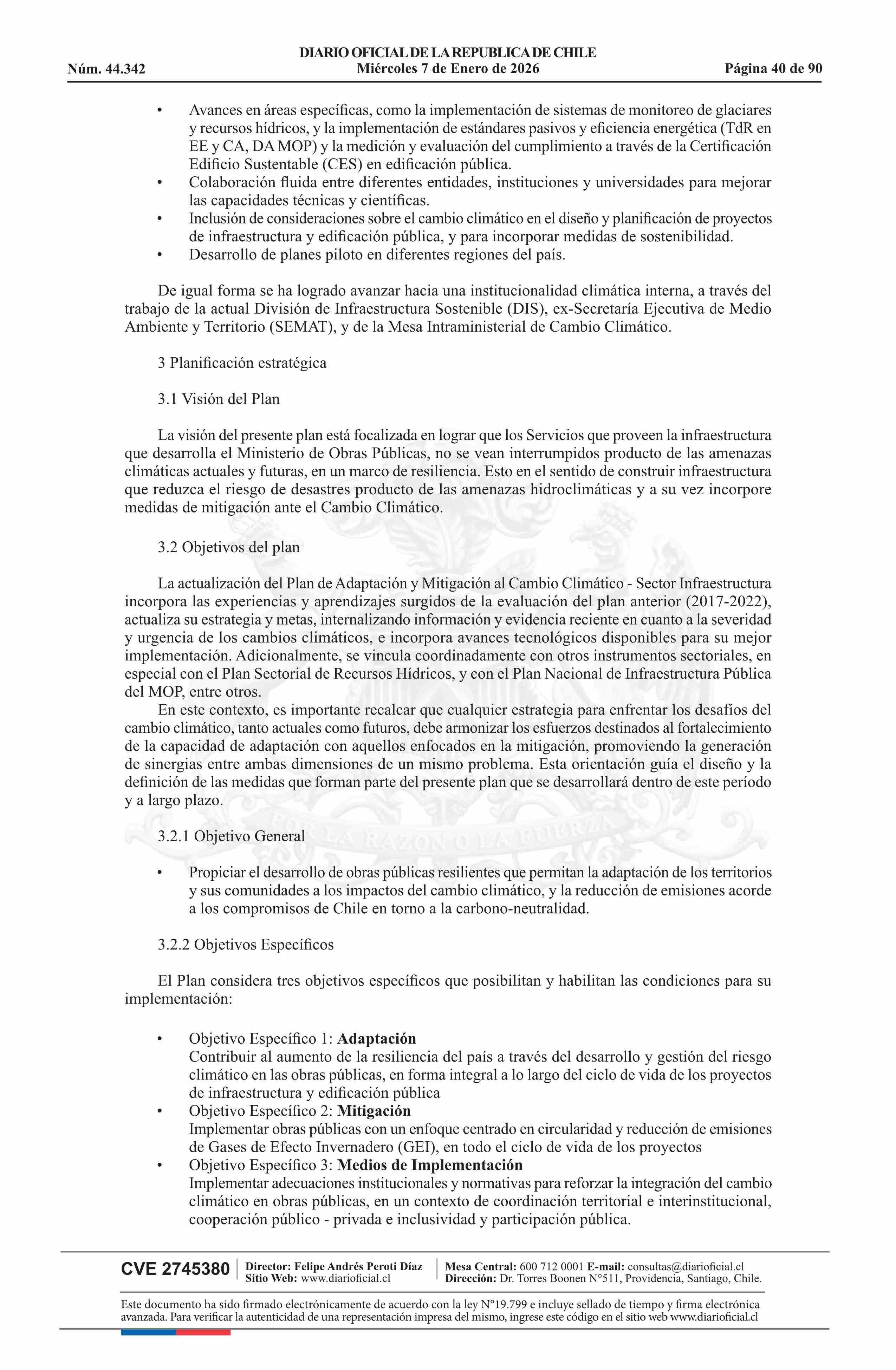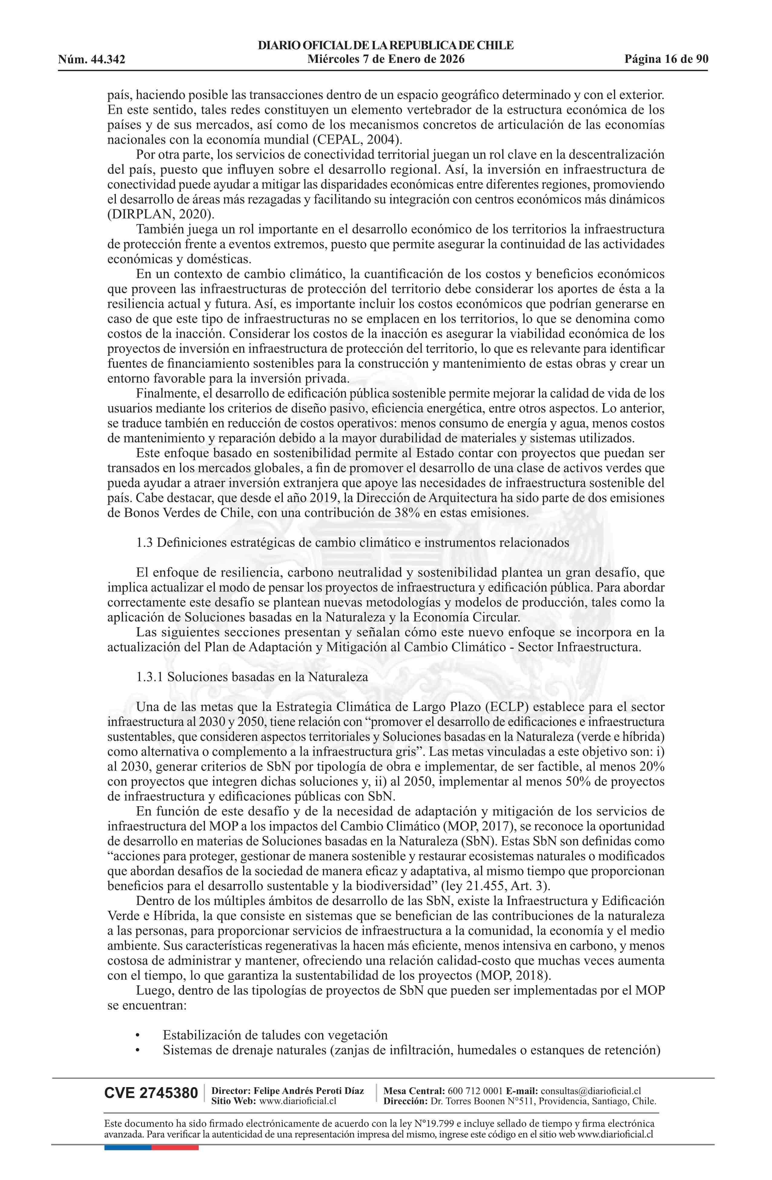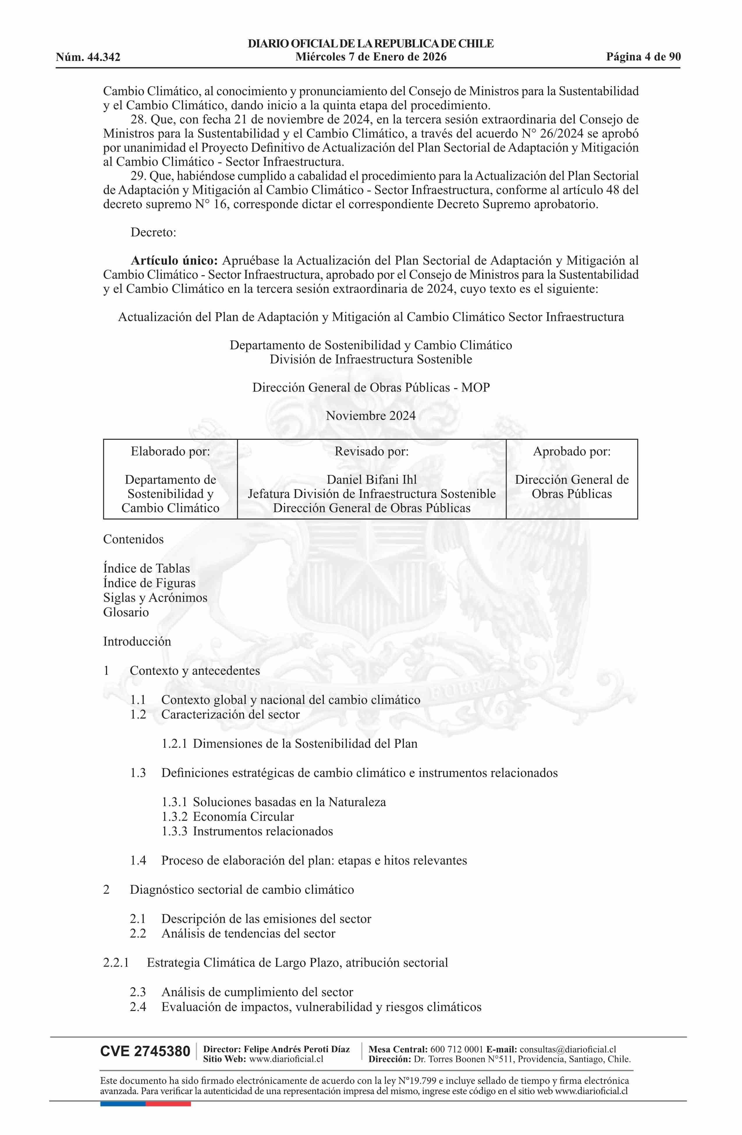 Decreto número 167, de 2024.- Aprueba actualización del Plan Sectorial de Adaptación y Mitigación al Cambio Climático - Sector Infraestructura 07-01-2026 Diario Oficial Edición Electrónica |