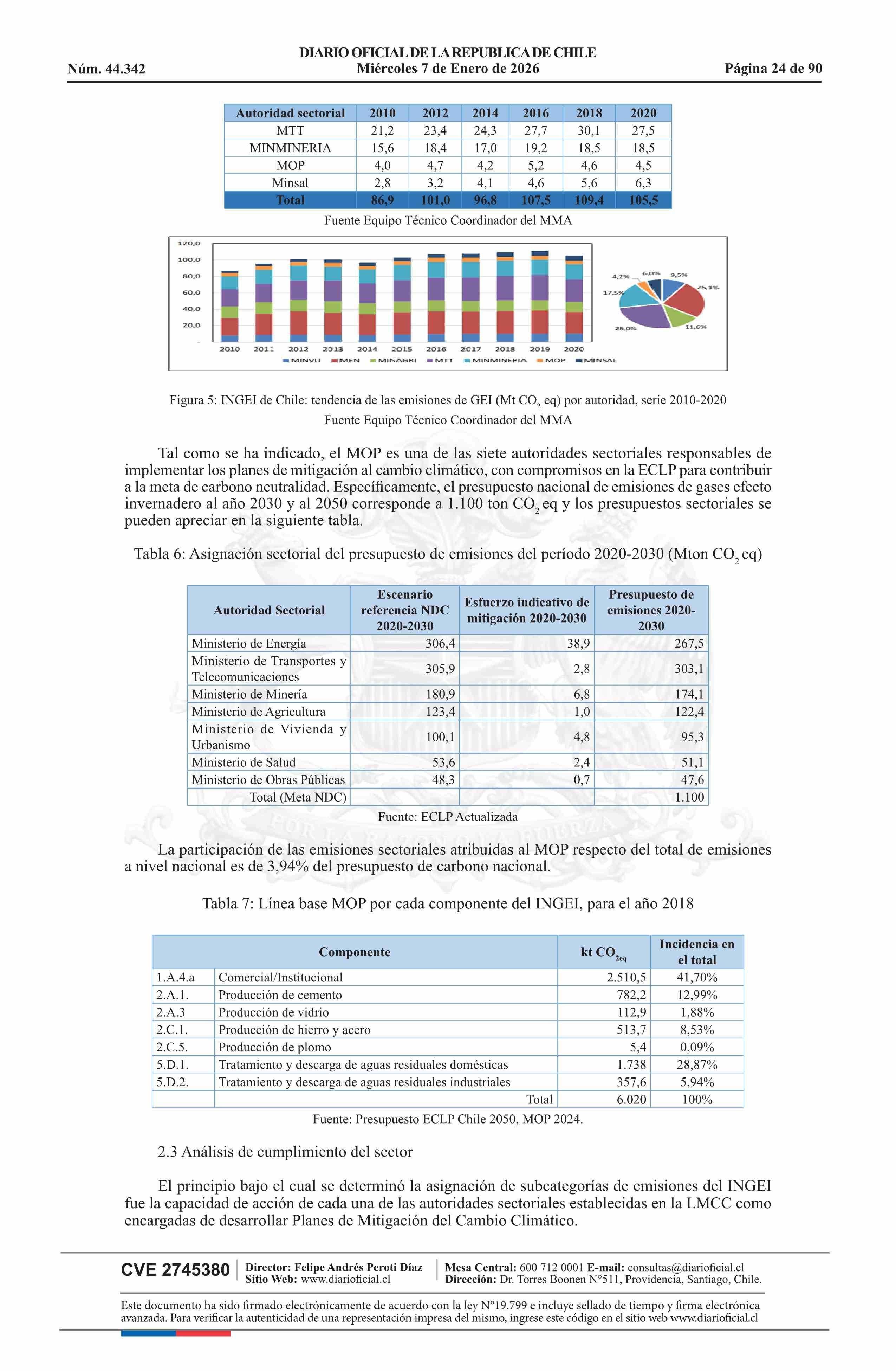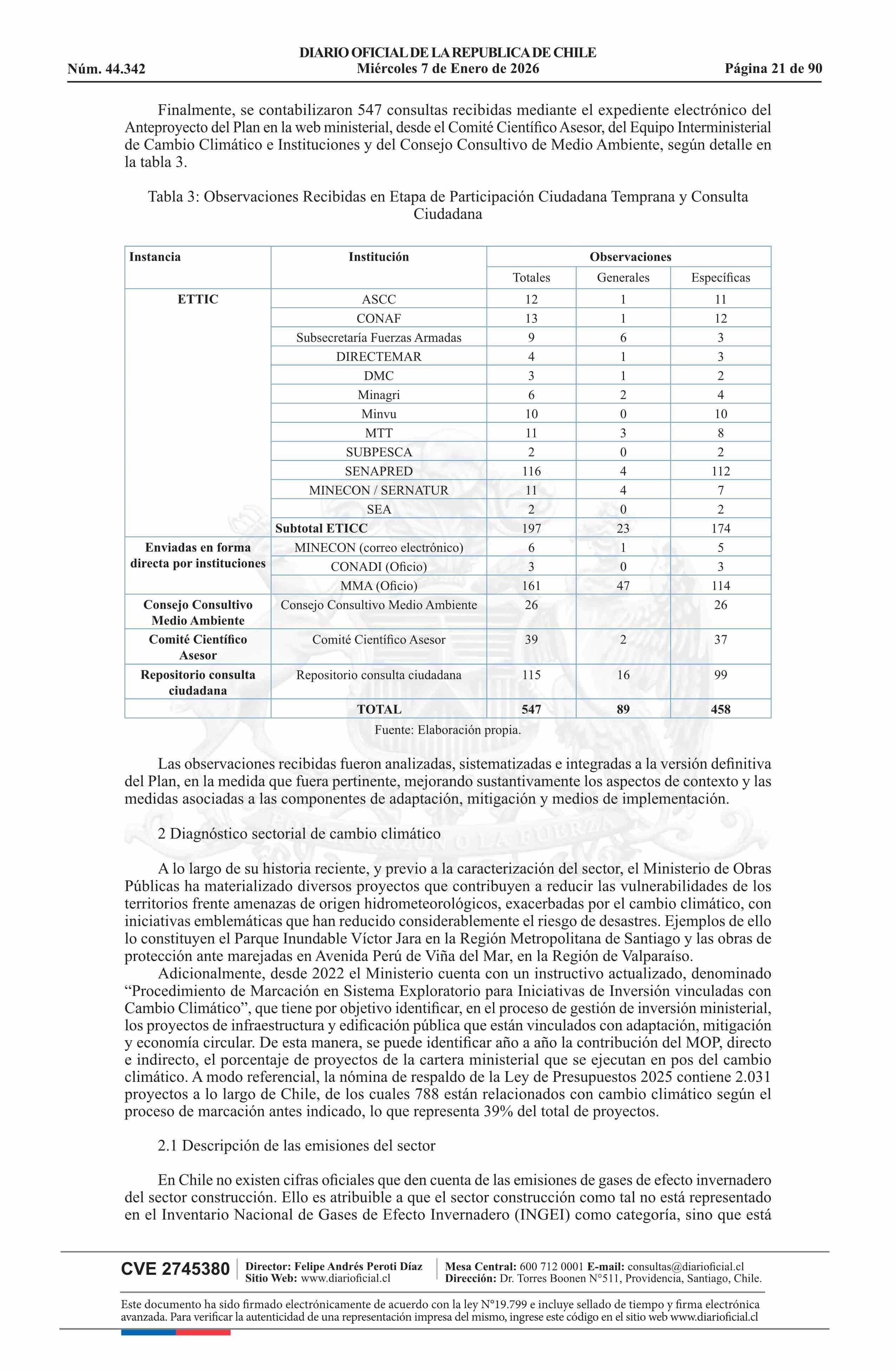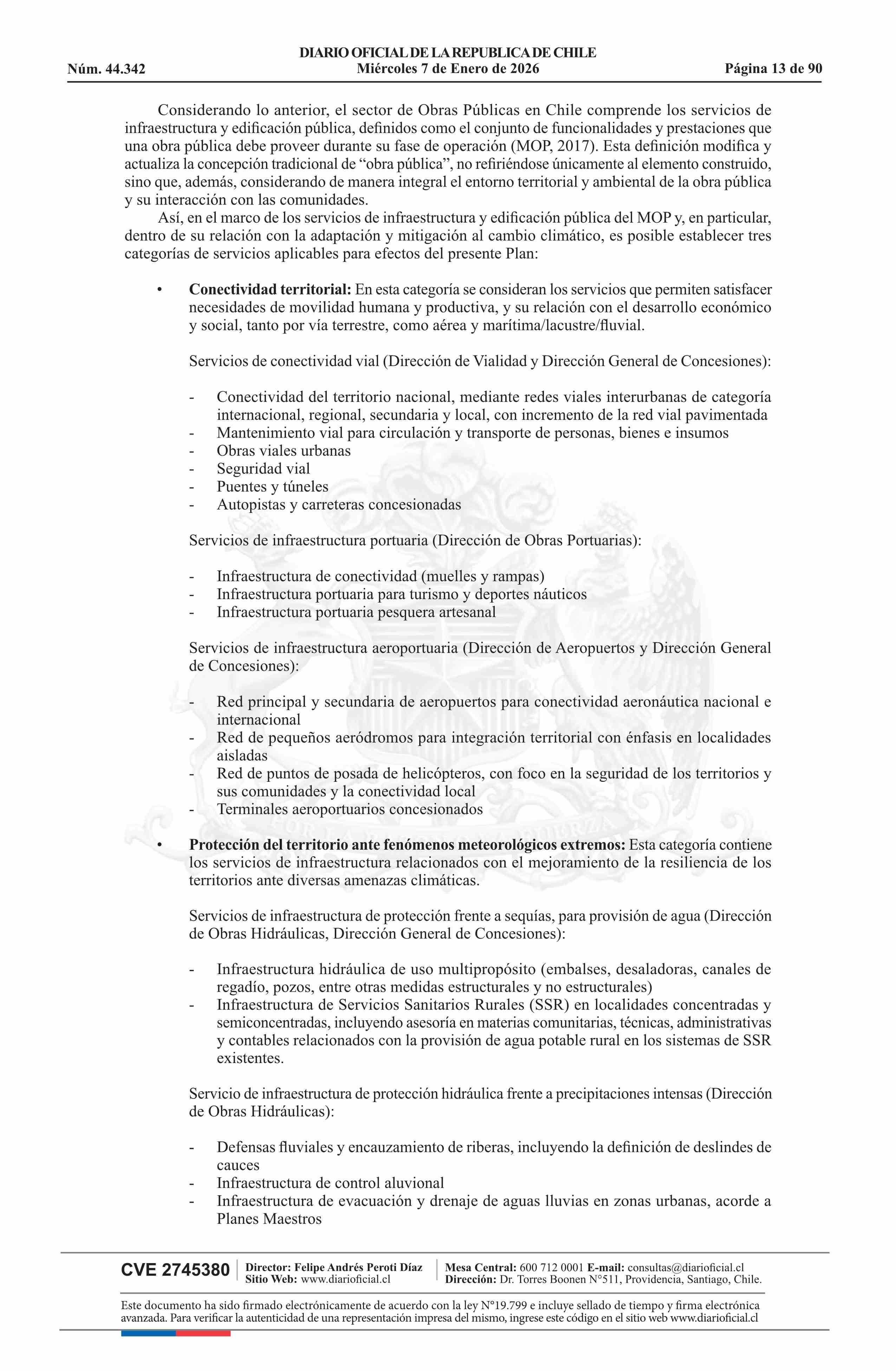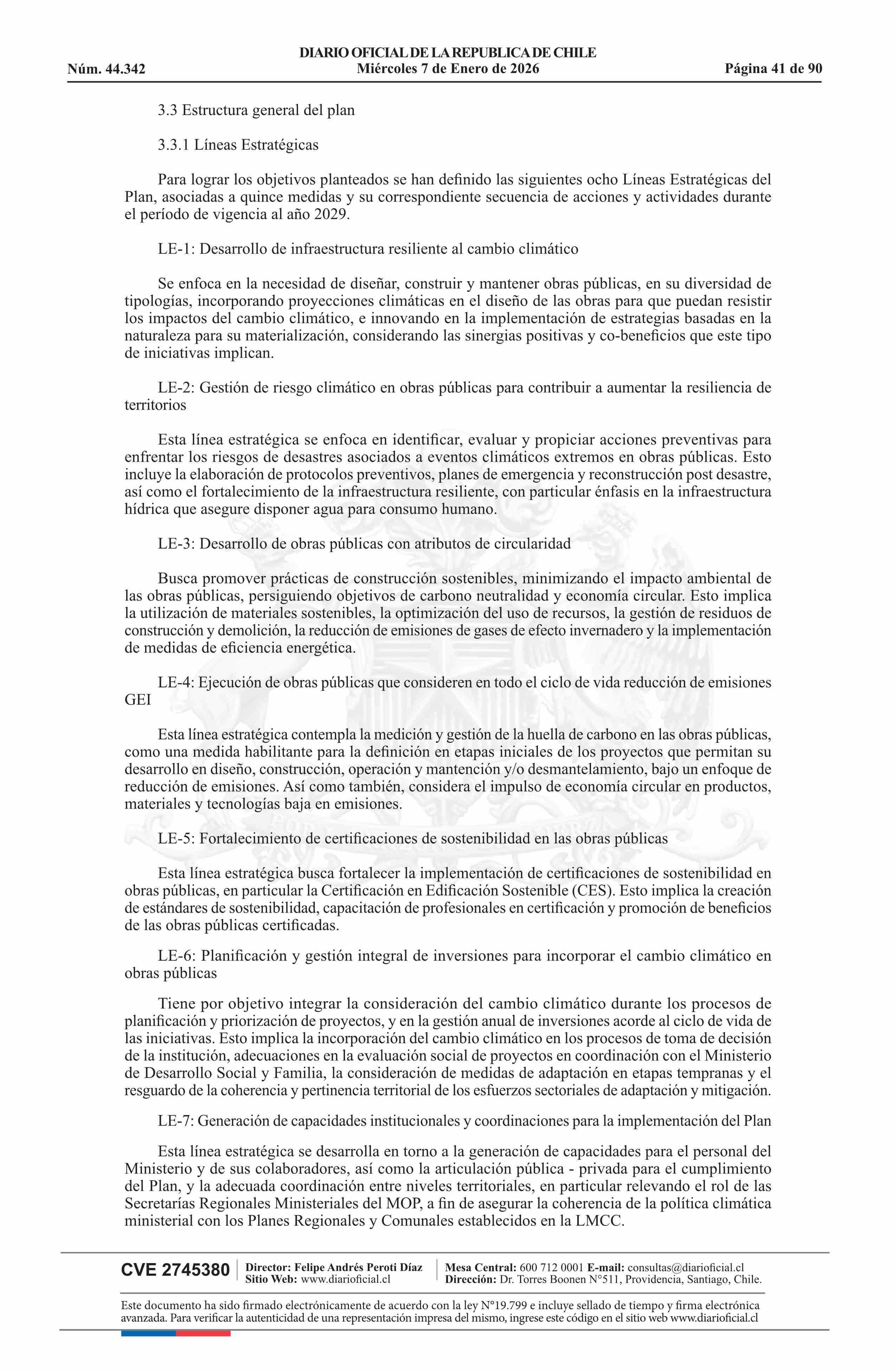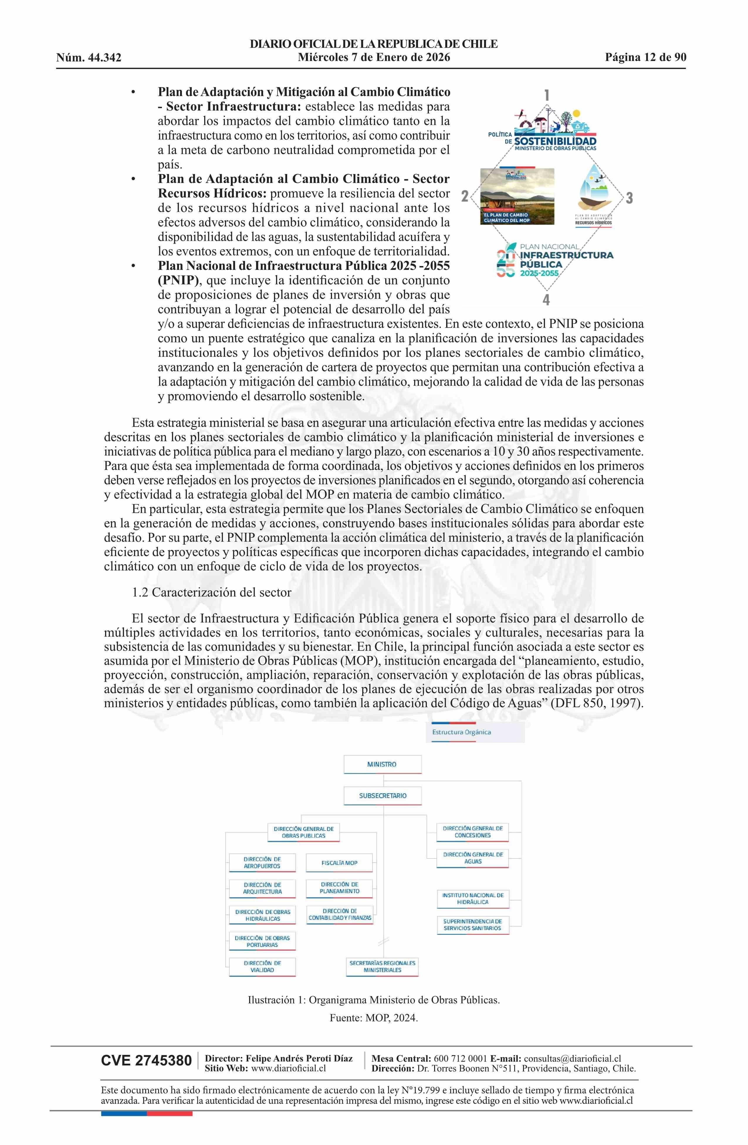 Decreto número 167, de 2024.- Aprueba actualización del Plan Sectorial de Adaptación y Mitigación al Cambio Climático - Sector Infraestructura 07-01-2026 Diario Oficial Edición Electrónica |