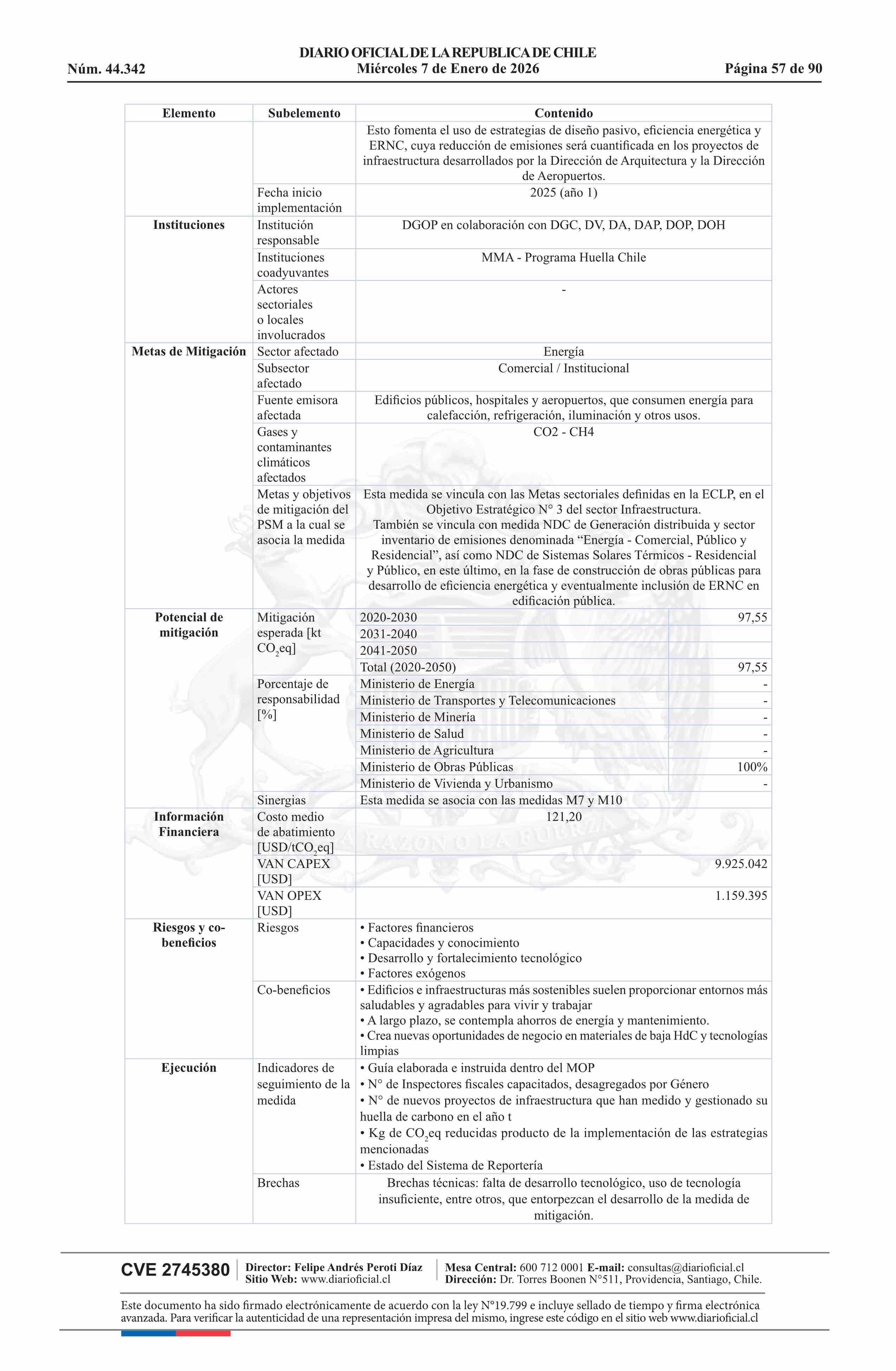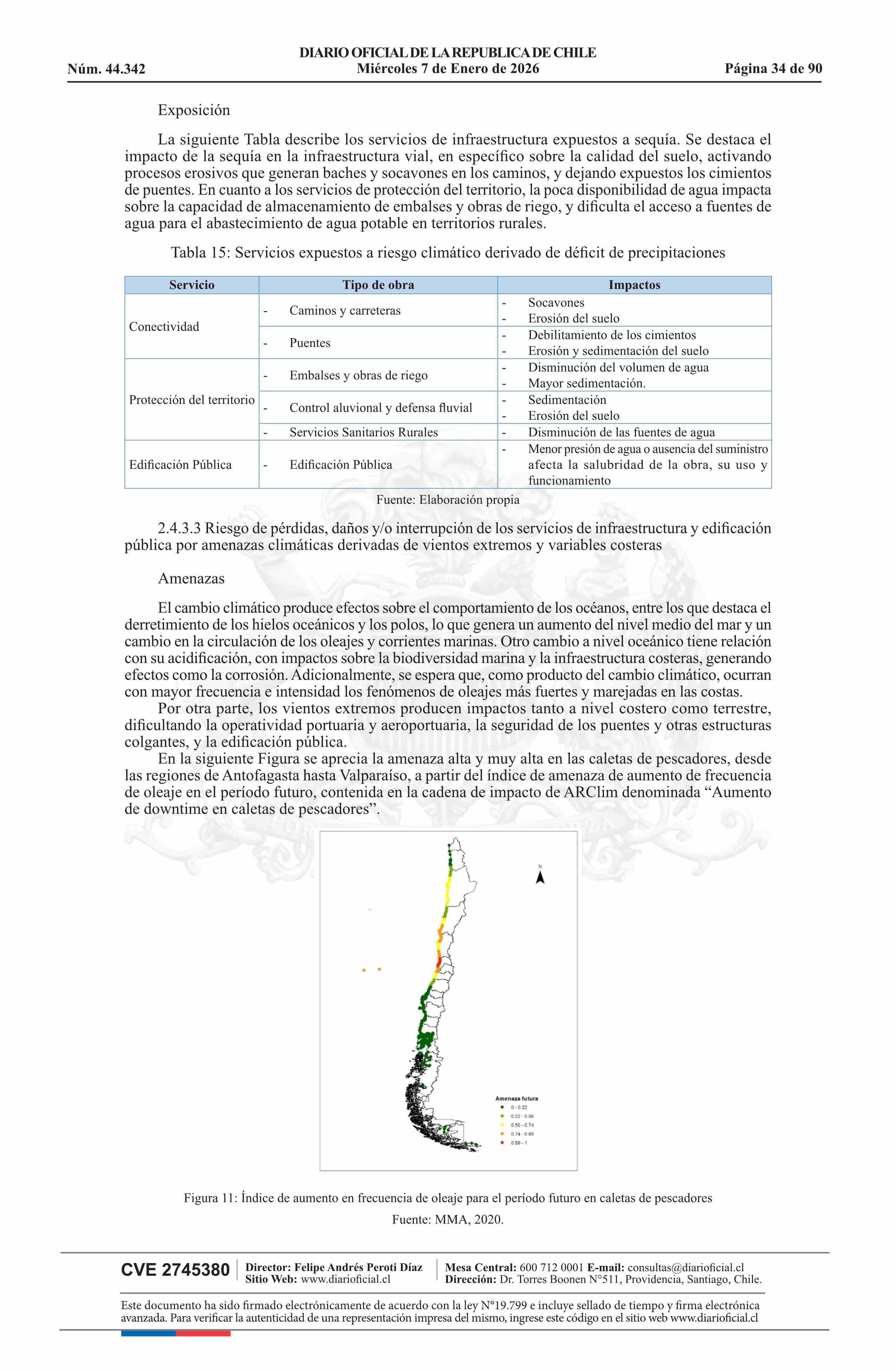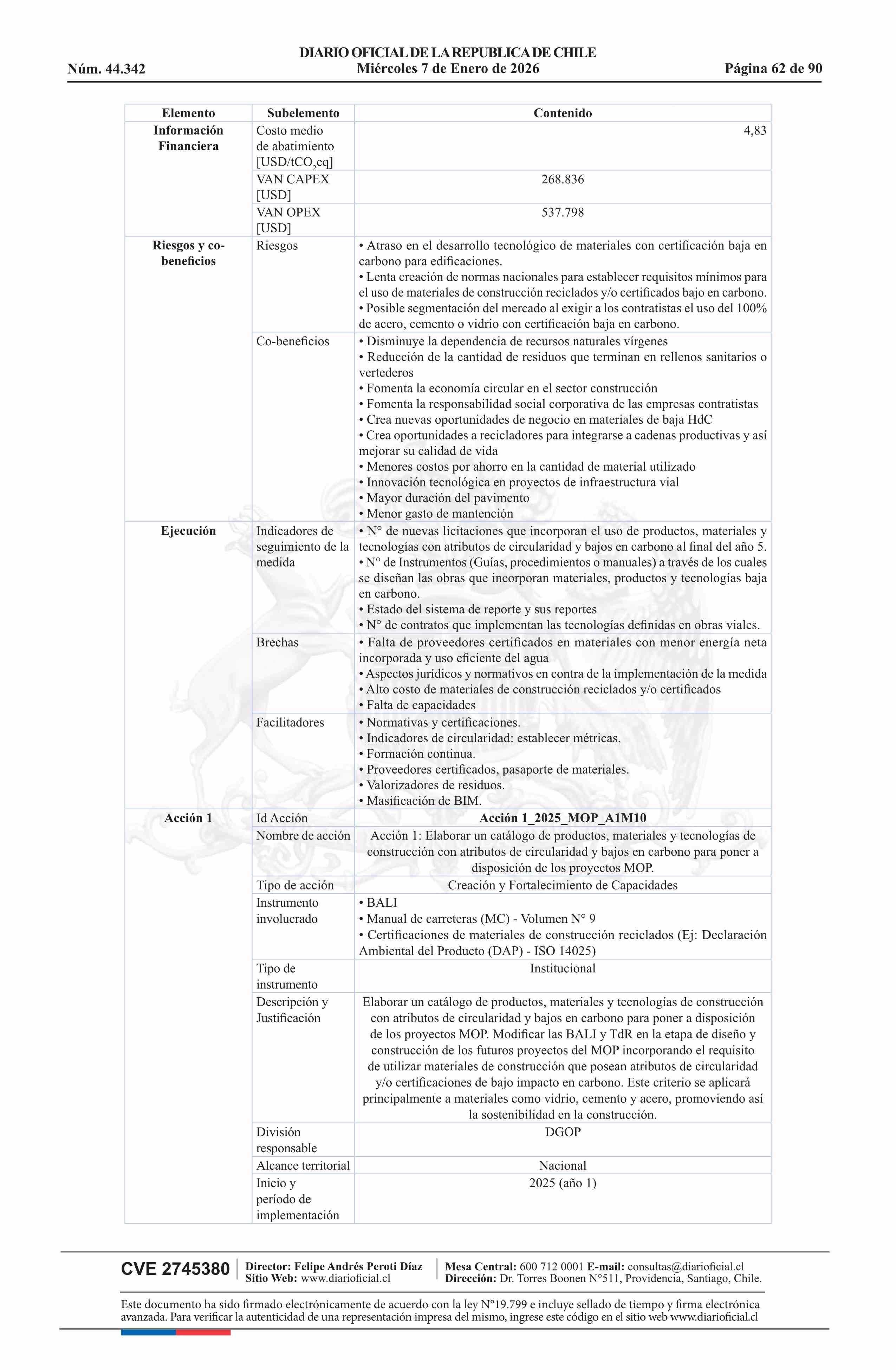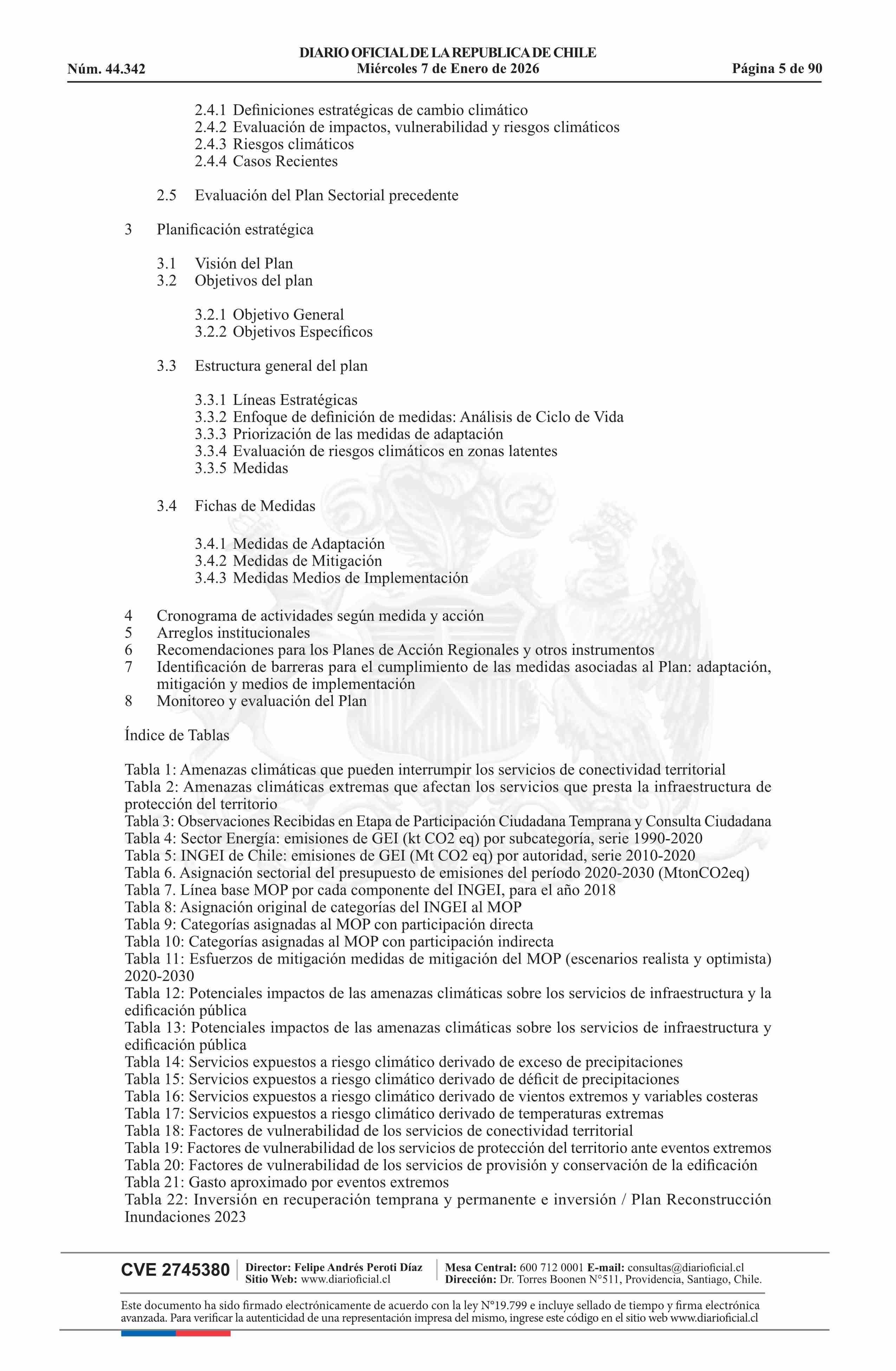 Decreto número 167, de 2024.- Aprueba actualización del Plan Sectorial de Adaptación y Mitigación al Cambio Climático - Sector Infraestructura 07-01-2026 Diario Oficial Edición Electrónica |