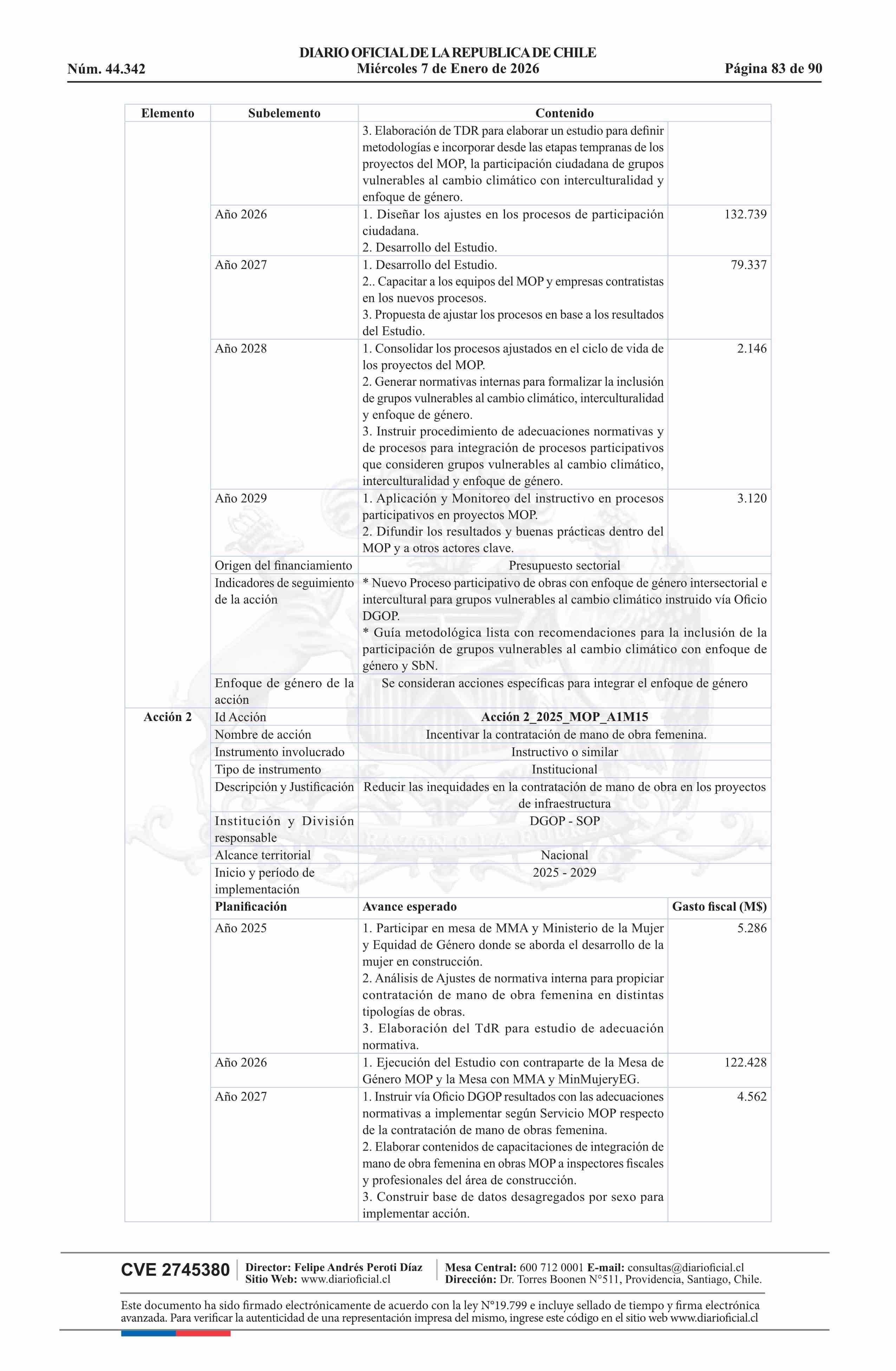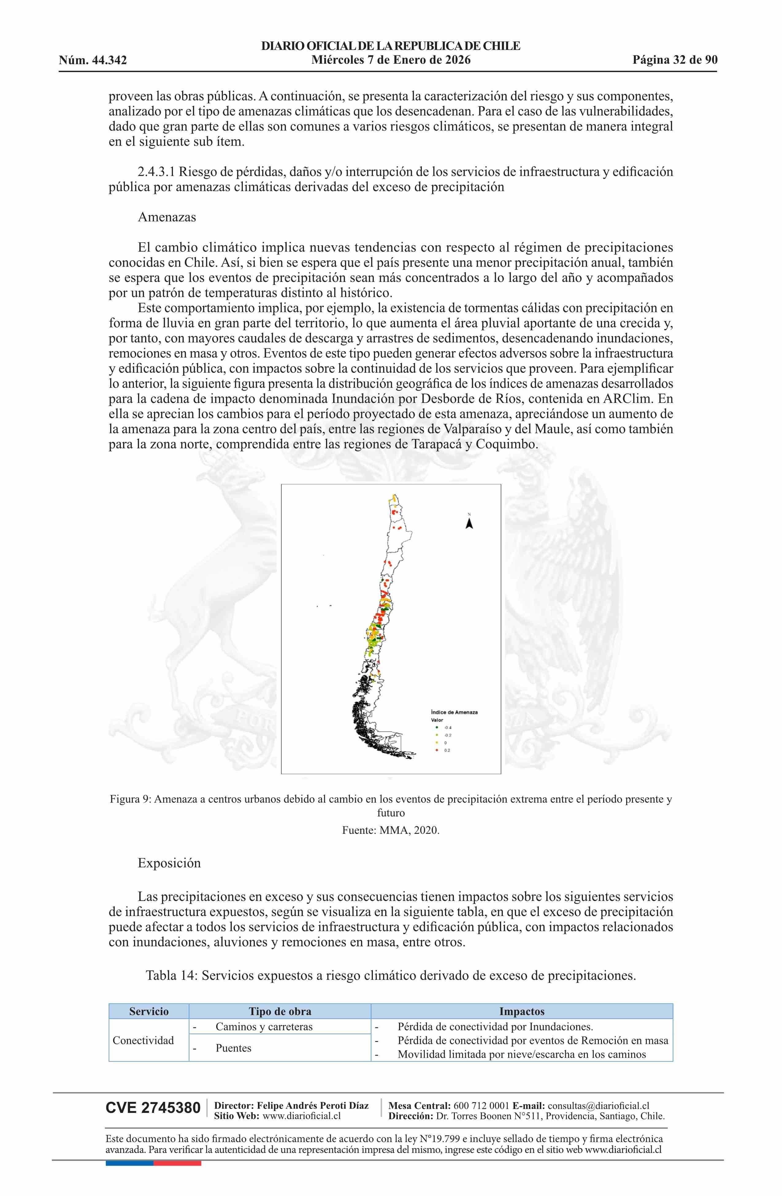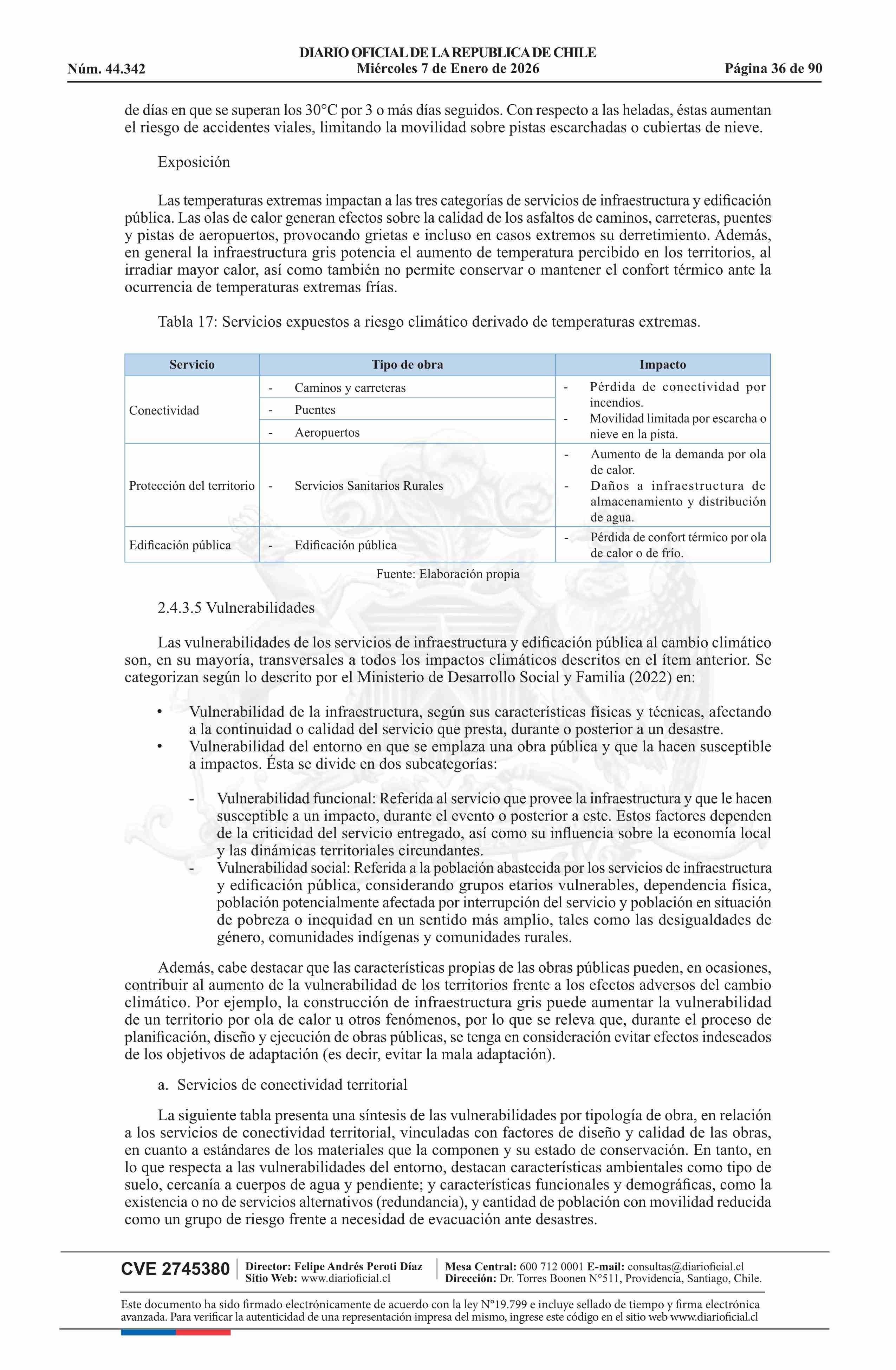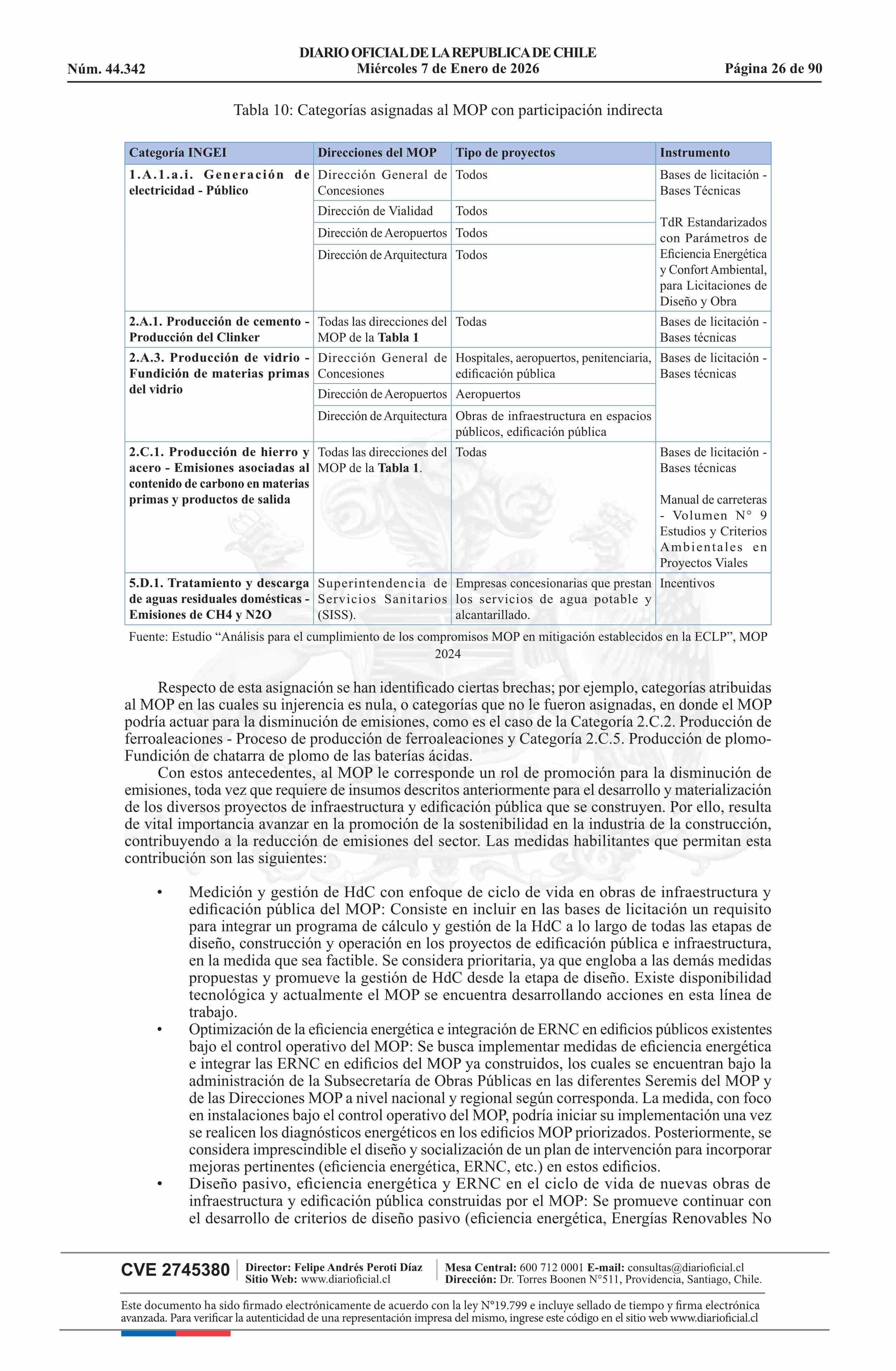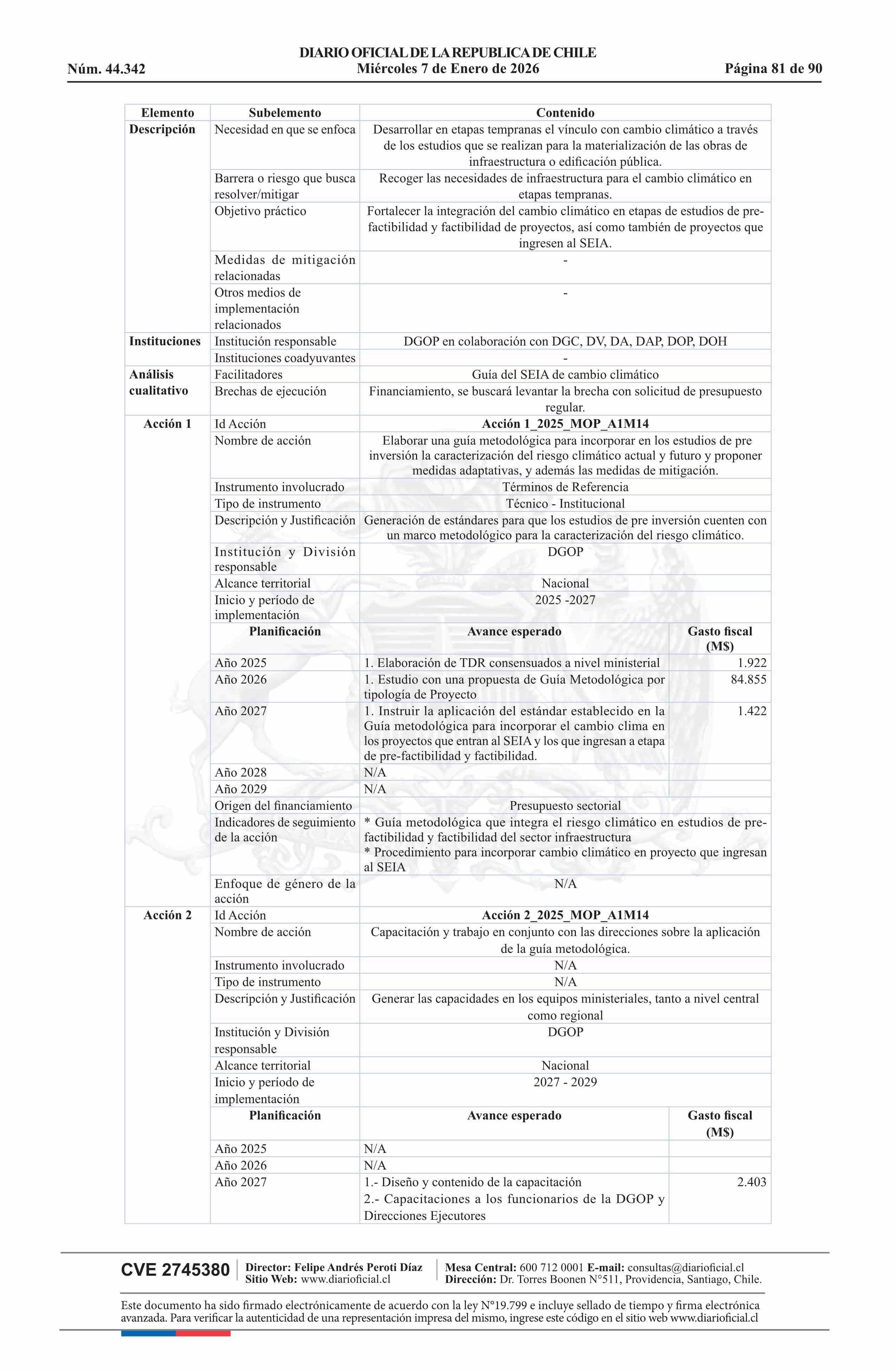 Decreto número 167, de 2024.- Aprueba actualización del Plan Sectorial de Adaptación y Mitigación al Cambio Climático - Sector Infraestructura 07-01-2026 Diario Oficial Edición Electrónica |