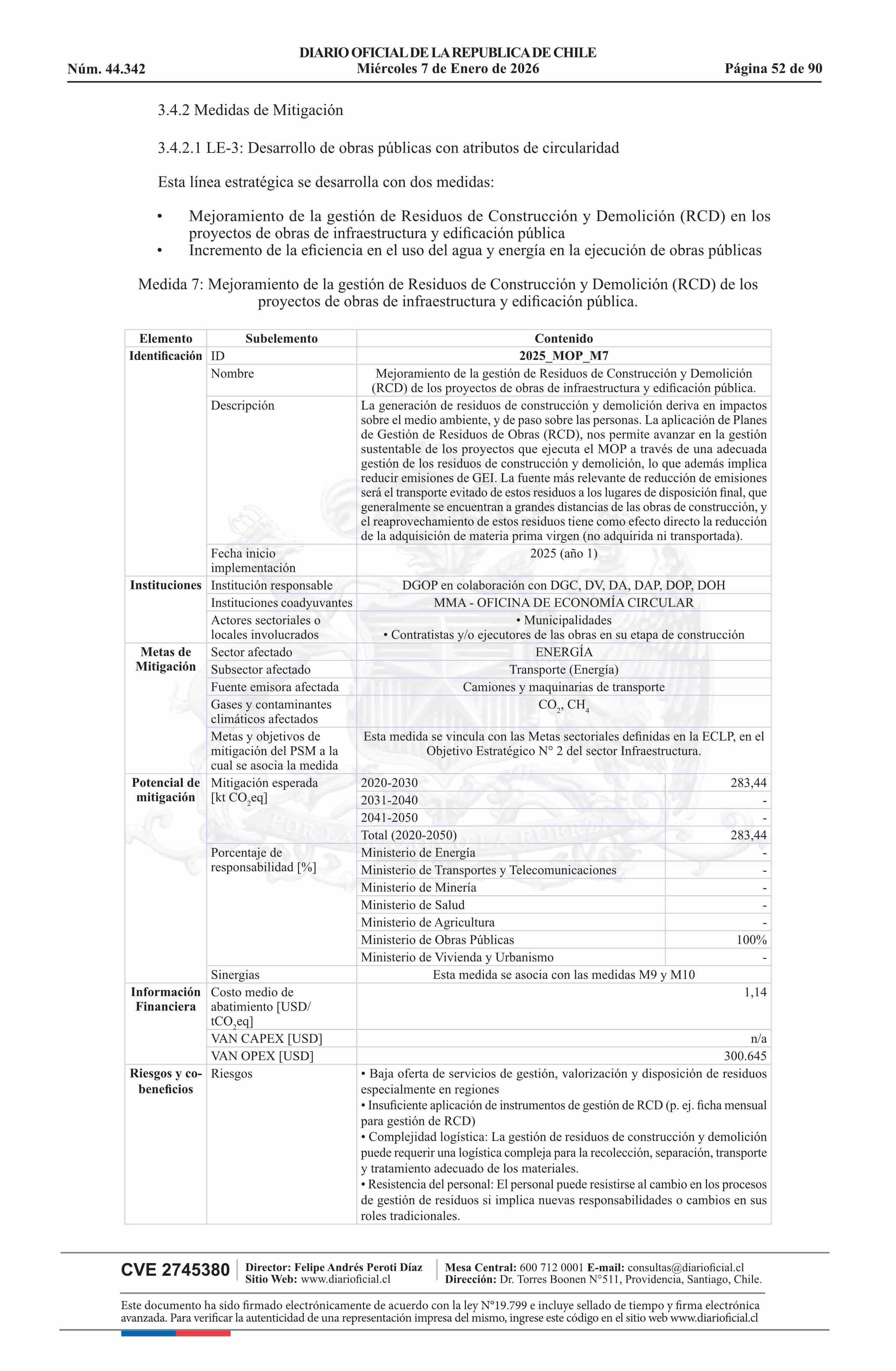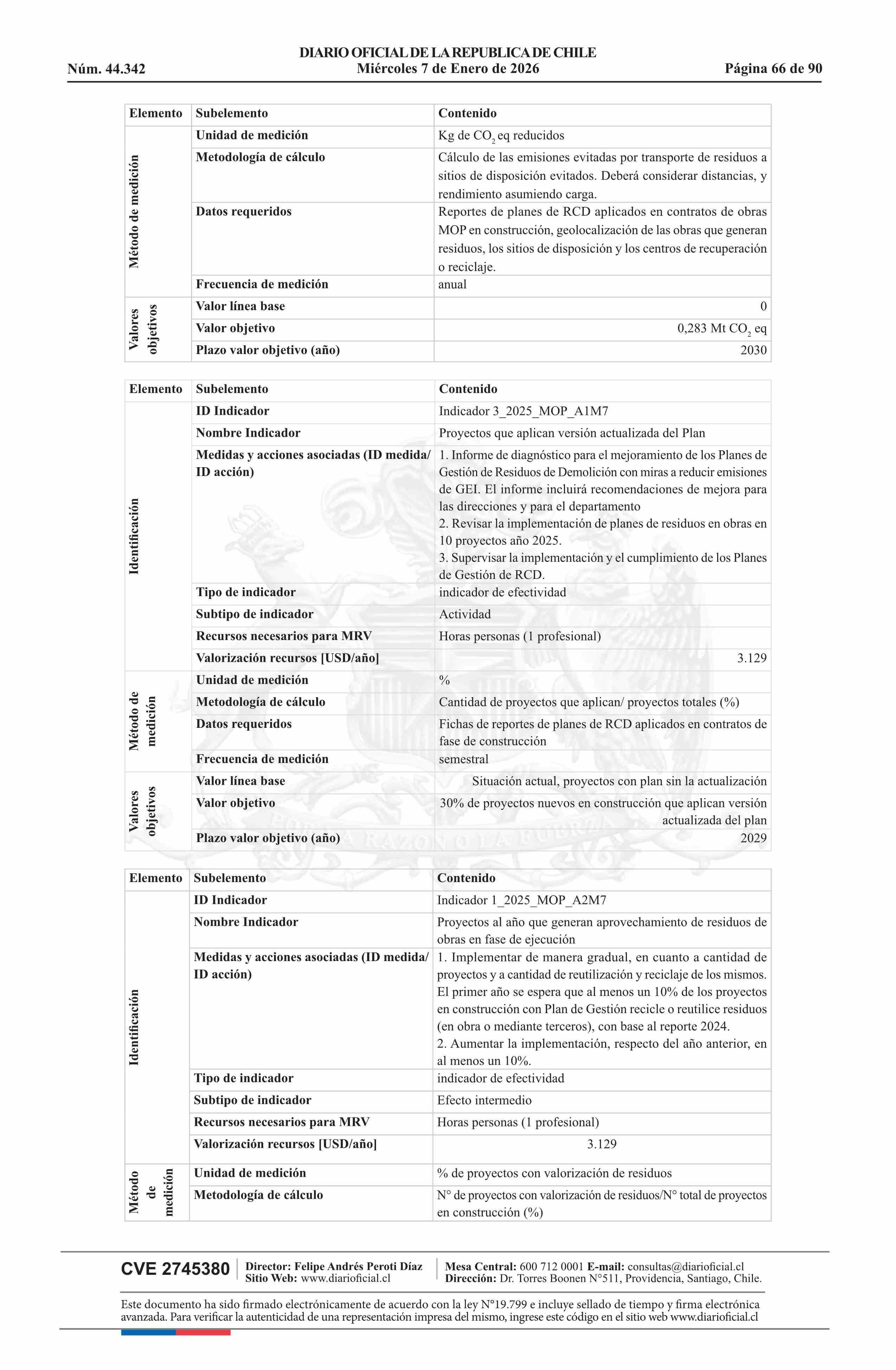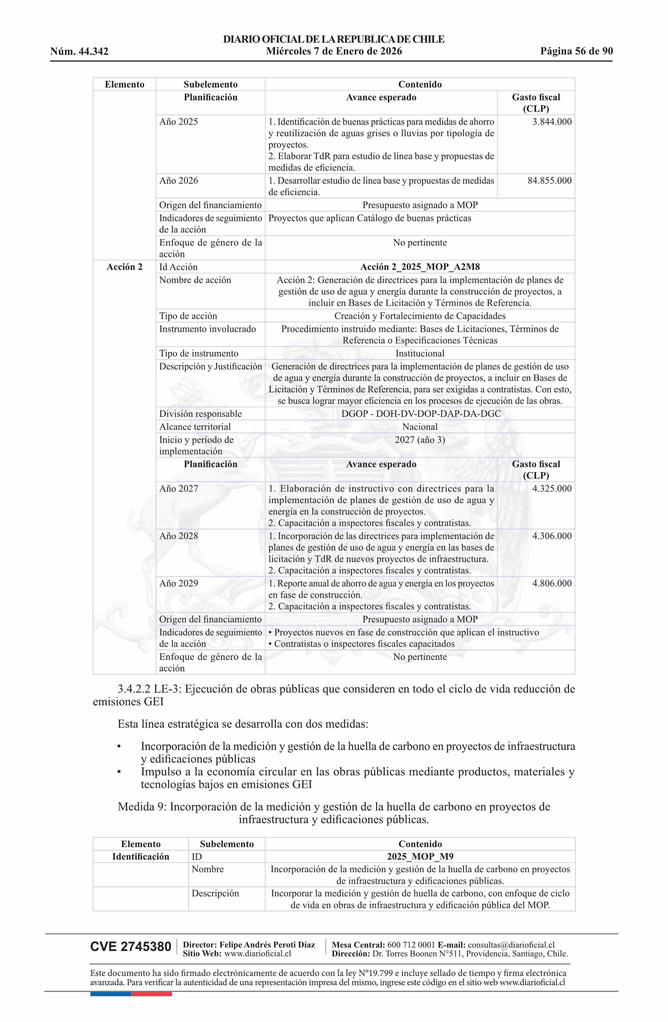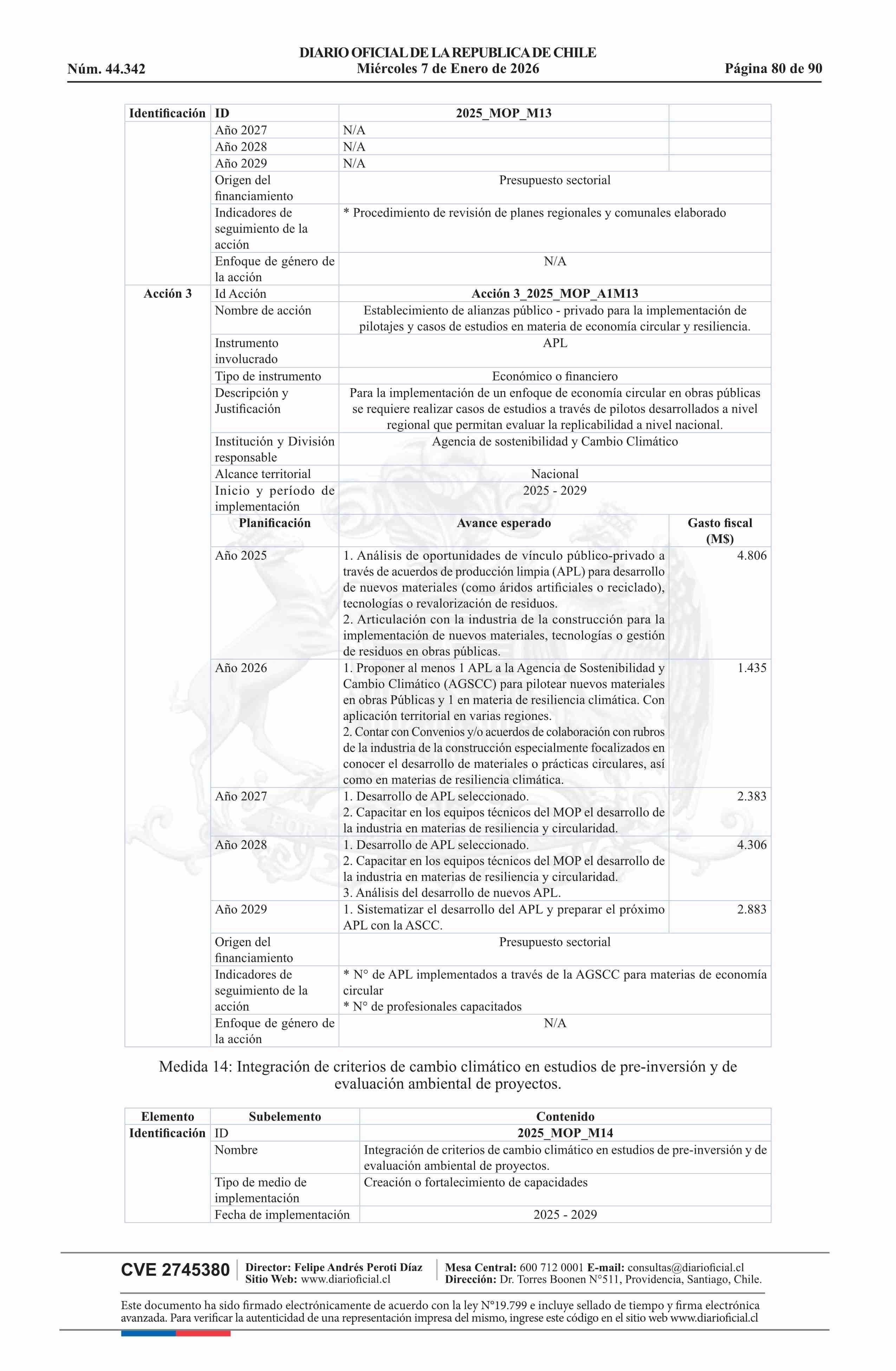 Decreto número 167, de 2024.- Aprueba actualización del Plan Sectorial de Adaptación y Mitigación al Cambio Climático - Sector Infraestructura 07-01-2026 Diario Oficial Edición Electrónica |
