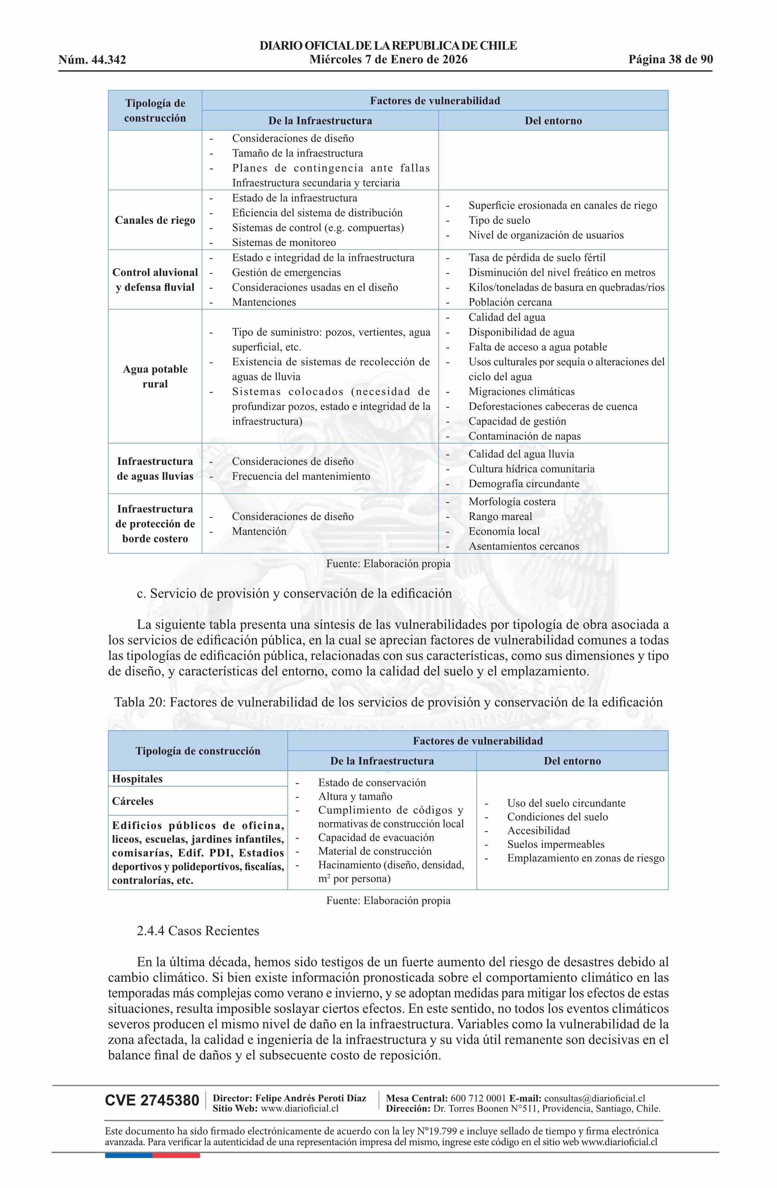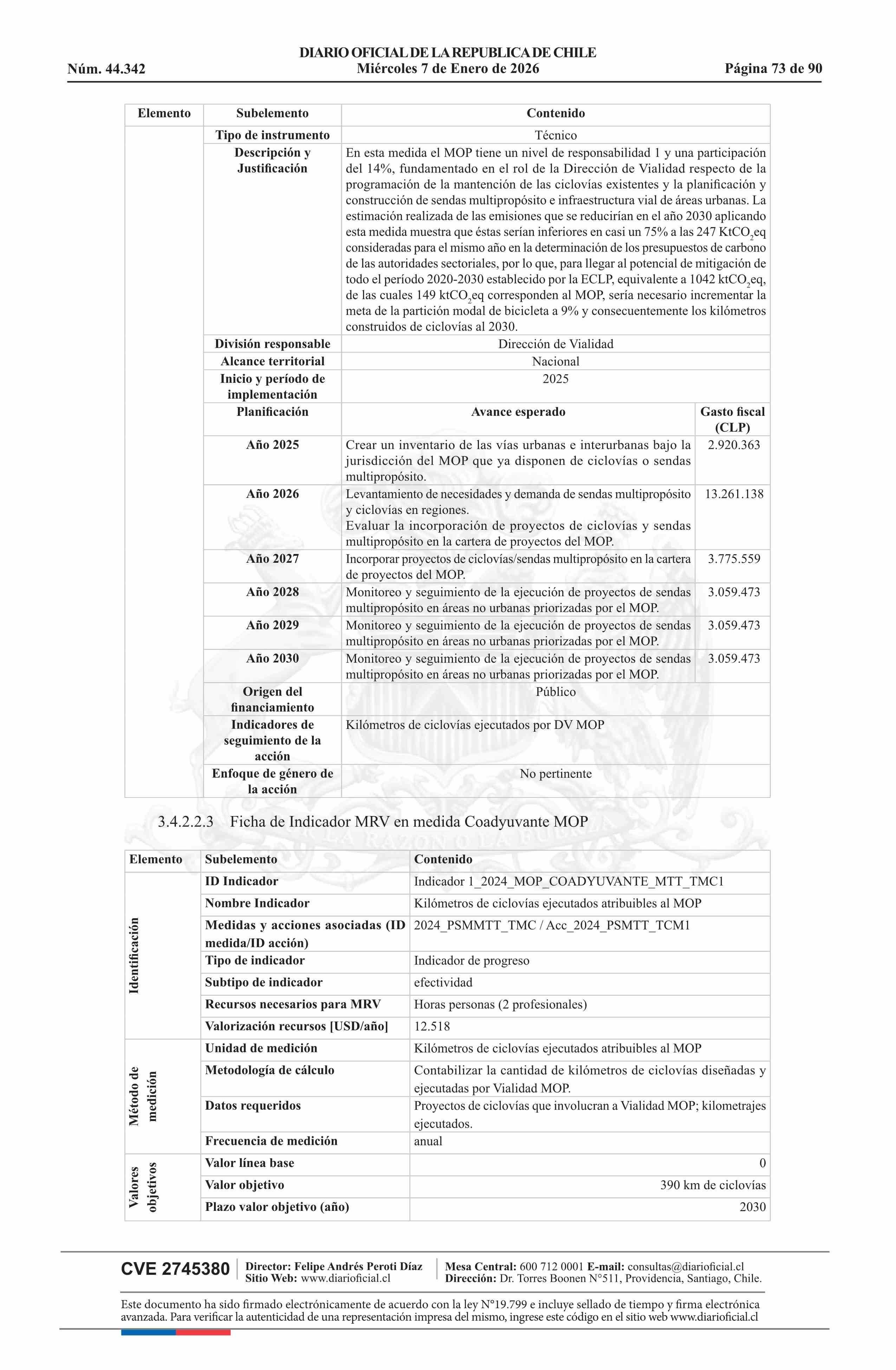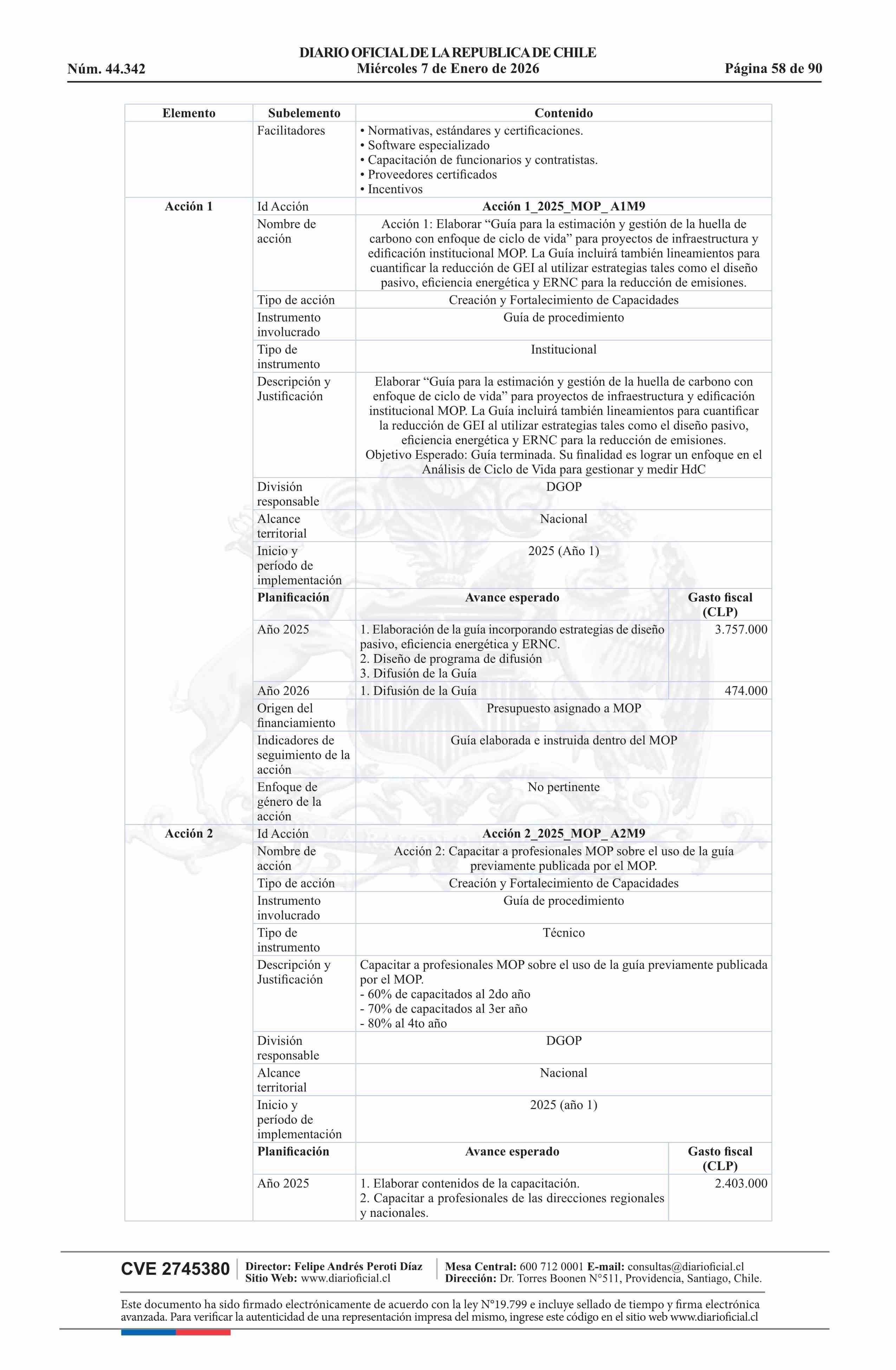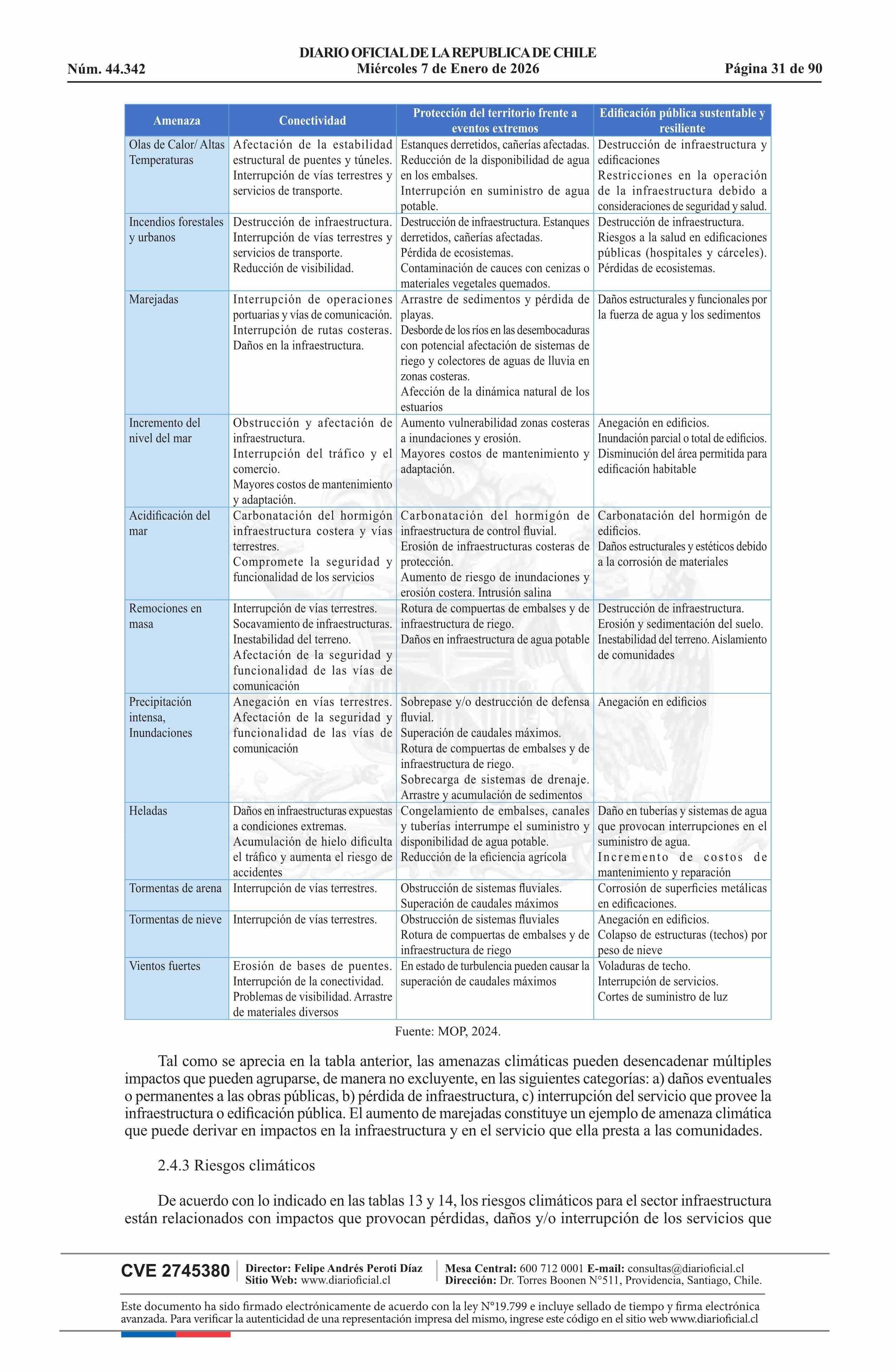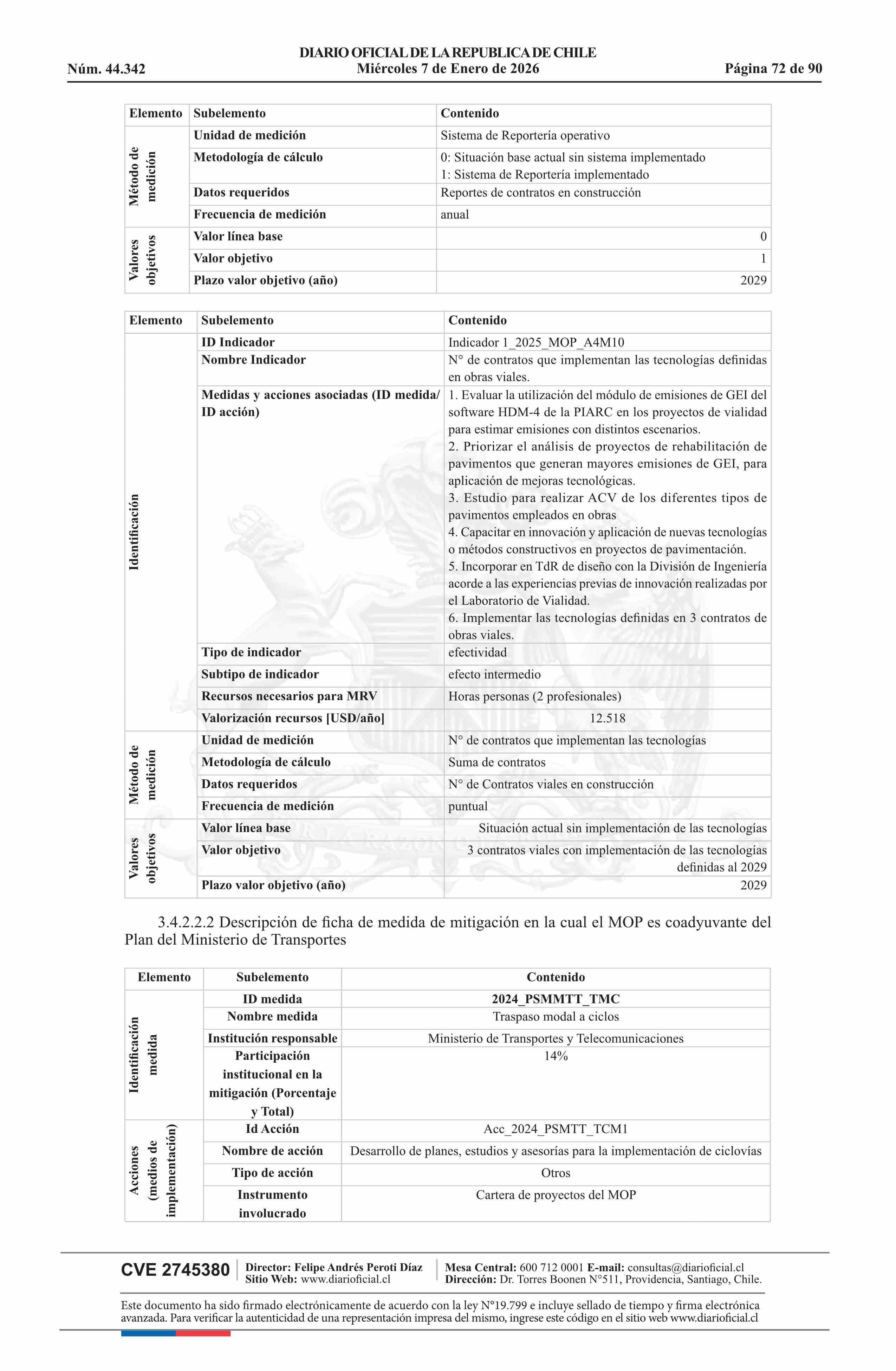 Decreto número 167, de 2024.- Aprueba actualización del Plan Sectorial de Adaptación y Mitigación al Cambio Climático - Sector Infraestructura 07-01-2026 Diario Oficial Edición Electrónica |