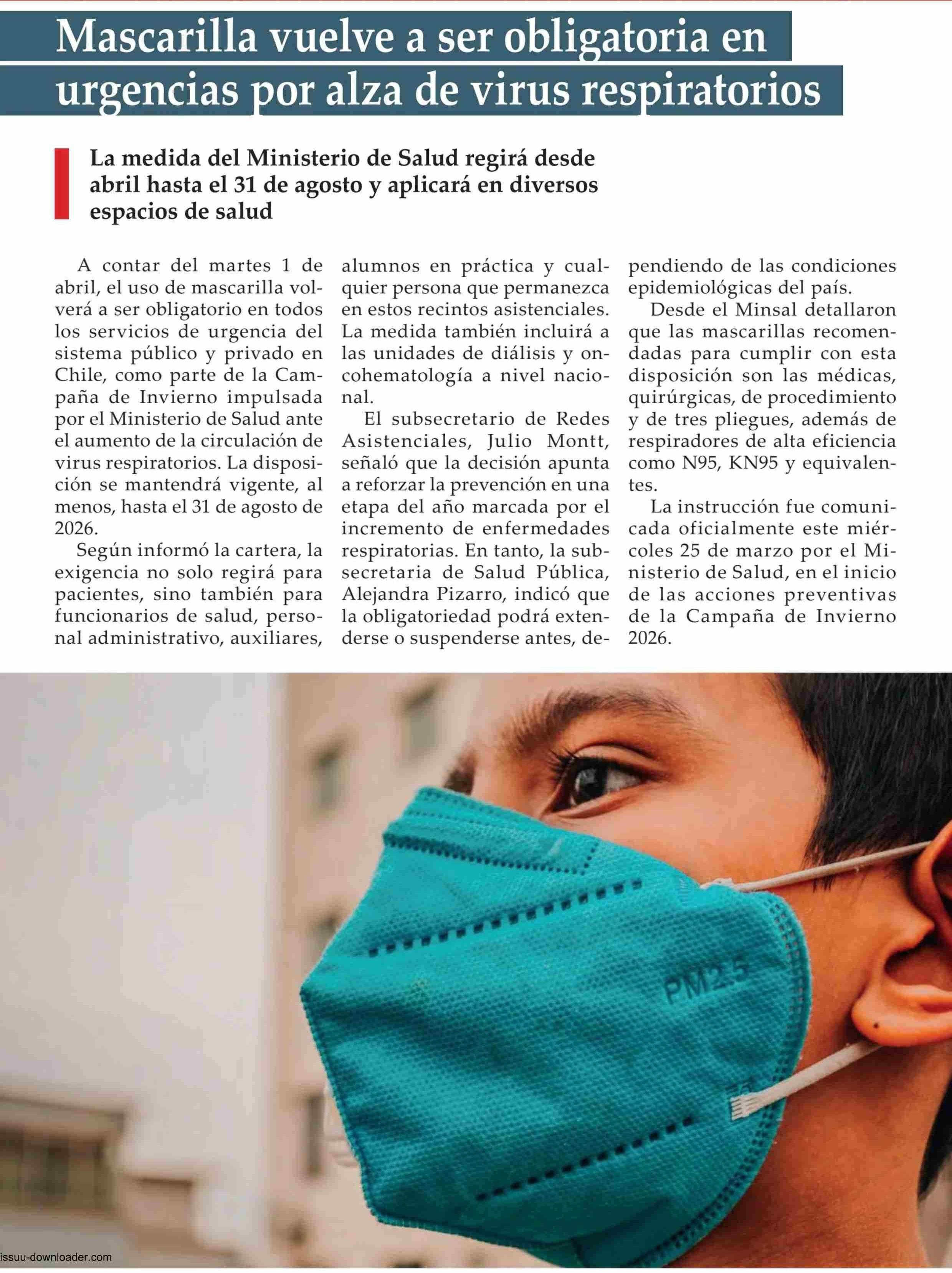 | Título: | Mascarilla vuelve a ser obligatoria en urgencias por alza de virus respiratorios |