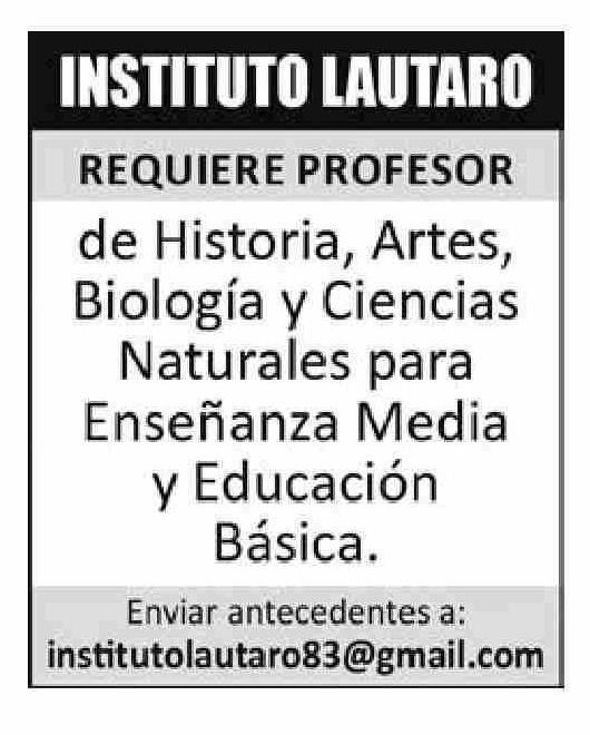 Título: AVISO EMPLEO: INSTITUTO LAUTARO REQUIERE PROFESOR