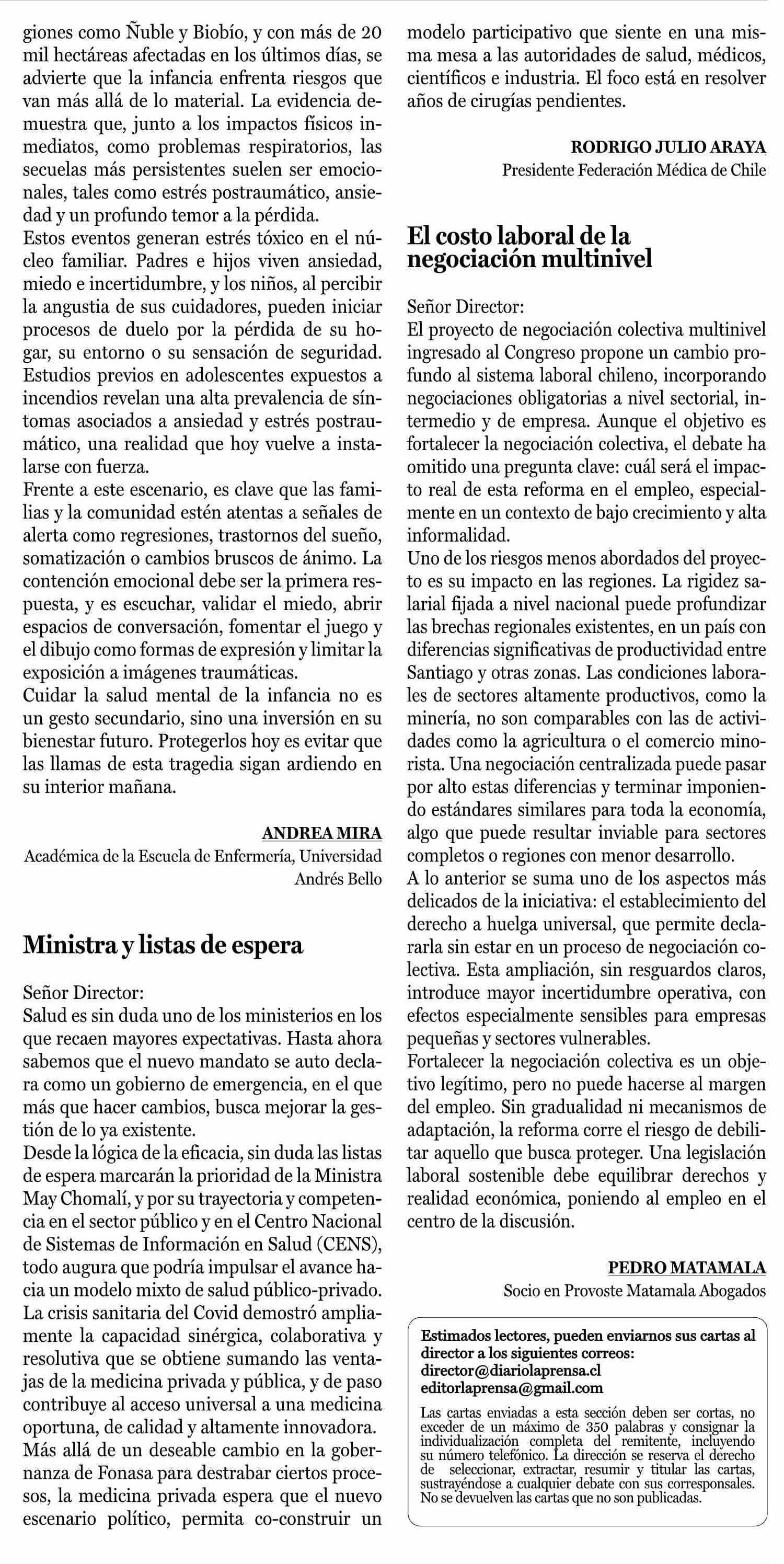 Cartas: Ministra y listas de espera 22-01-2026 La Prensa de Curicó |