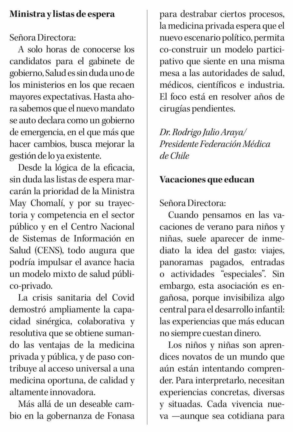 Cartas: Ministra y listas de espera 23-01-2026 Diario Concepción |