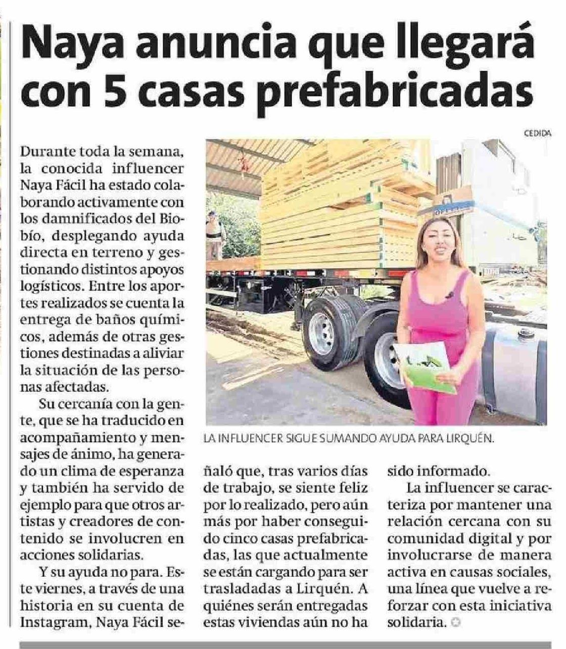 Naya anuncia que llegará con 5 casas prefabricadas 24-01-2026 La Estrella de Concepción |