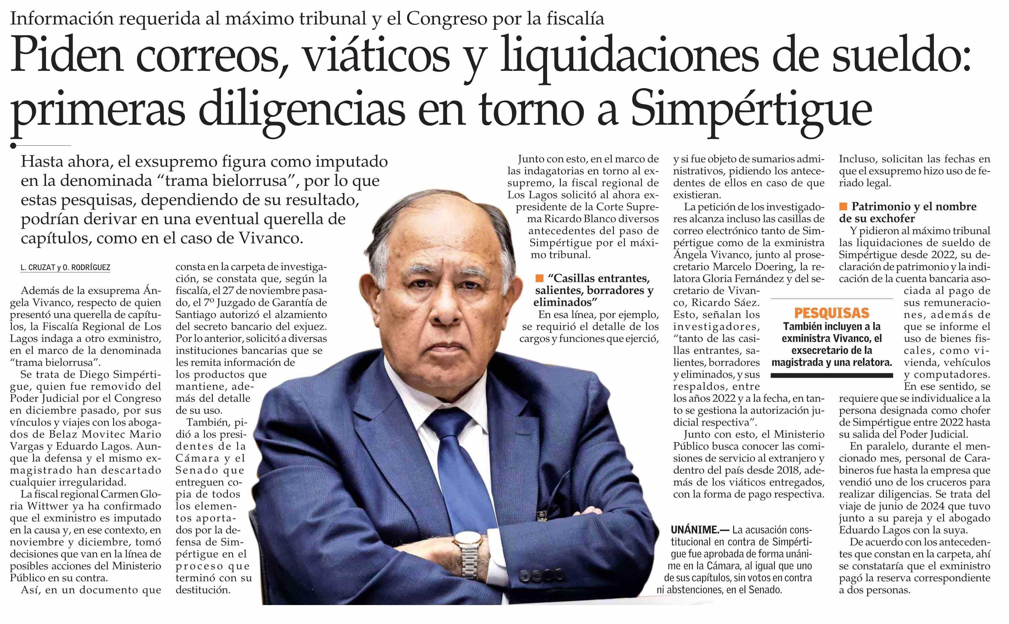 Título: Piden correos, viáticos y liquidaciones de sueldo: primeras diligencias en torno a Simpértigue