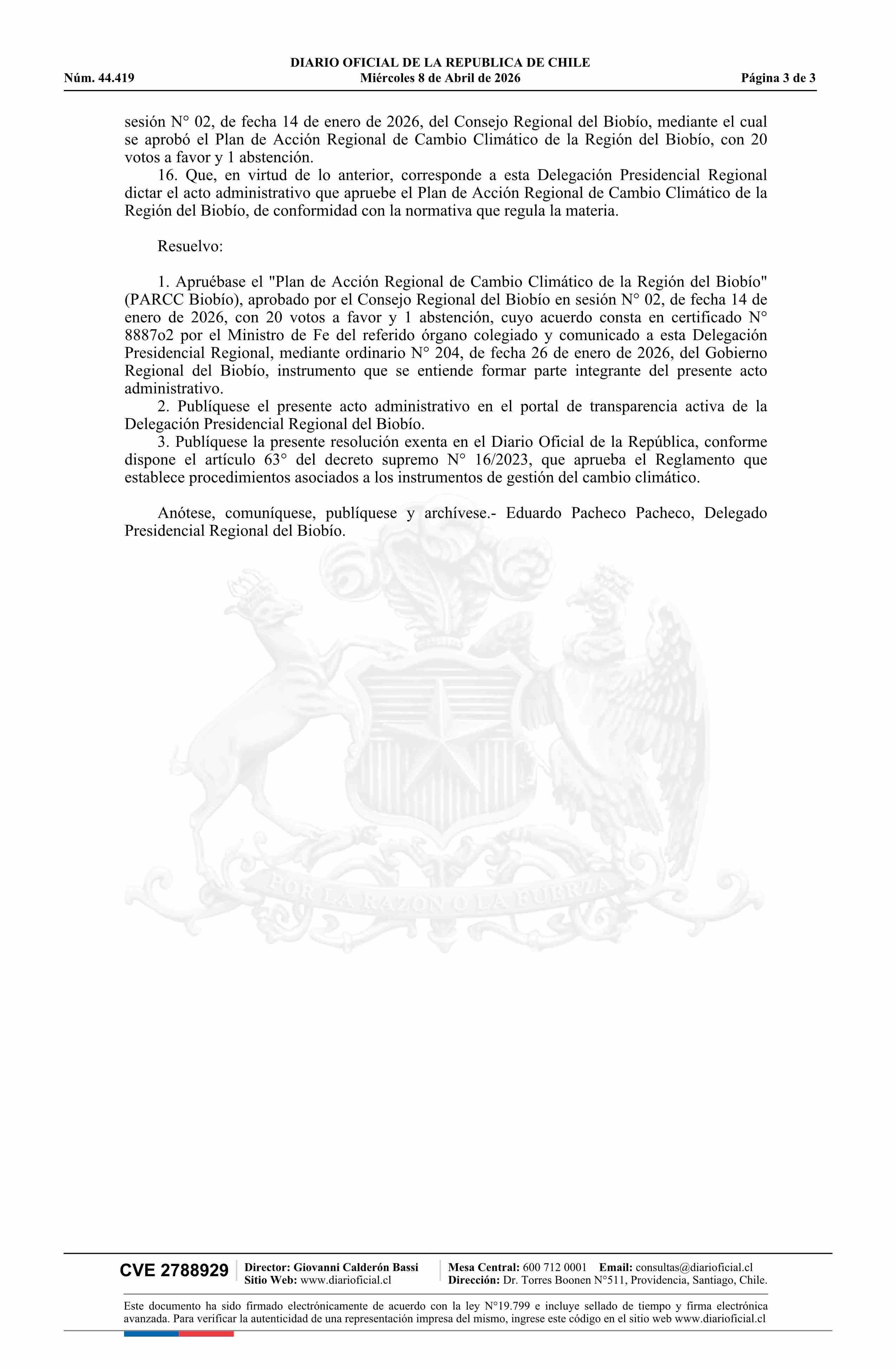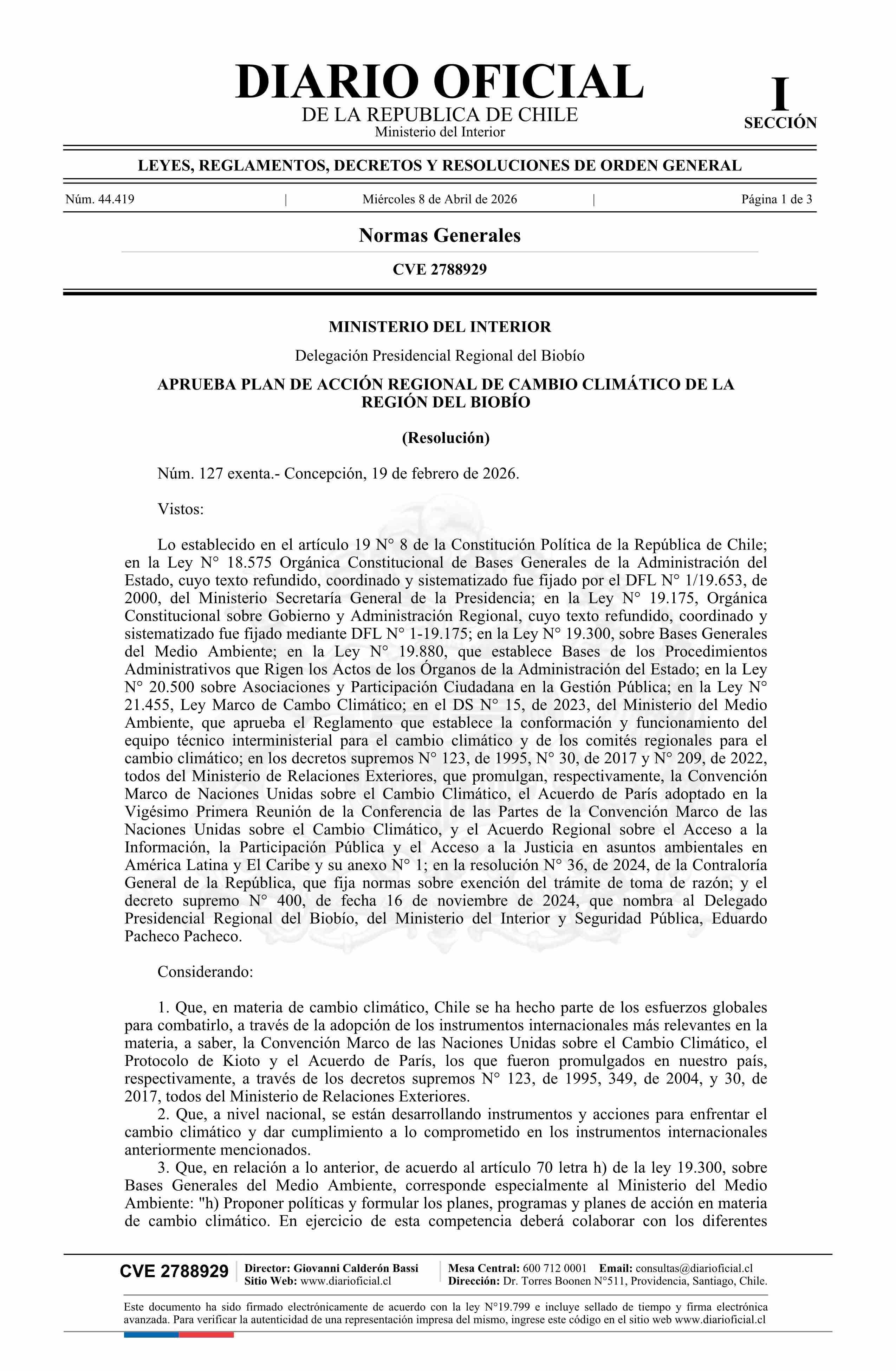 Título: Resolución exenta número 127, de 2026.- Aprueba Plan de Acción Regional de Cambio Climático de la Región del Biobío
