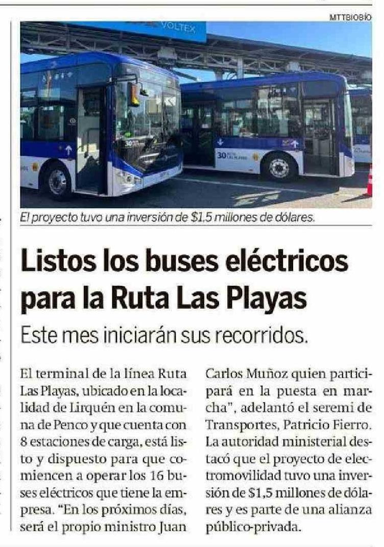 Listos los buses eléctricos para la Ruta Las Playas 06-06-2025 Hoy x Hoy Concepción |