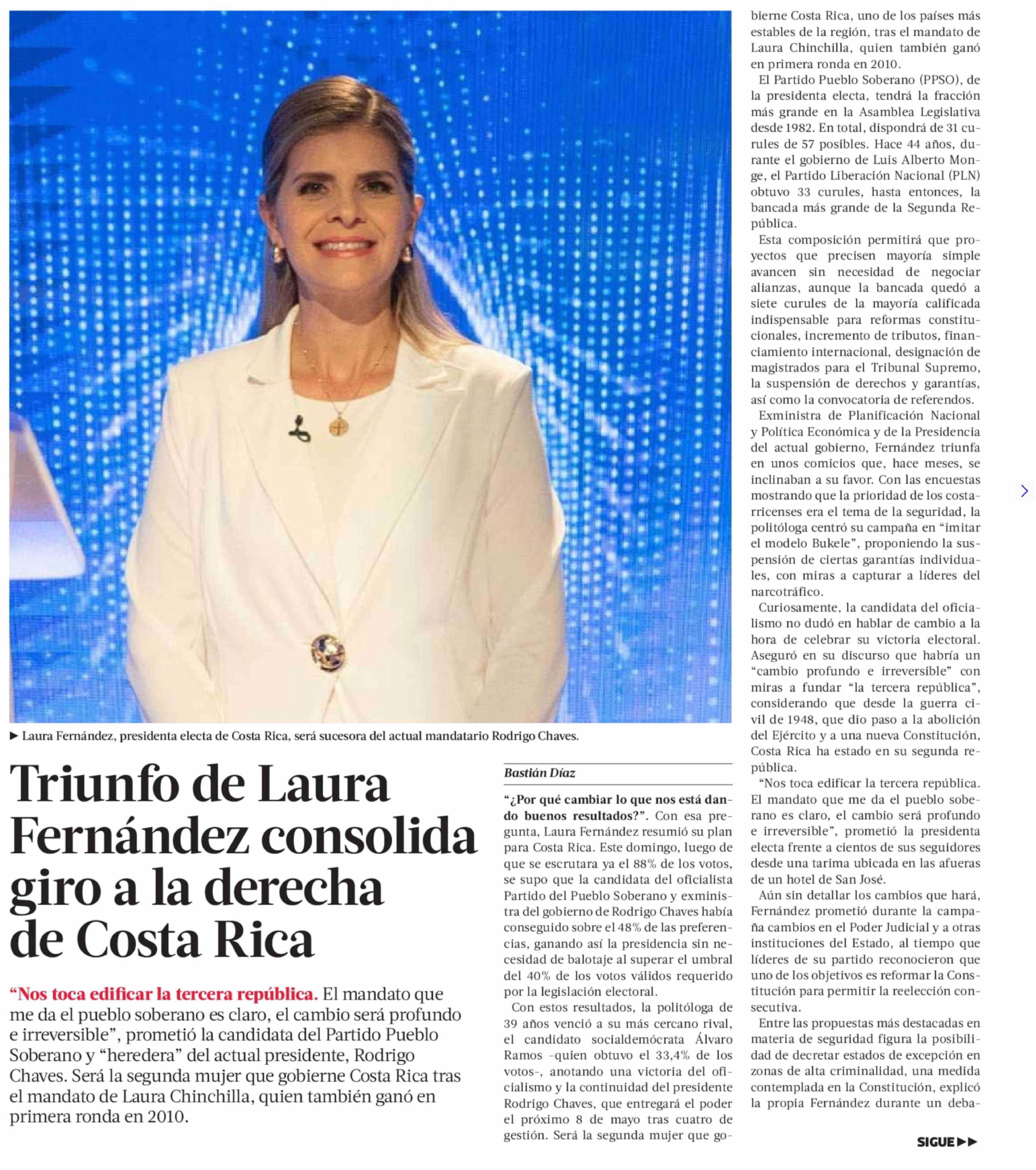 Título: Triunfo de Laura Fernández consolida giro a la derecha de Costa Rica