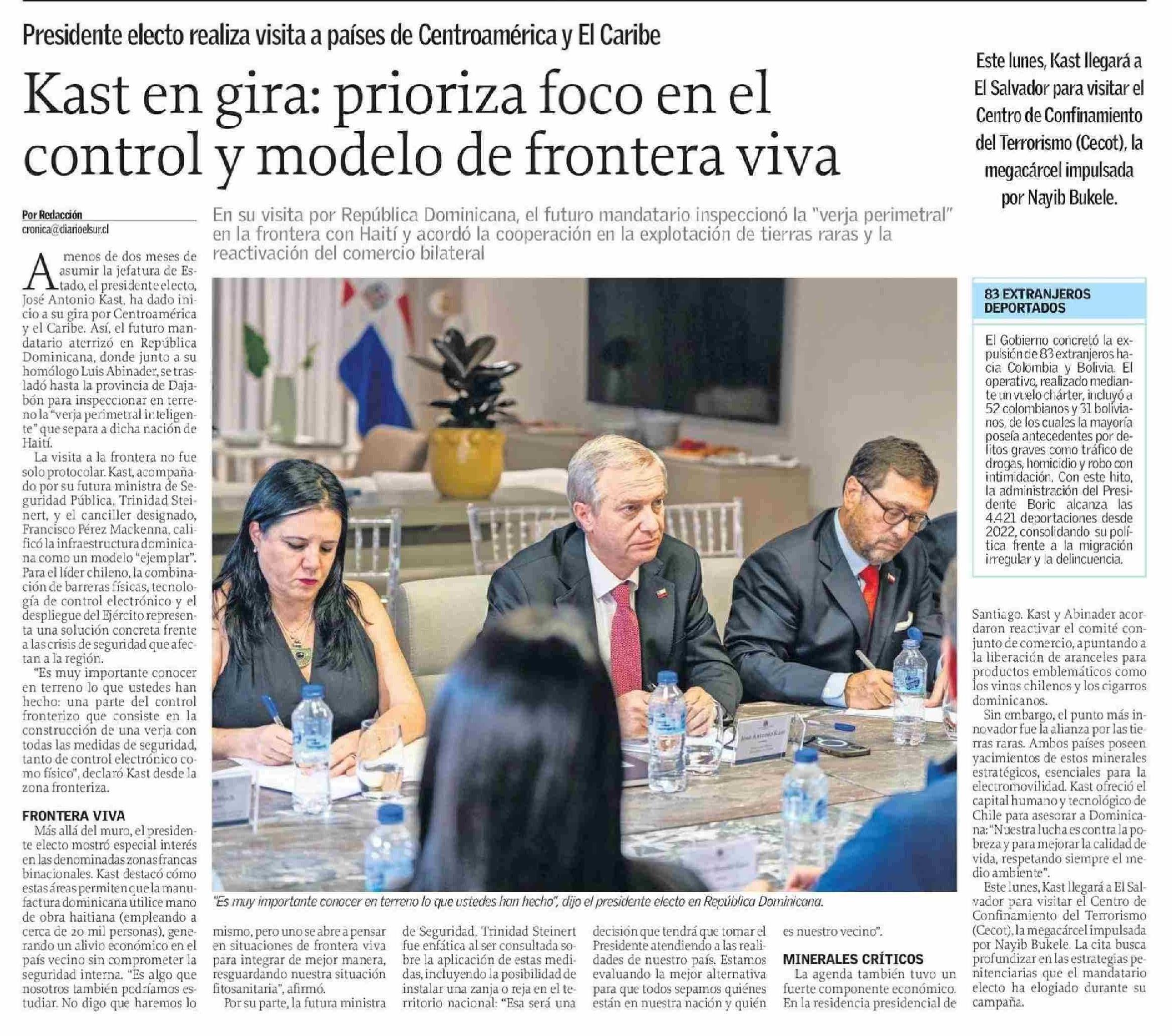 Kast en gira: prioriza foco en el control y modelo de frontera viva 26-01-2026 El Sur |