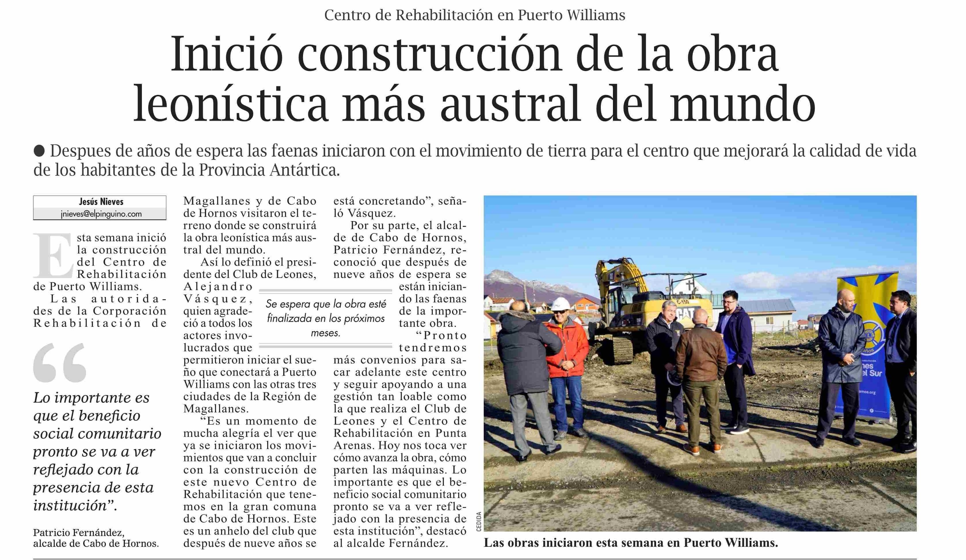 Inició construcción de la obra leonística más austral del mundo 12-04-2026 El Pingüino |