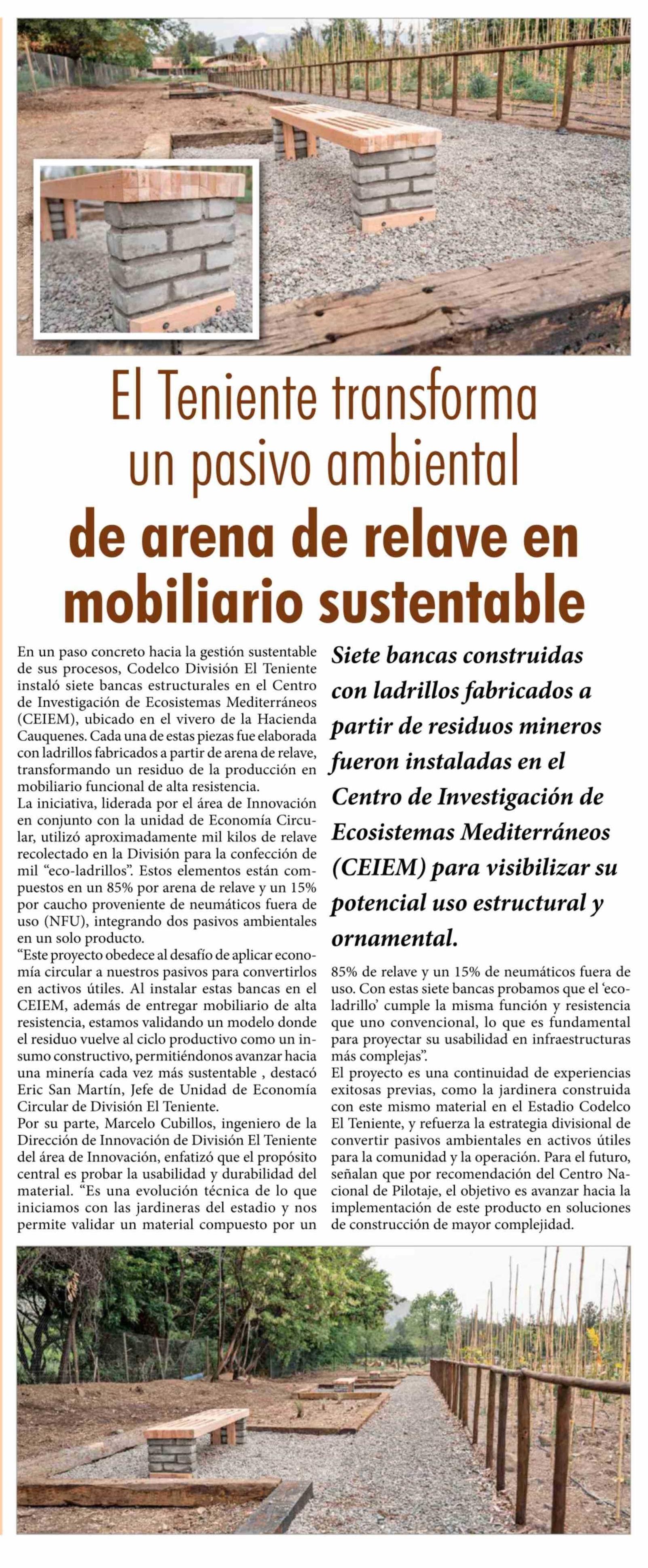 Título: El Teniente transforma un pasivo ambiental de arena de relave en mobiliario sustentable