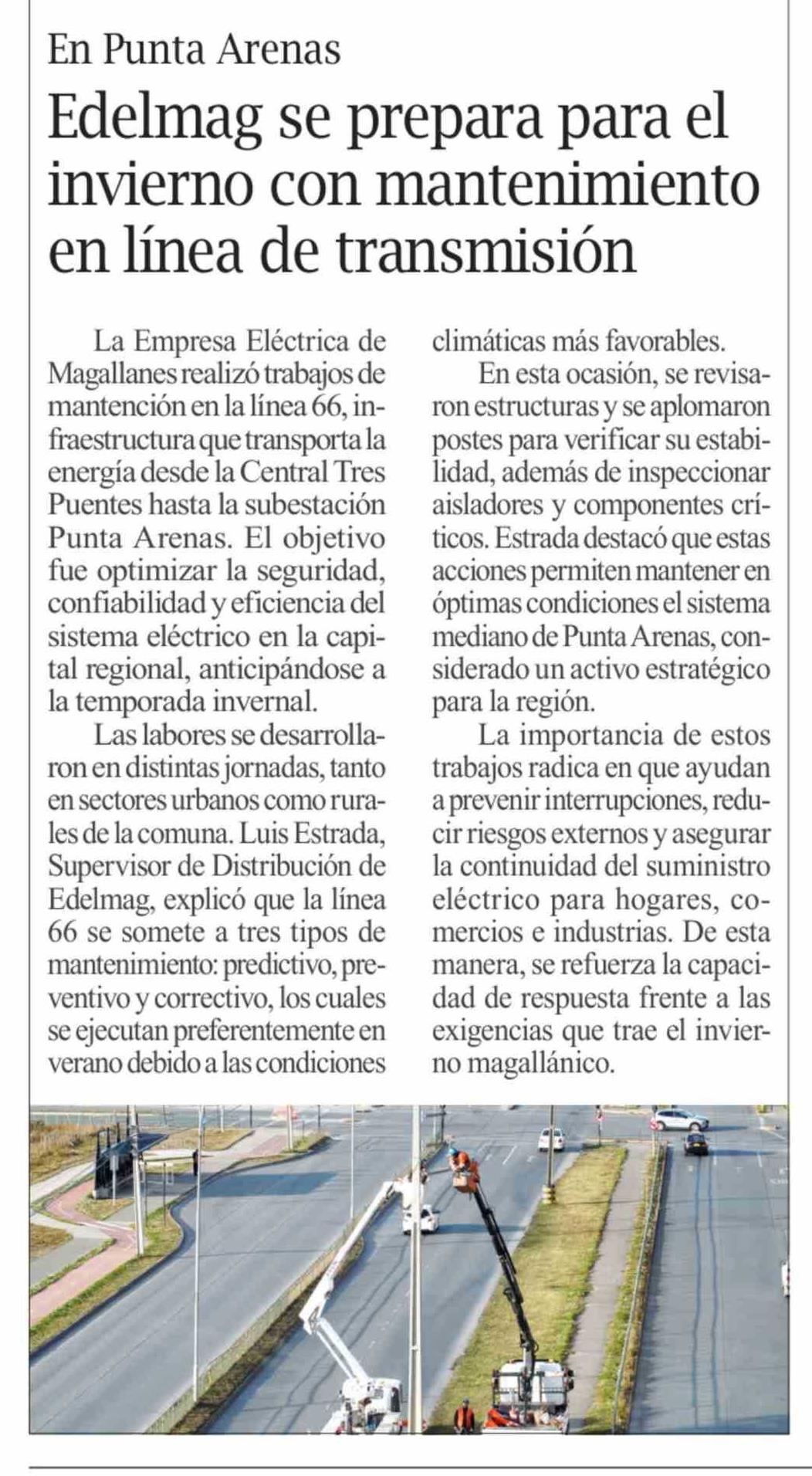 Edelmag se prepara para el invierno con mantenimiento en línea de transmisión 26-02-2026 El Pingüino |