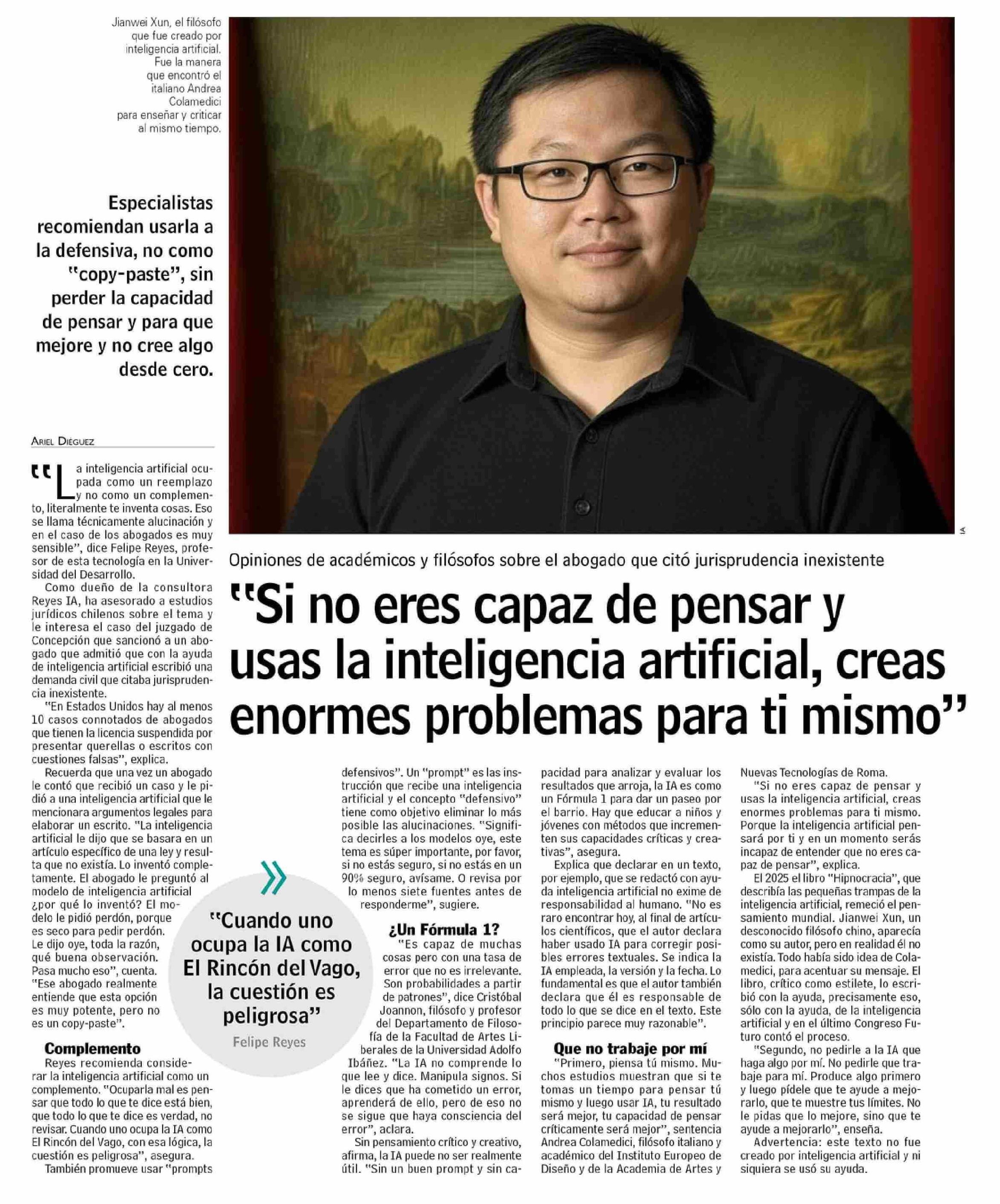 | Título: | “"Si no eres capaz de pensar y usas la inteligencia artificial, creas enormes problemas para ti mismo” |