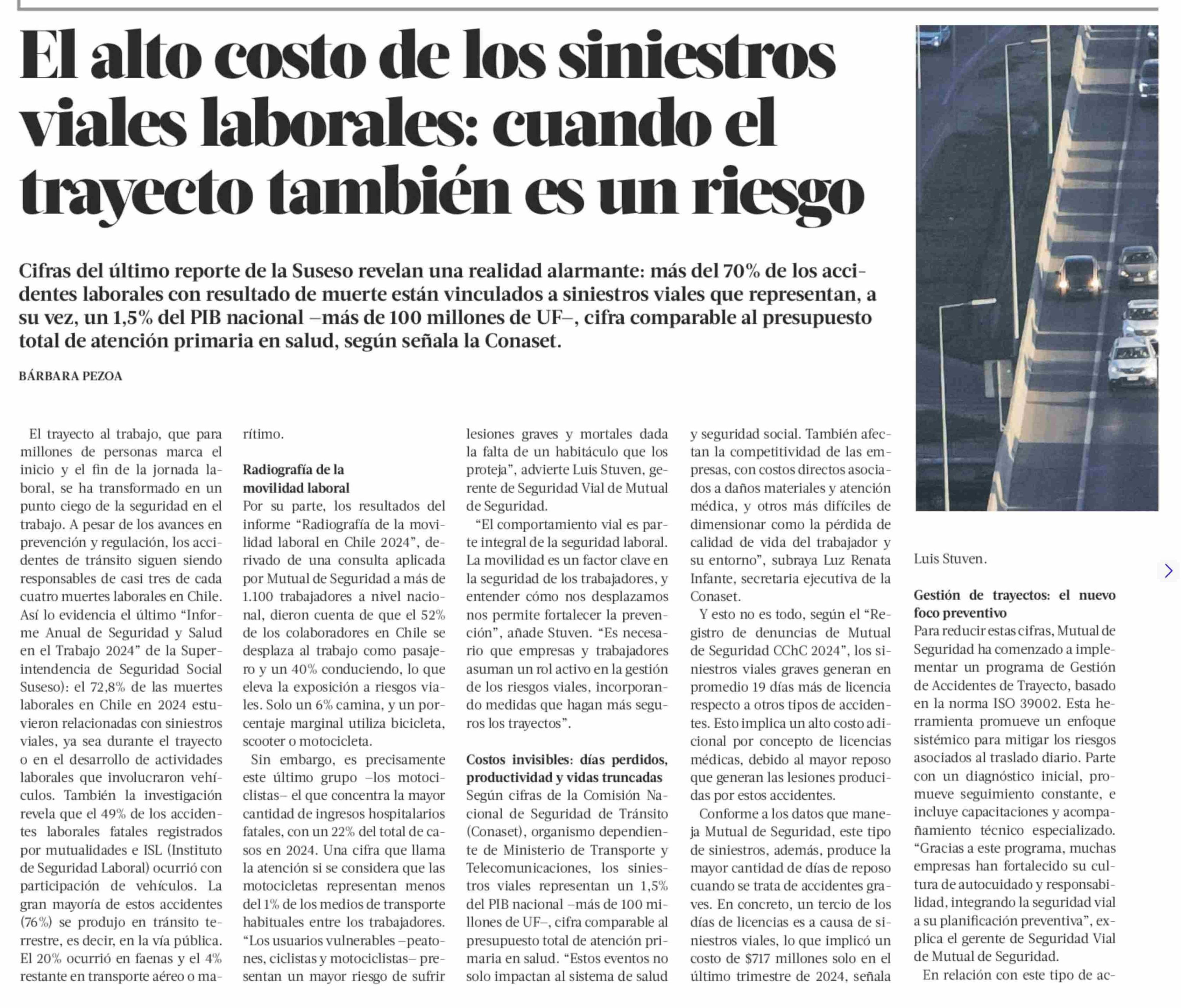 El alto costo de los siniestros viales laborales: cuando el trayecto también es un riesgo 17-05-2025 La Tercera |