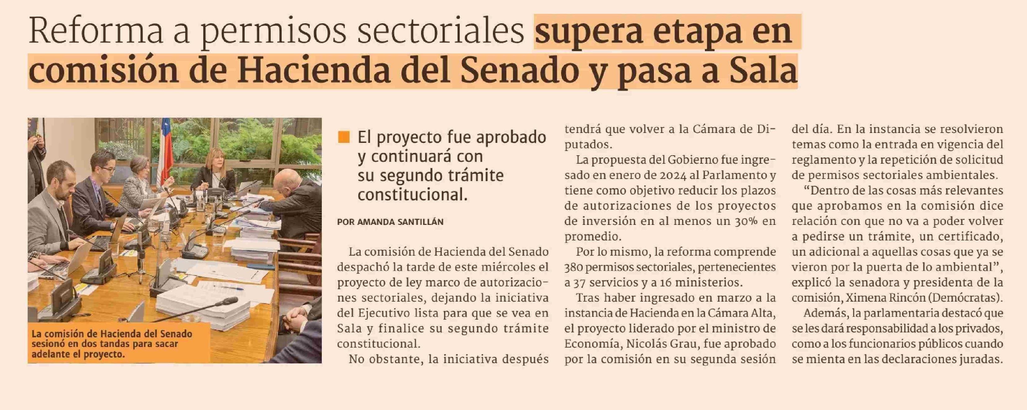 Reforma a permisos sectoriales supera etapa en comisión de Hacienda del Senado y pasa a Sala 05-06-2025 Diario Financiero |