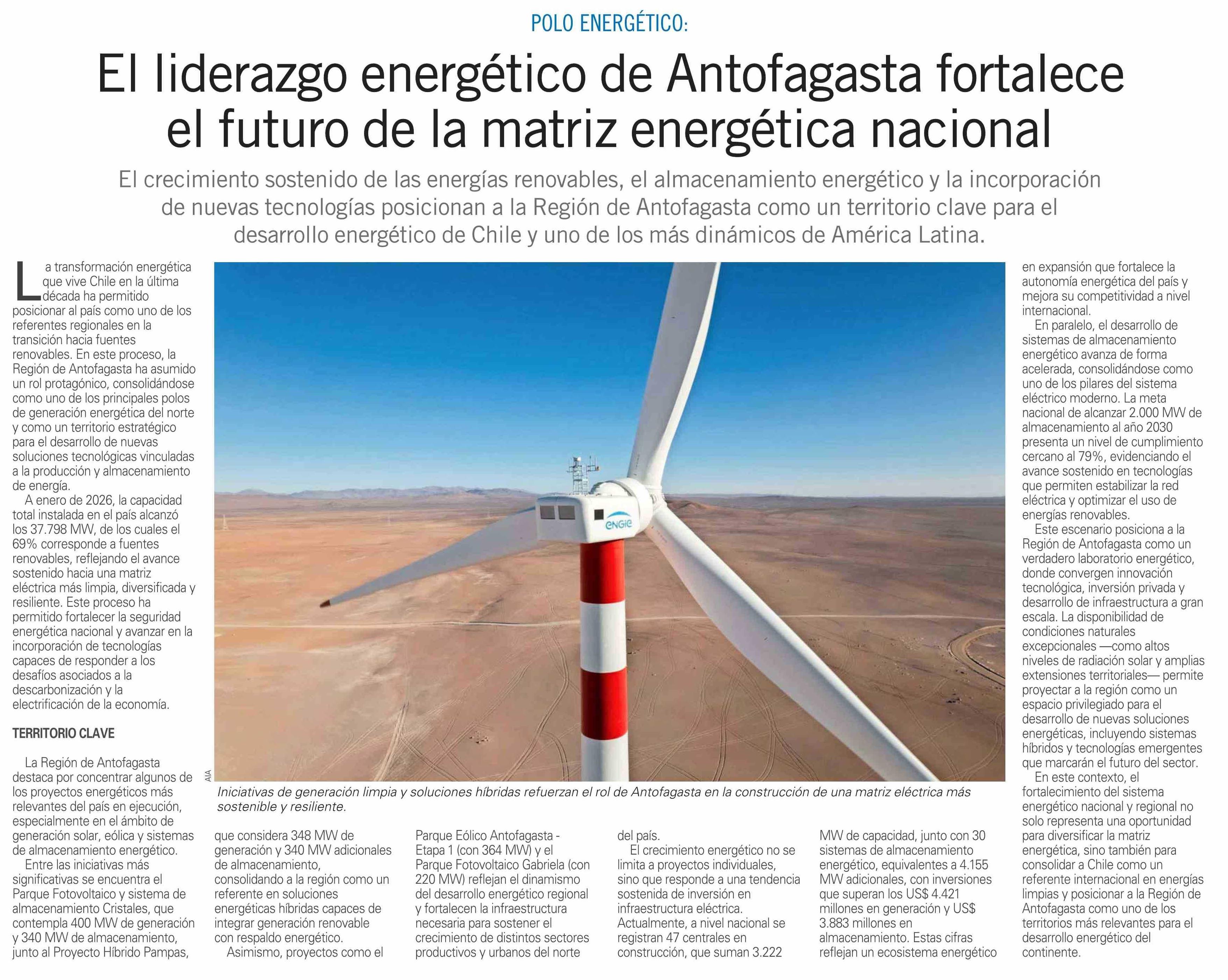 Título: El liderazgo energético de Antofagasta fortalece el futuro de la matriz energética nacional