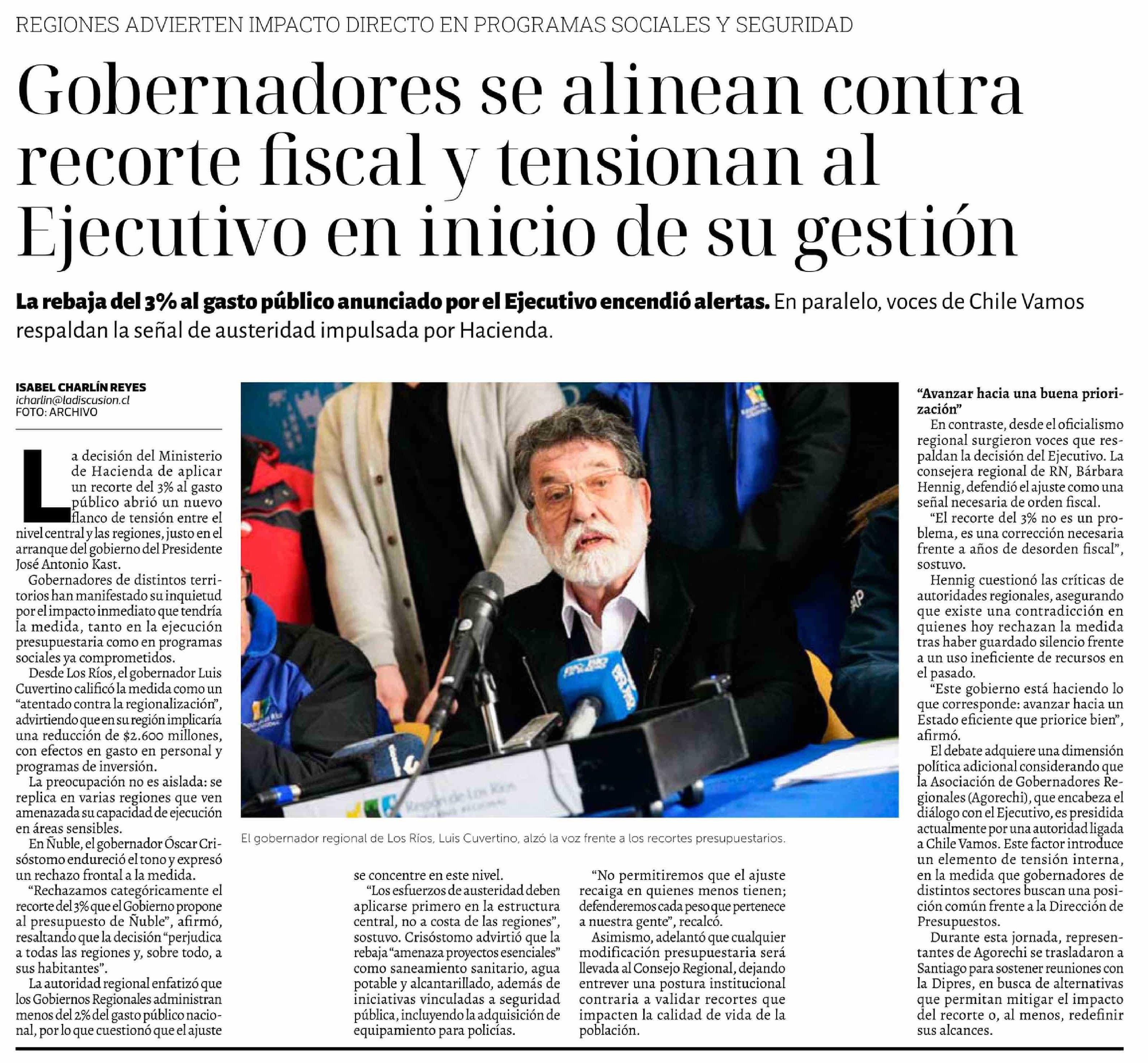 Título: Gobernadores se alinean contra recorte fiscal y tensionan al Ejecutivo en inicio de su gestión