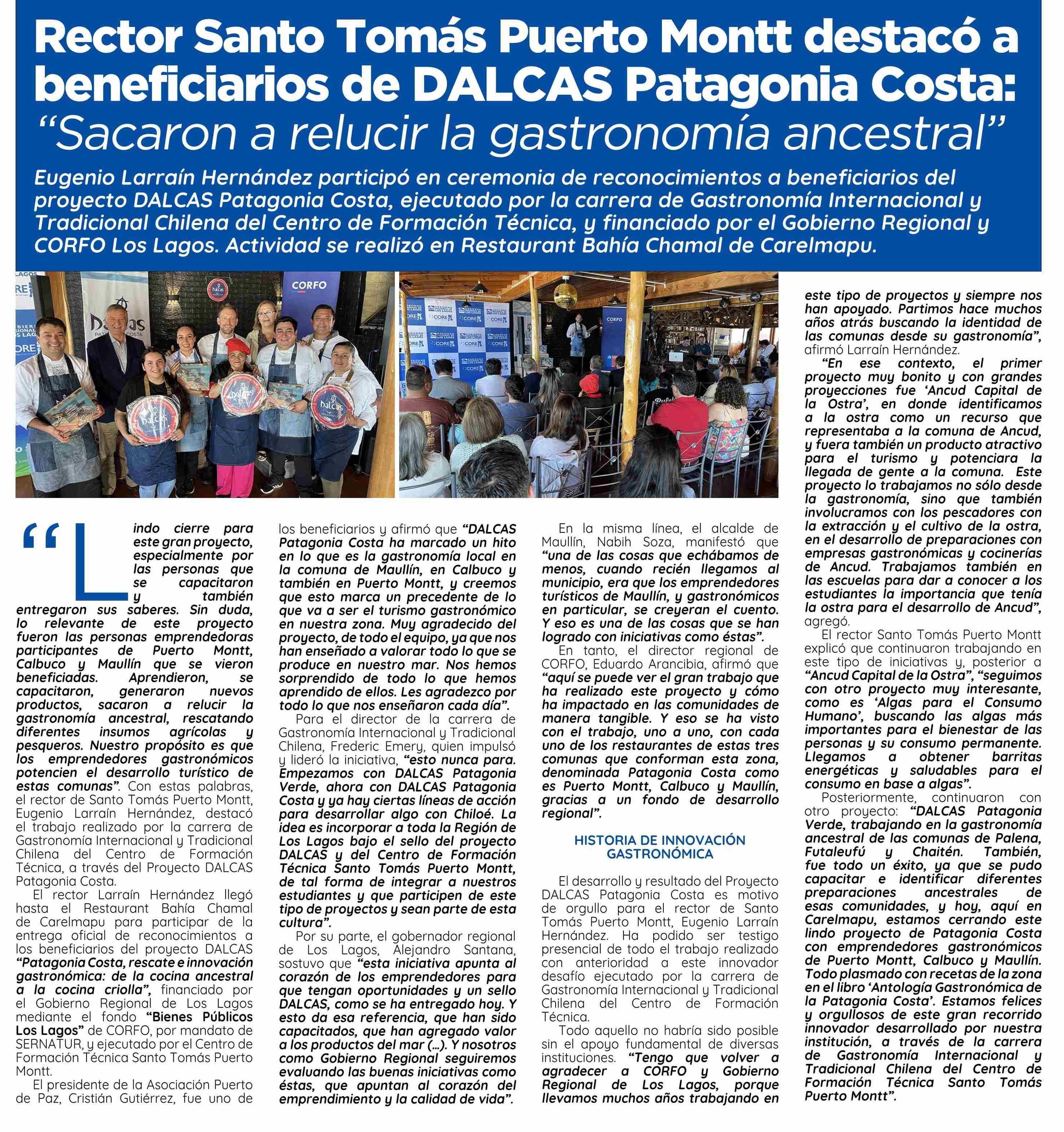 | Título: | Rector Santo Tomás Puerto Montt destacó a beneficiarios de DALCAS Patagonia Costa: "Sacaron a relucir la gastronomía ancestral" |