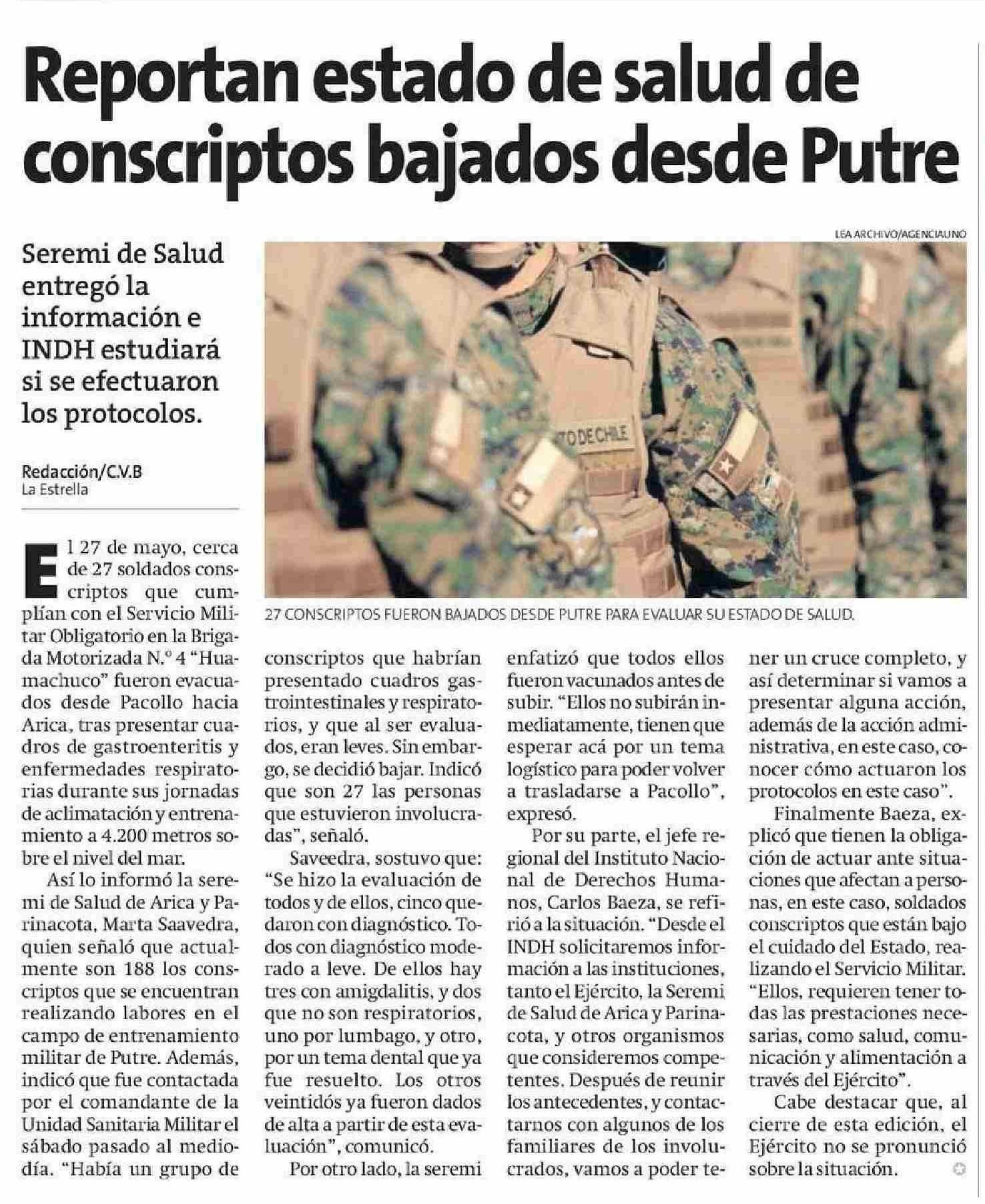 Título: Reportan estado de salud de conscriptos bajados desde Putre