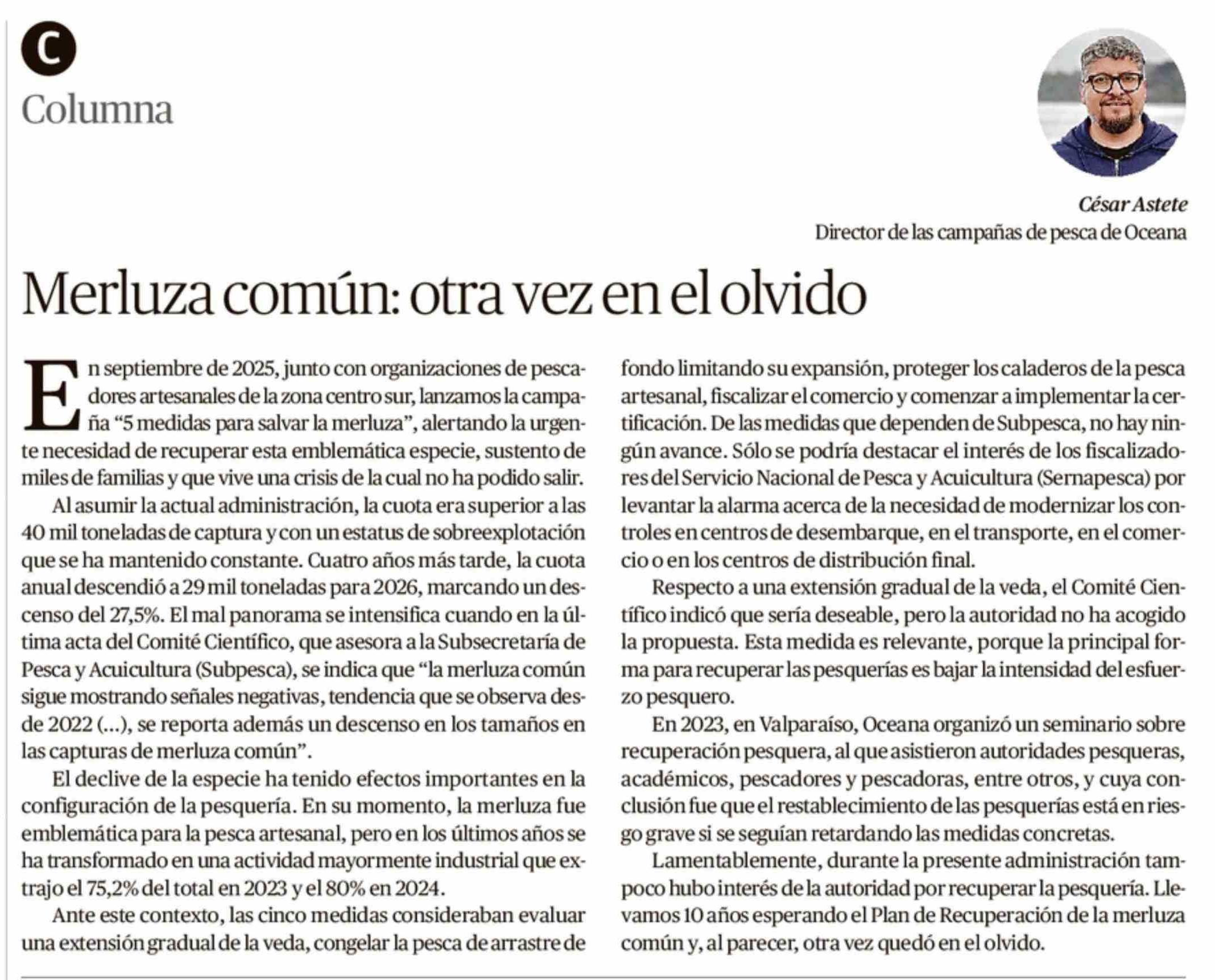 Título: Columnas de Opinión: Merluza común: otra vez en el olvido