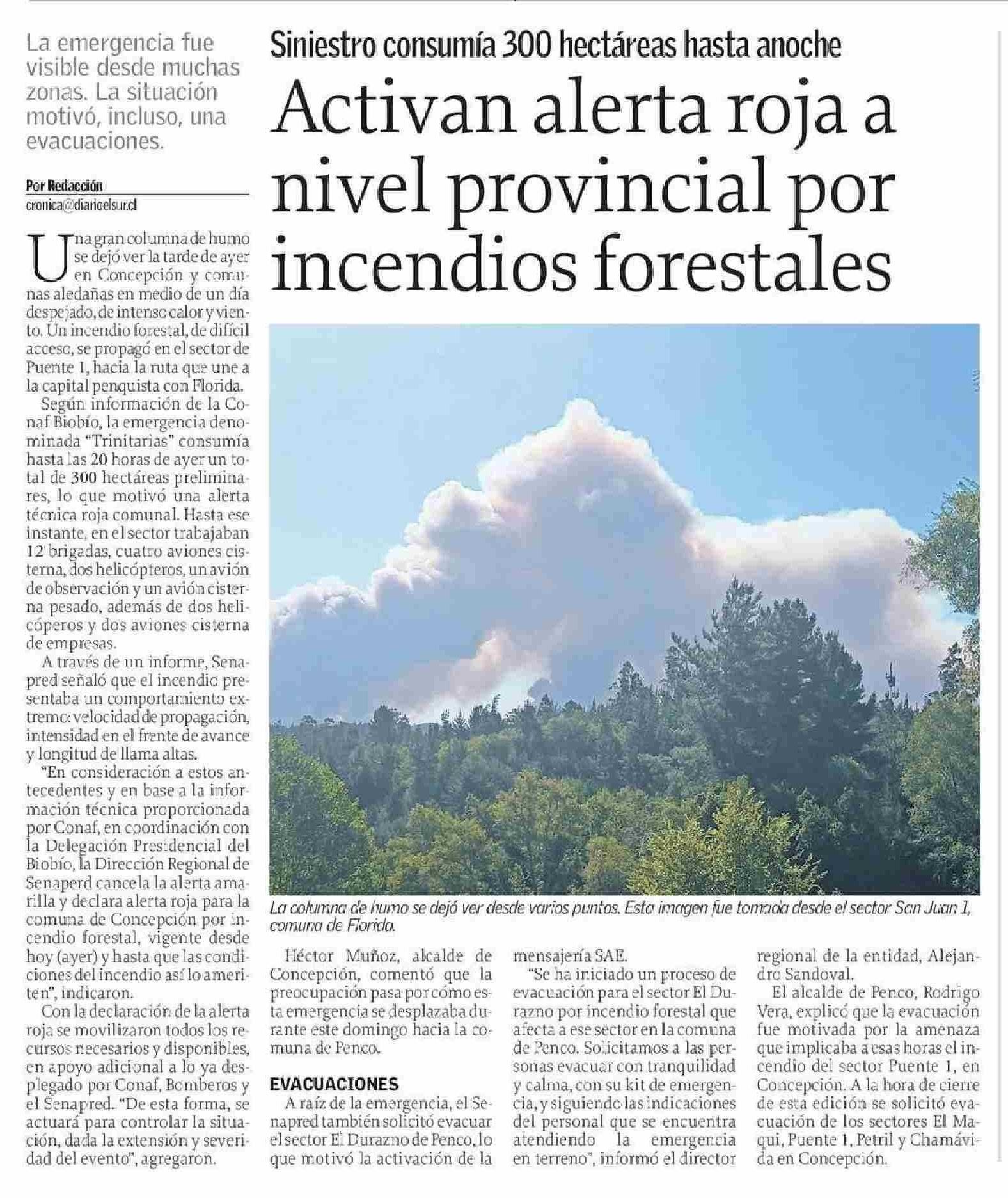 Título: Activan alerta roja a nivel provincial por incendios forestales
