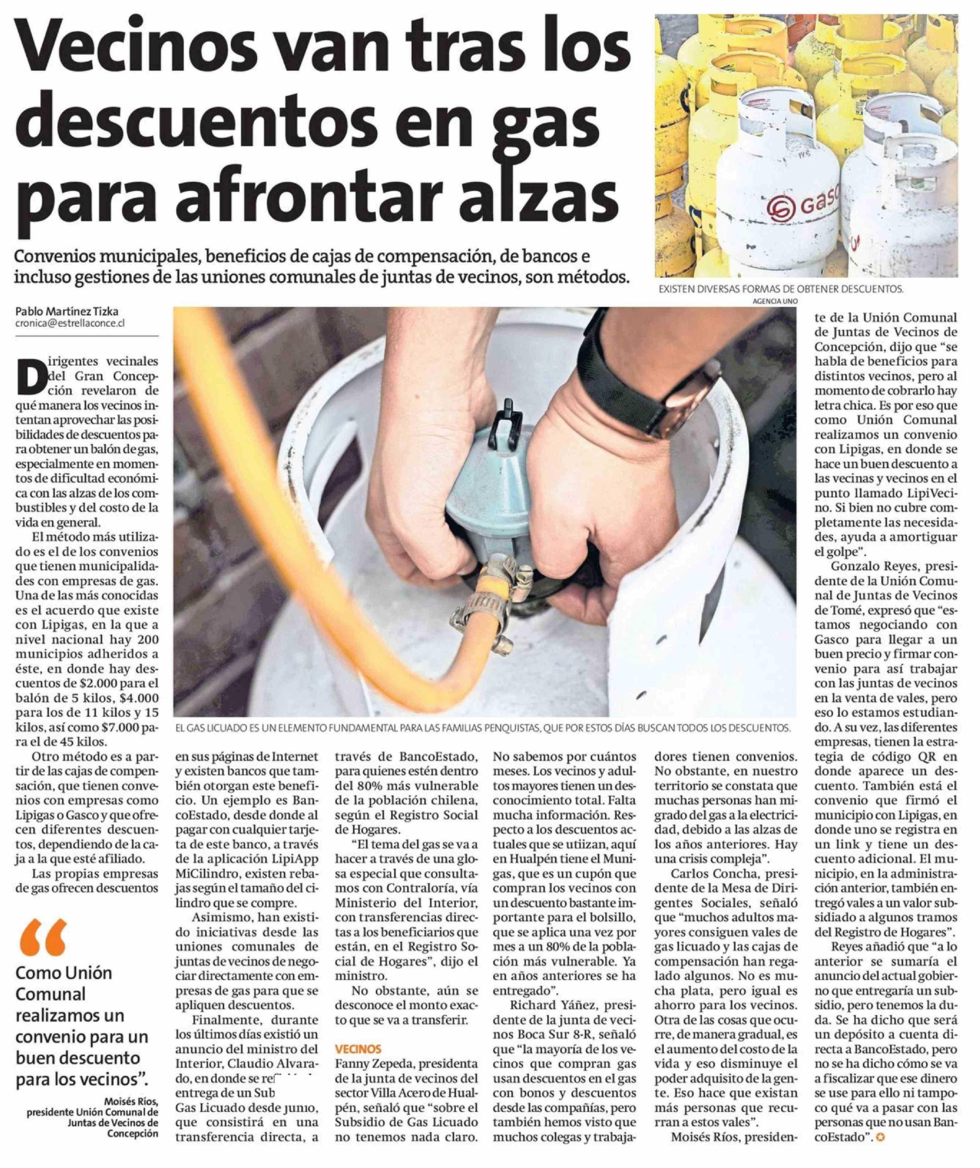 Vecinos van tras los descuentos en gas para afrontar alzas 25-04-2026 La Estrella de Concepción |