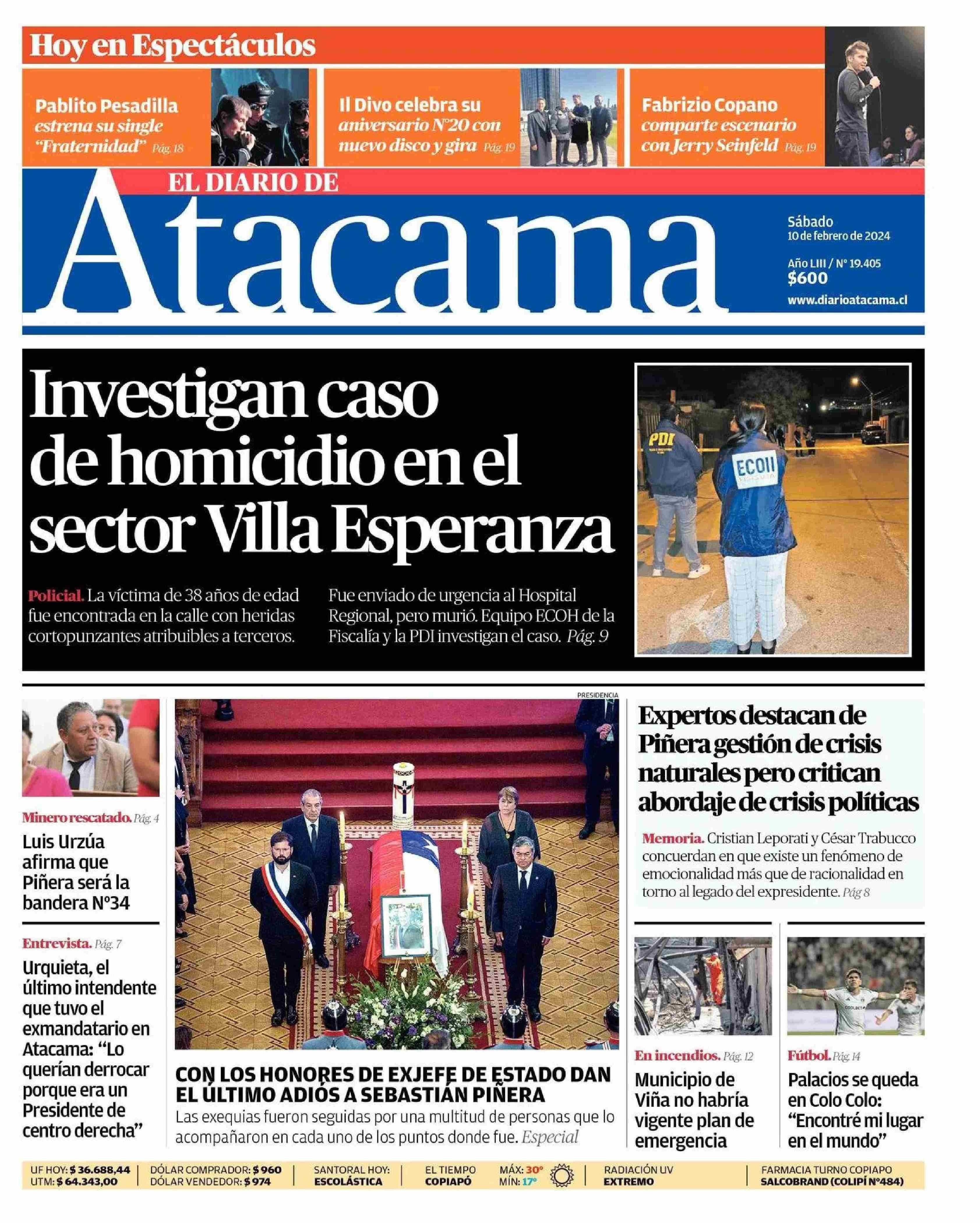 PORTADA EL DIARIO DE ATACAMA - CHILE 10-02-2024 El Diario de Atacama |