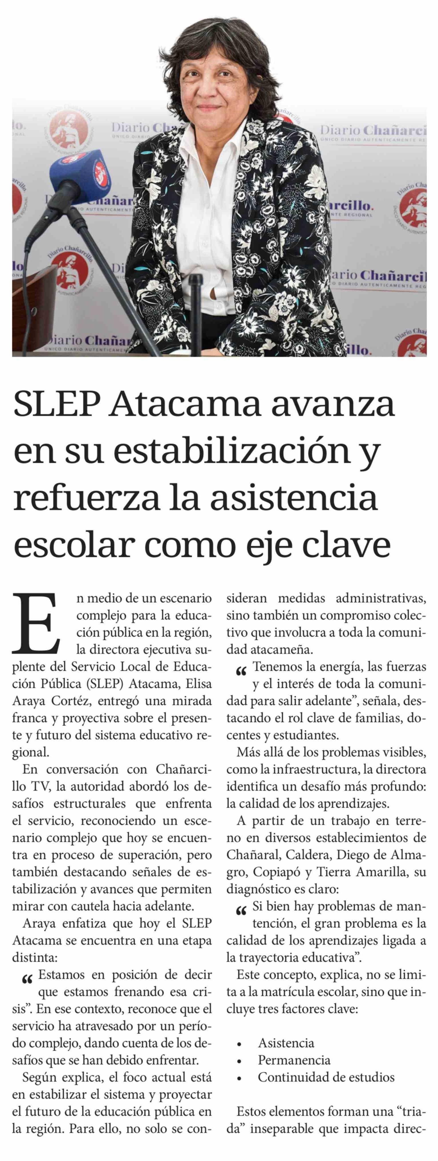 | Título: | SLEP Atacama avanza en su estabilización y refuerza la asistencia escolar como eje clave |