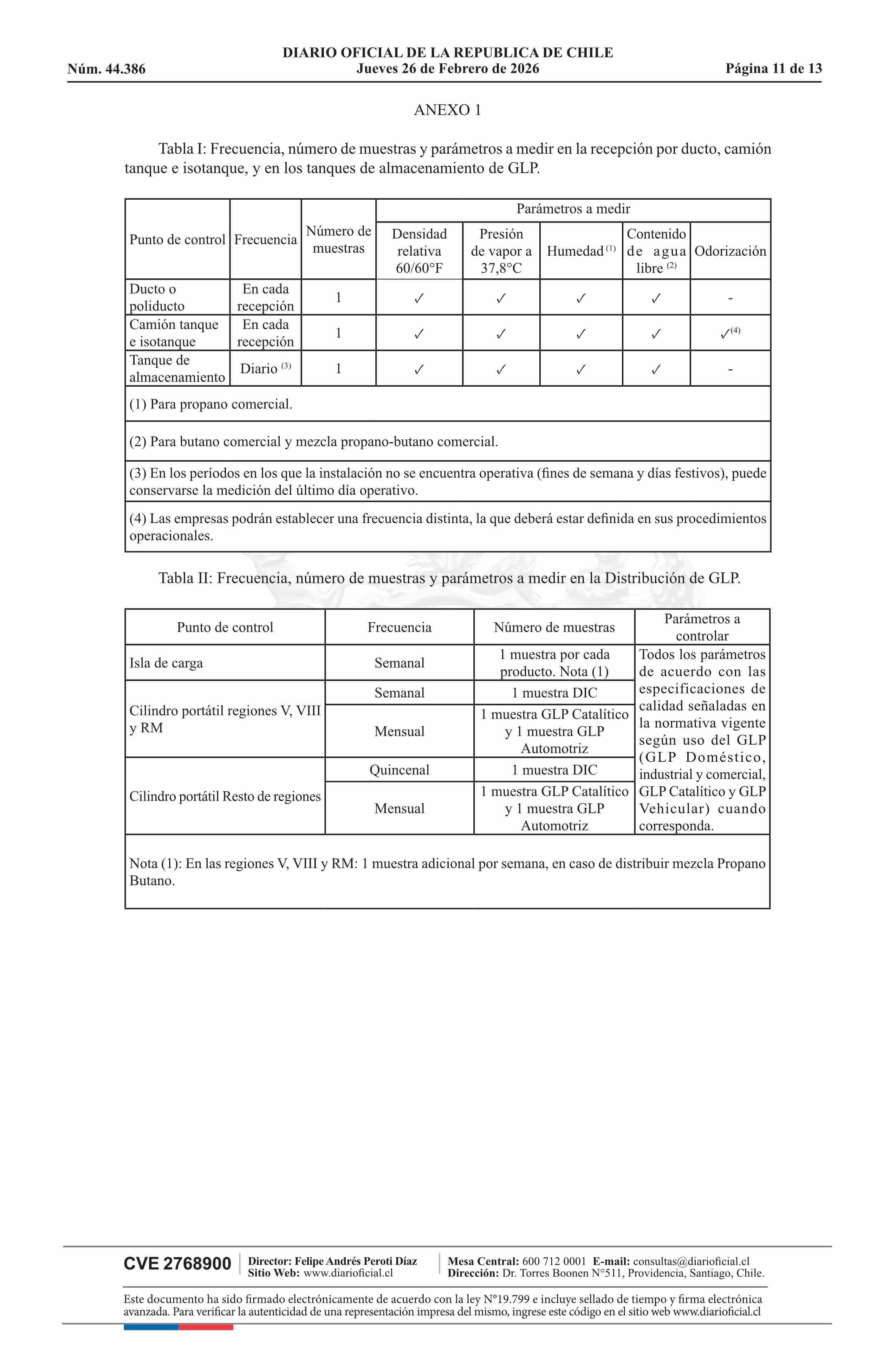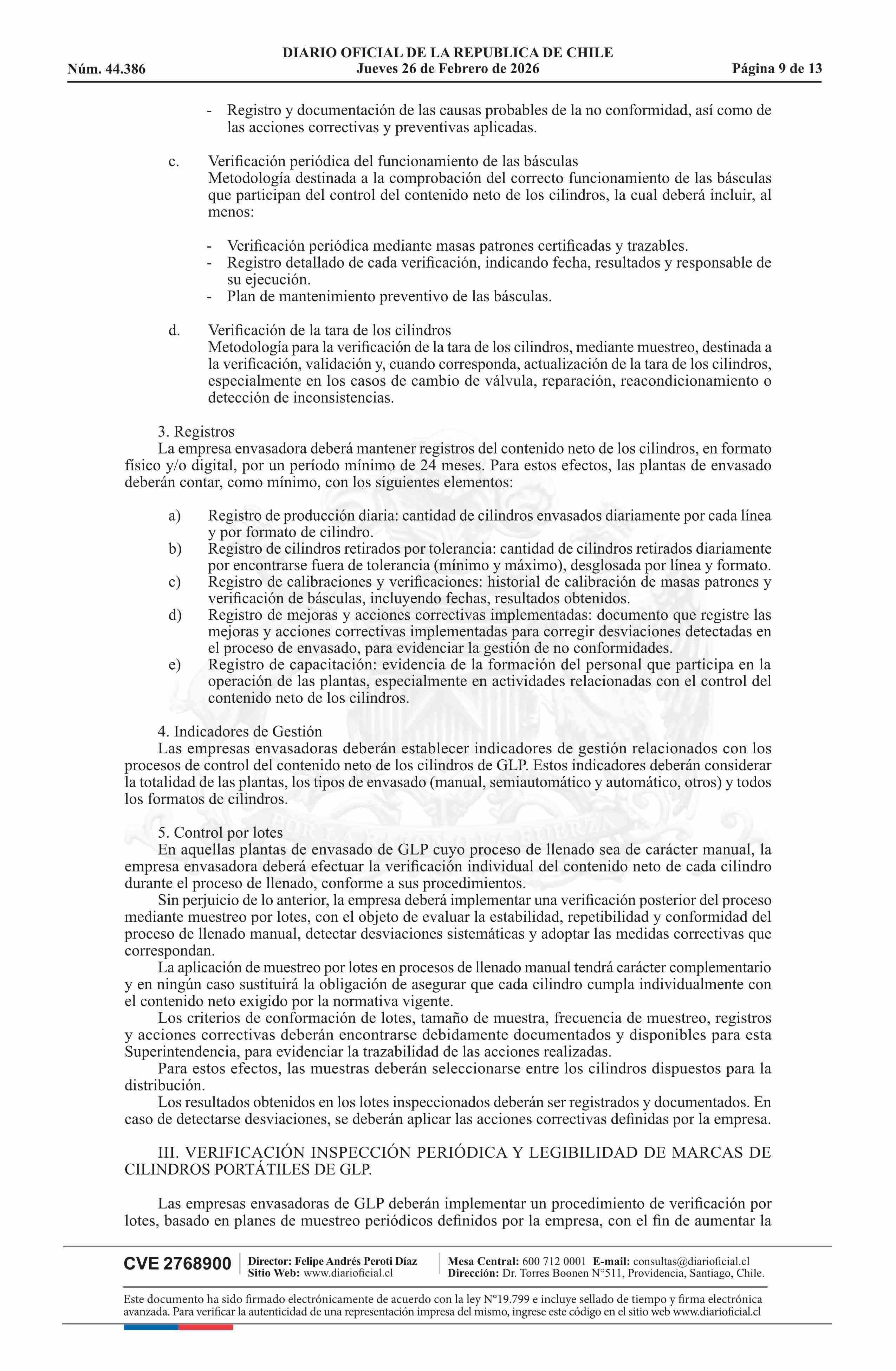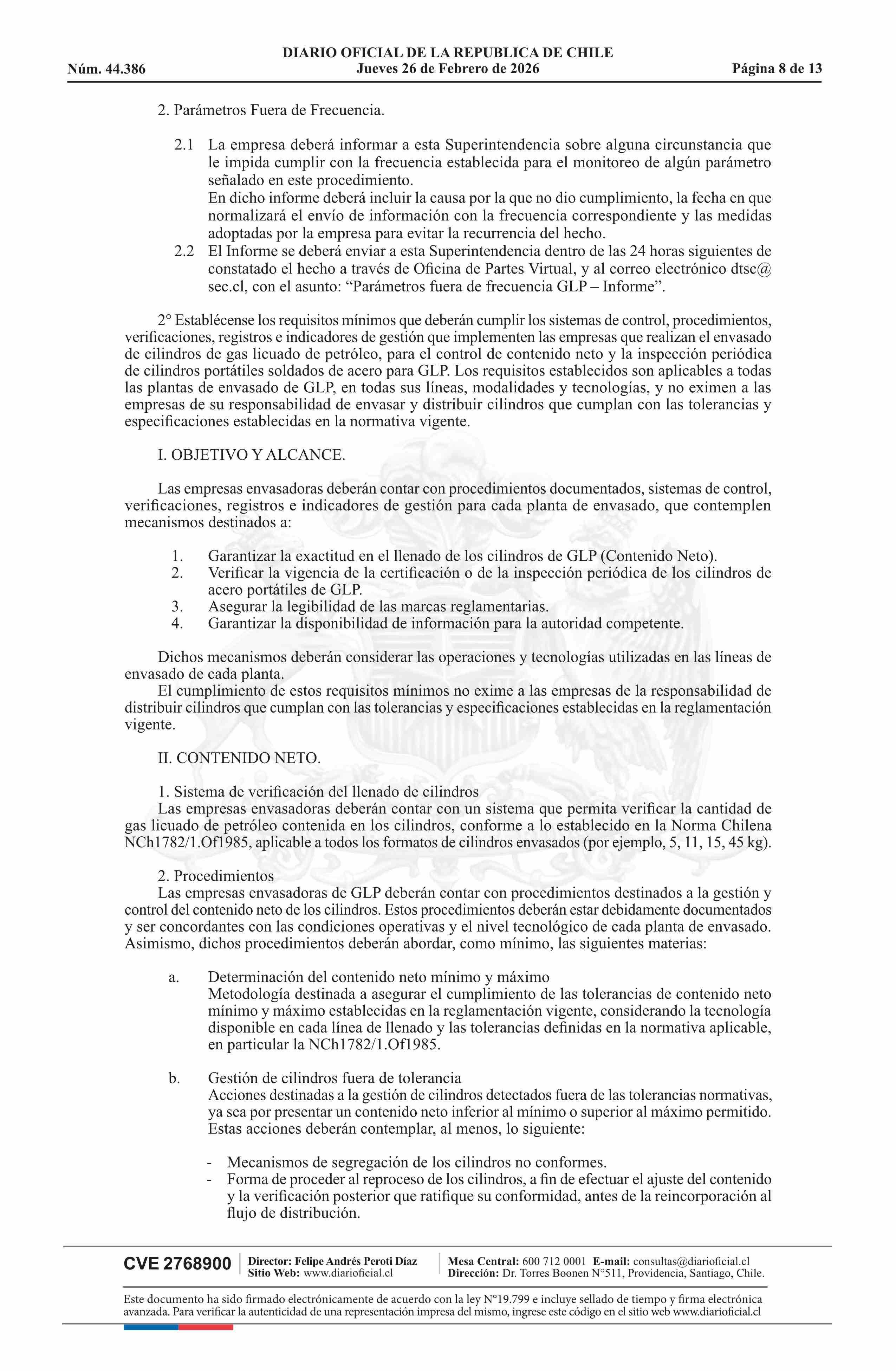 | Título: | Resolución exenta número 37.486, de 2026.- Establece procedimiento para el monitoreo de la calidad del gas licuado de petróleo e instruye requisitos en materias relativas al contenido neto e inspección periódica de cilindros portátiles de GLP |