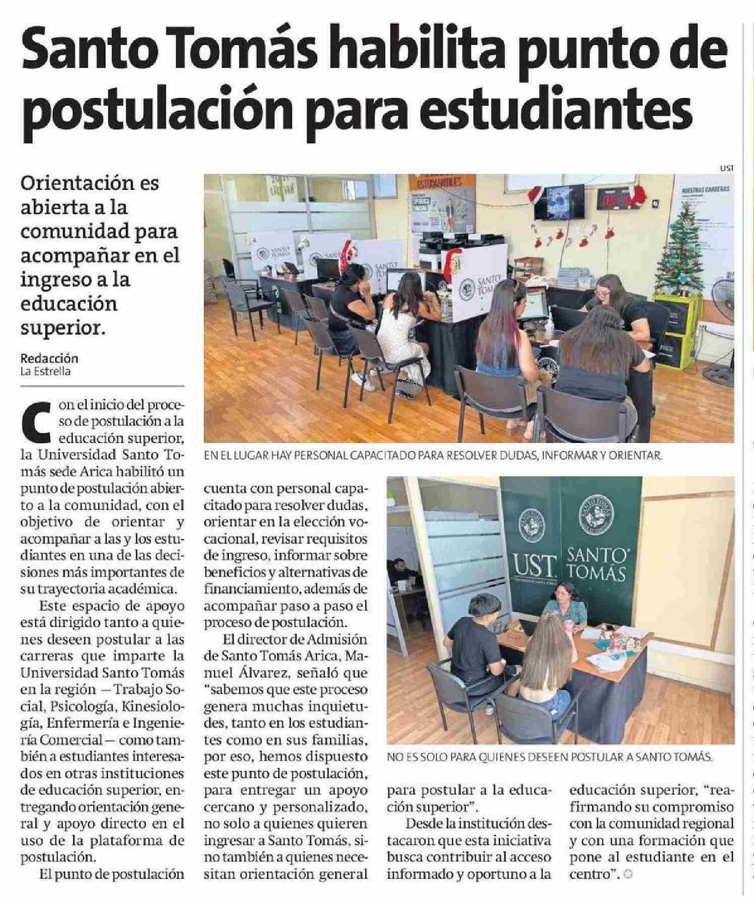 Santo Tomás habilita punto de postulación para estudiantes 06-01-2026 La Estrella de Arica |