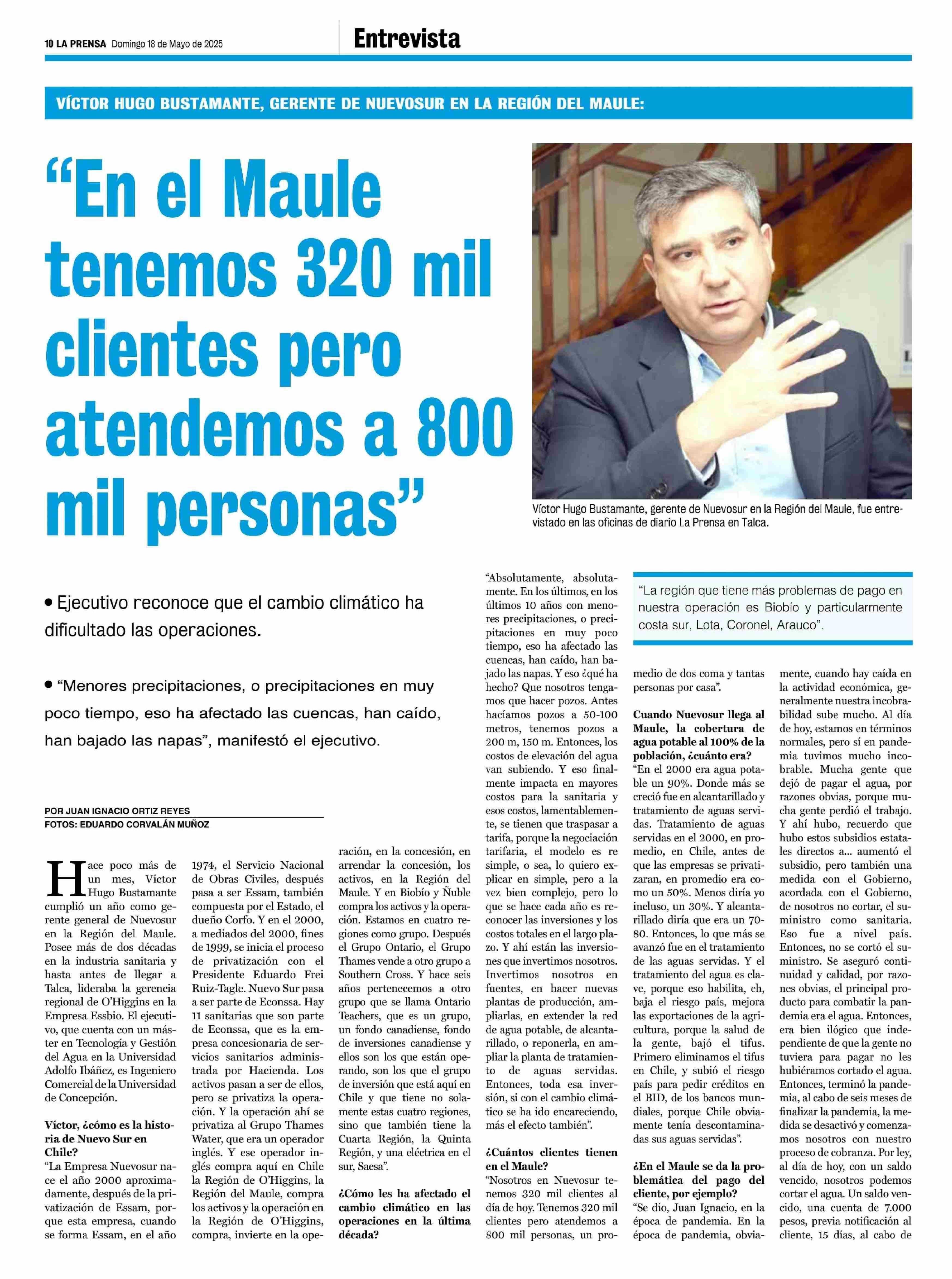 “En el Maule tenemos 320 mil clientes pero atendemos a 800 mil personas” 18-05-2025 La Prensa de Curicó |