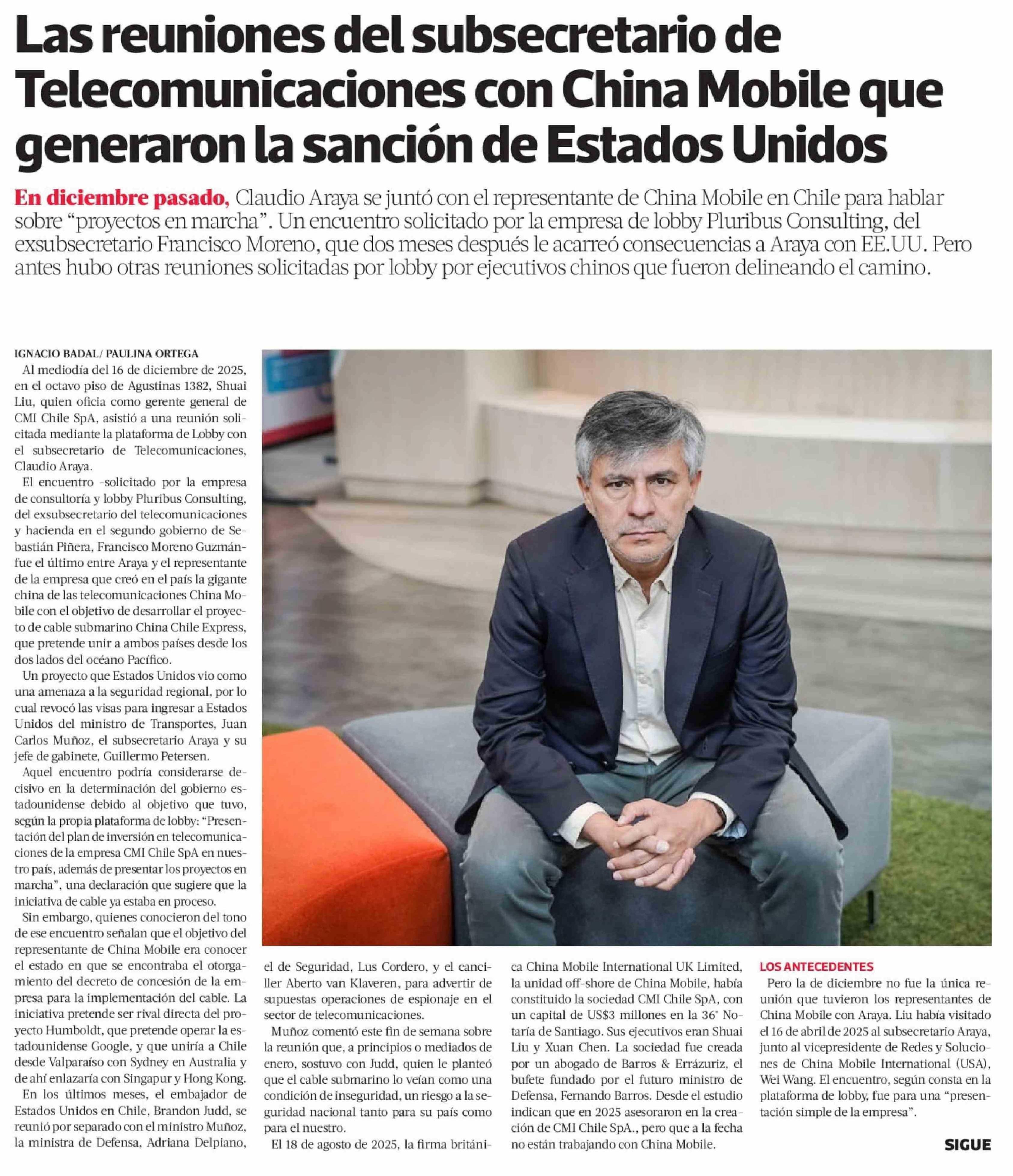 Las reuniones del subsecretario de Telecomunicaciones con China Mobile que generaron la sanción de Estados Unidos 24-02-2026 La Tercera |