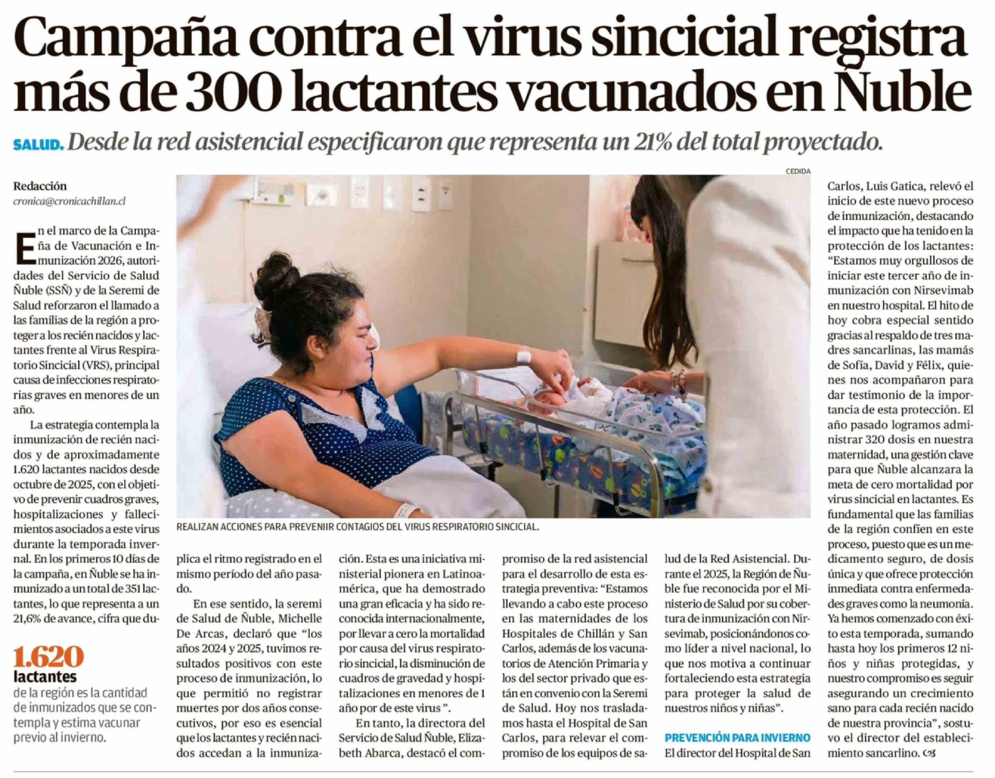 Título: Campaña contra el virus sincicial registra más de 300 lactantes vacunados en Nuble