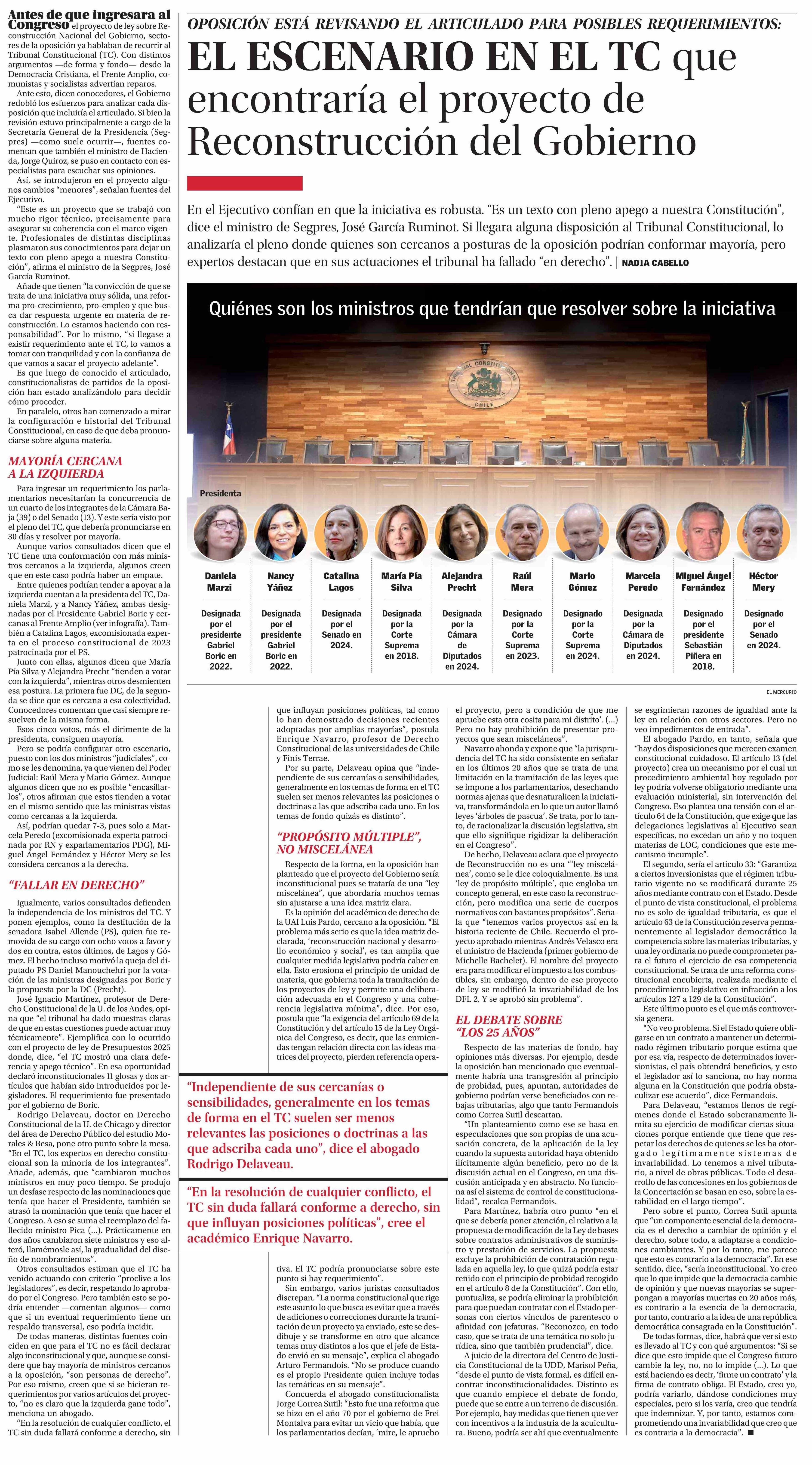 EL ESCENARIO EN EL TC que encontraría el proyecto de Reconstrucción del Gobierno 26-04-2026 El Mercurio |