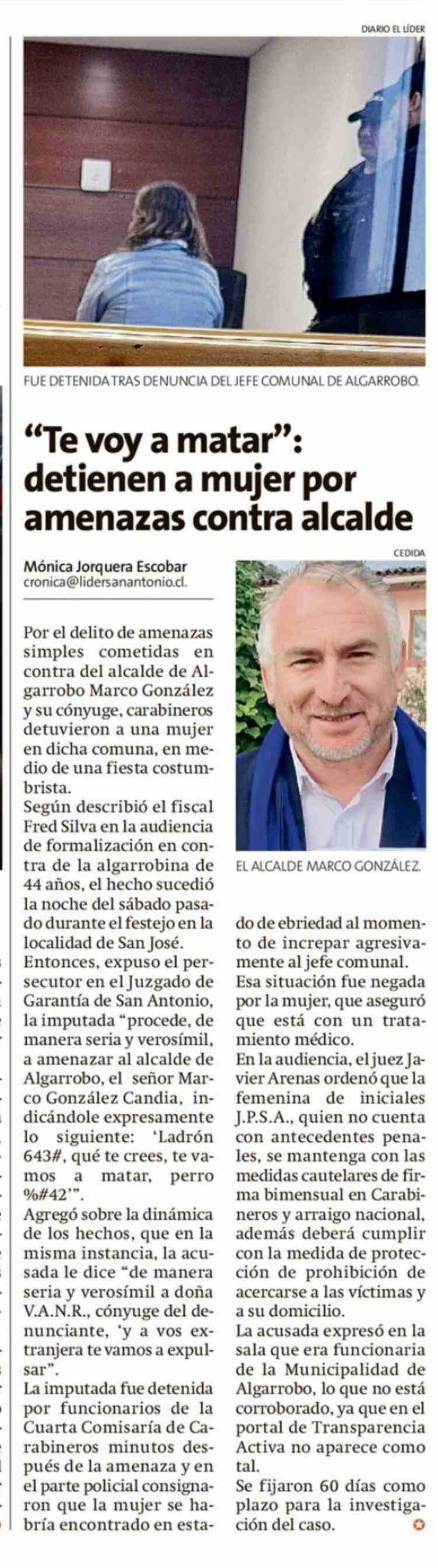 "Te voy a matar": detienen a mujer por amenazas contra alcalde 30-03-2026 El Líder |