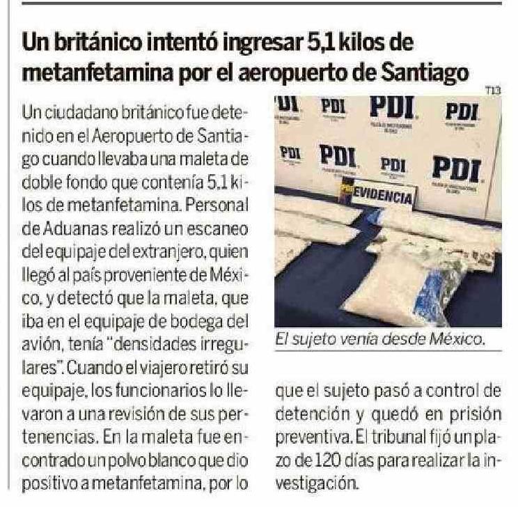 | Título: | Un británico intentó ingresar 5,1 kilos de metanfetamina por el aeropuerto de Santiago mi |