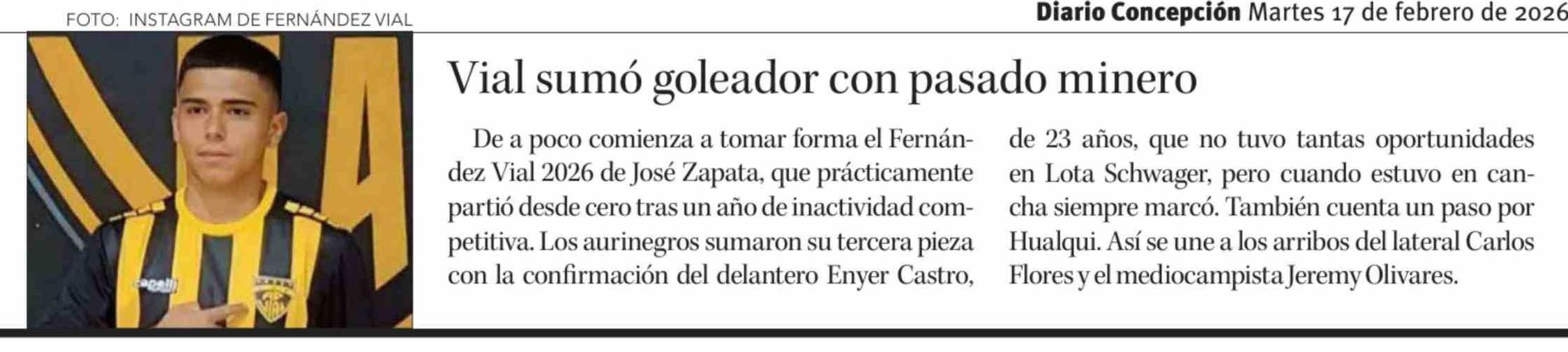 Vial sumó goleador con pasado minero 17-02-2026 Diario Concepción |