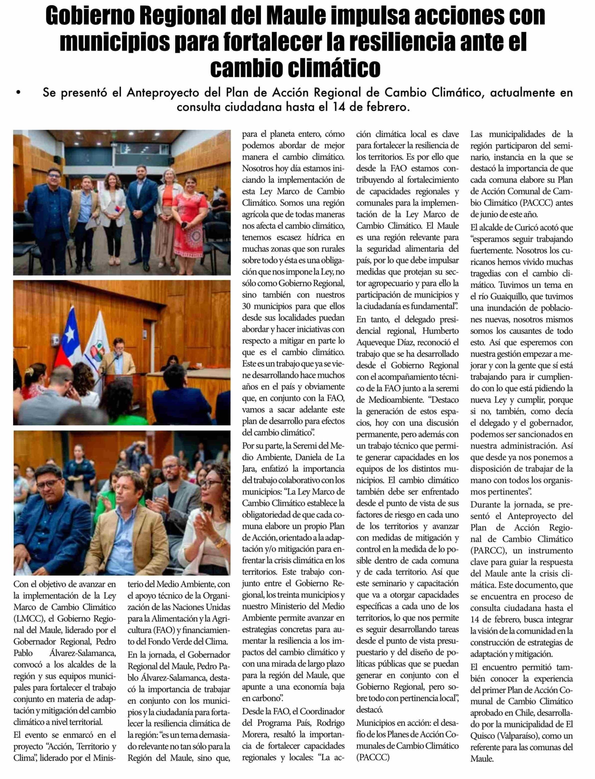 Gobierno Regional del Maule impulsa acciones con municipios para fortalecer la resiliencia ante el cambio climático 31-01-2025 El Lector |