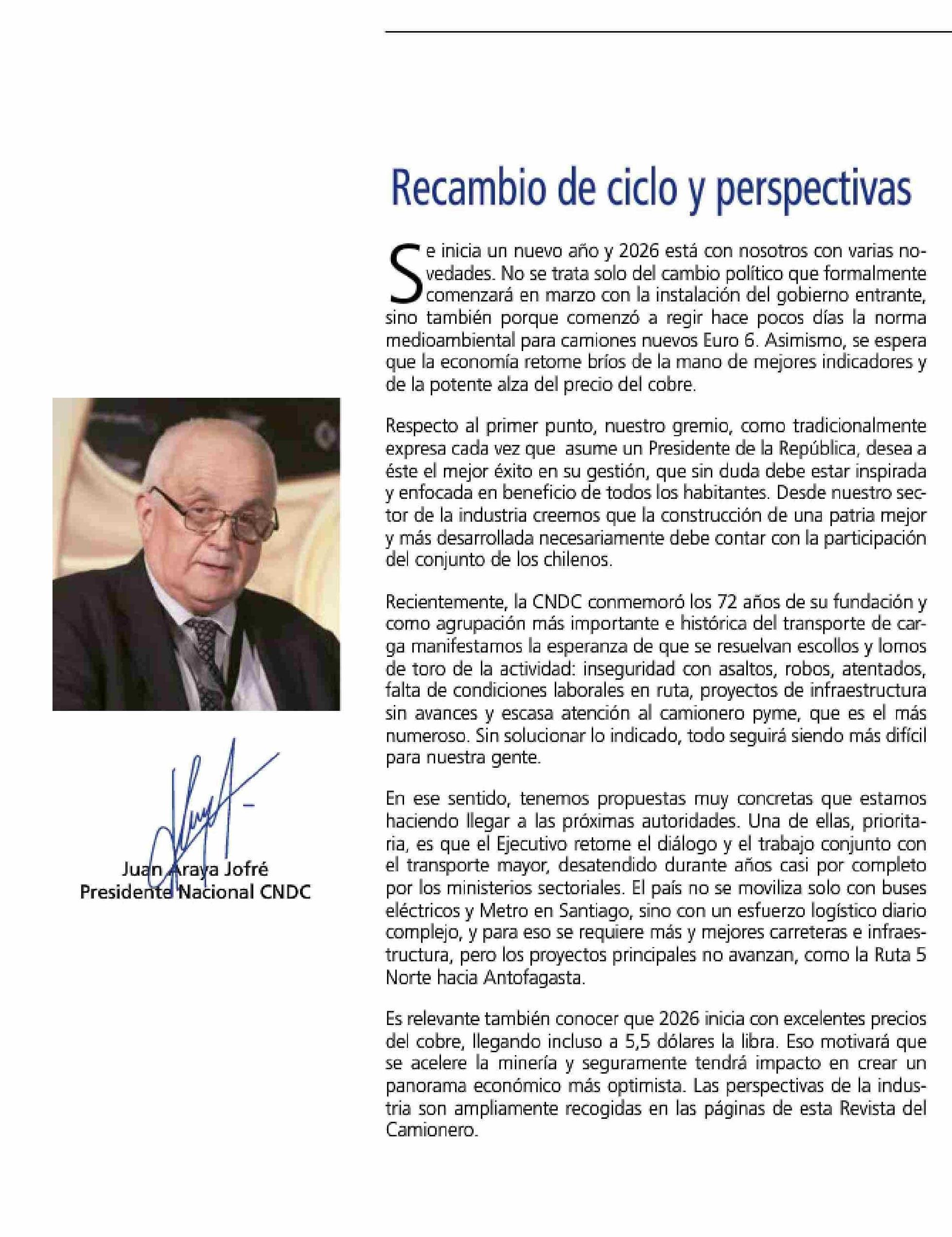 EDITORIAL: Recambio de ciclo y perspectivas 15-01-2026 Revista Del Camionero |