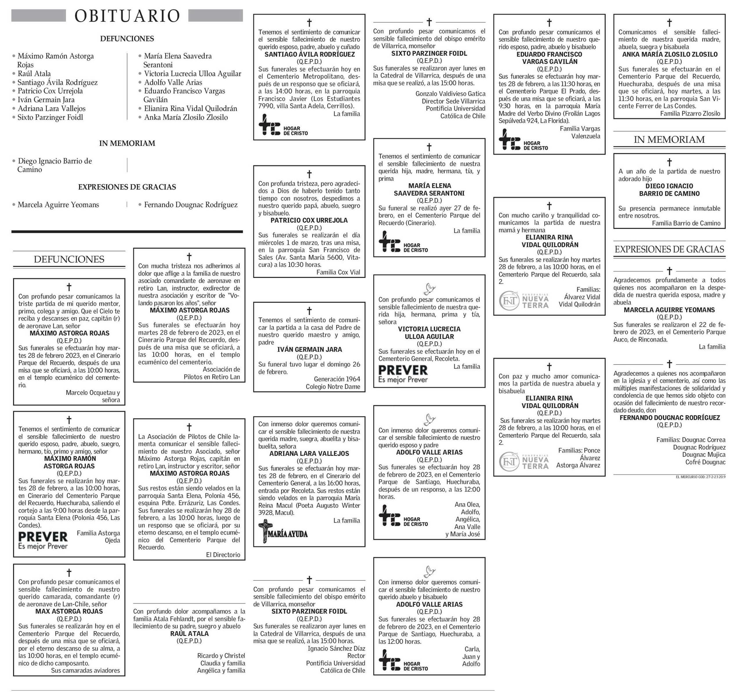 Obituario 28-02-2023 El Mercurio |