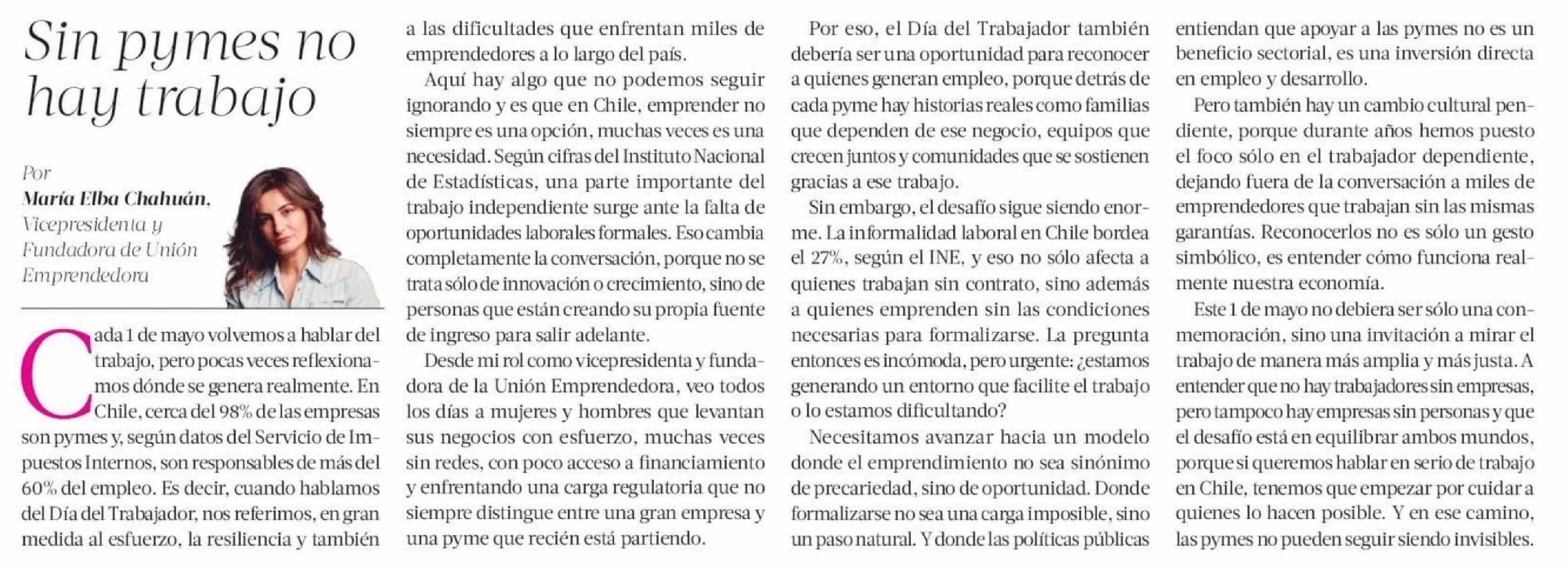 Columnas de Opinión: Sin pymes no hay trabajo 26-04-2026 La Tercera |