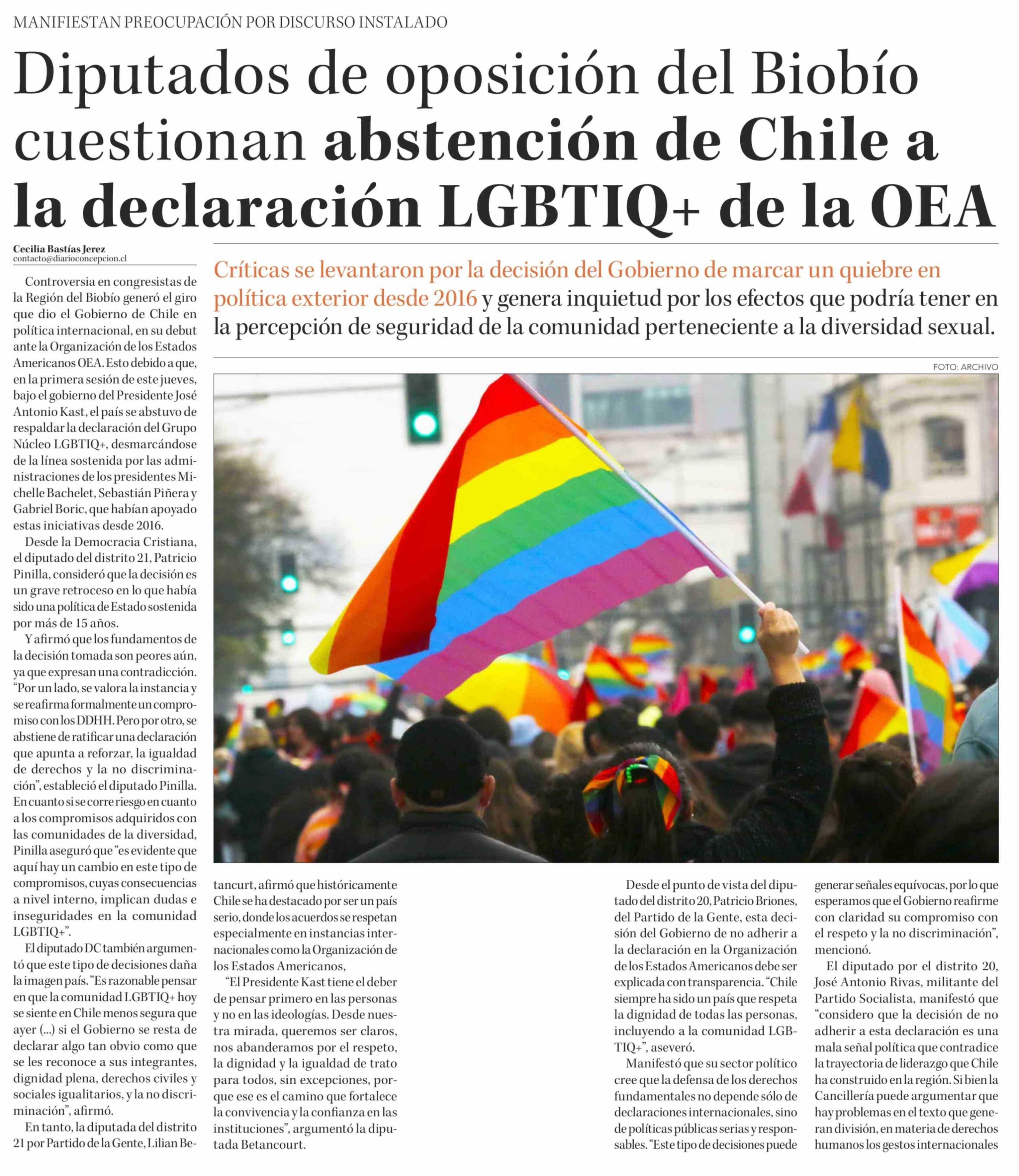 Título: Diputados de oposición del Biobío cuestionan abstención de Chile a la declaración LGBTIQ+ de la OEA