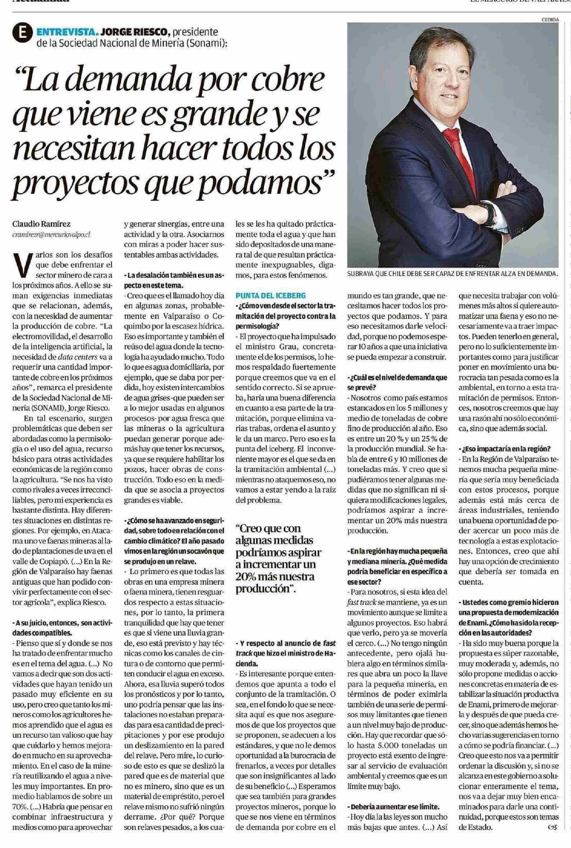 Título: “La demanda por cobre que viene es grande y se necesitan hacer todos los proyectos que podamos”
