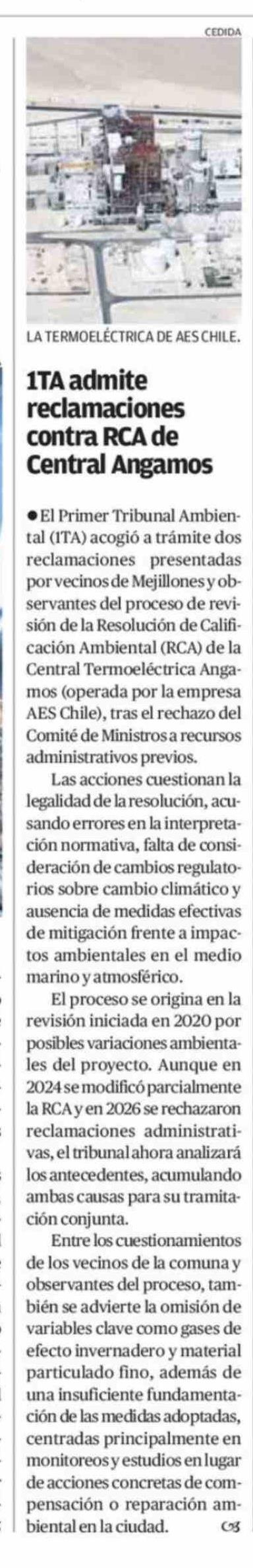 Título: 1TA admite reclamaciones contra RCA de Central Angamos
