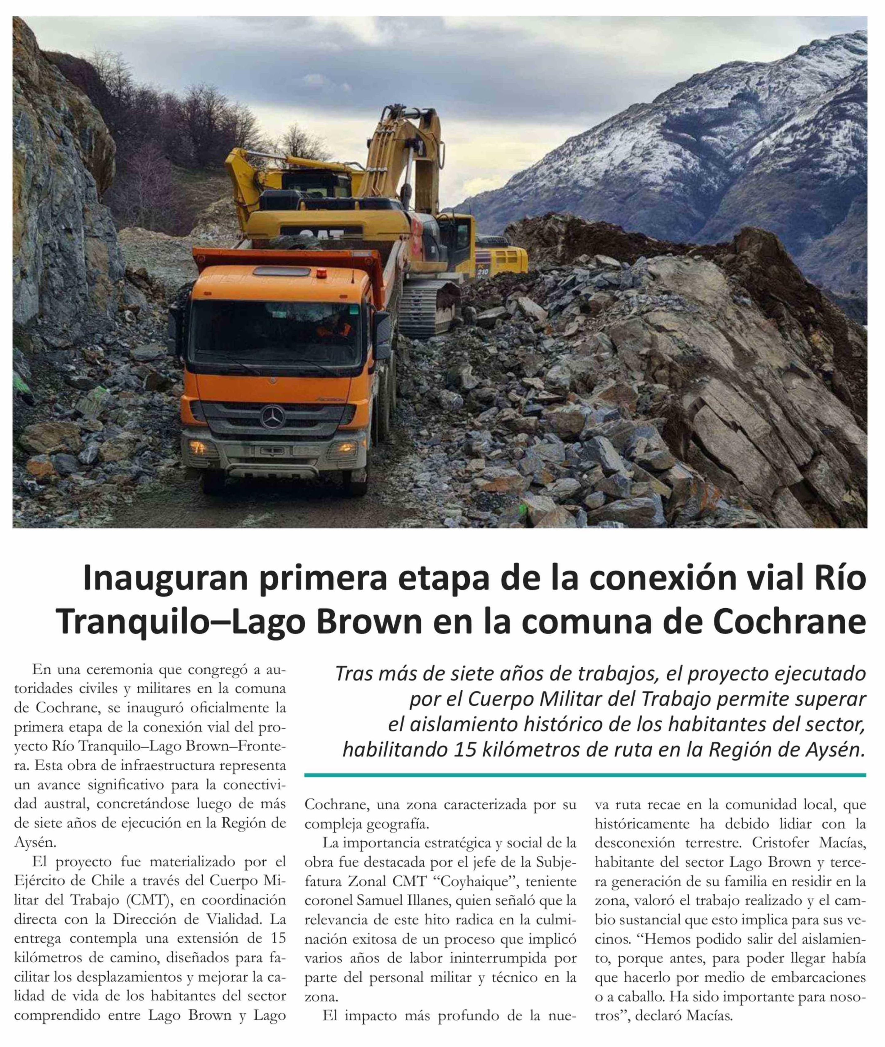 | Título: | Inauguran primera etapa de la conexión vial Río Tranquilo-Lago Brown en la comuna de Cochrane |