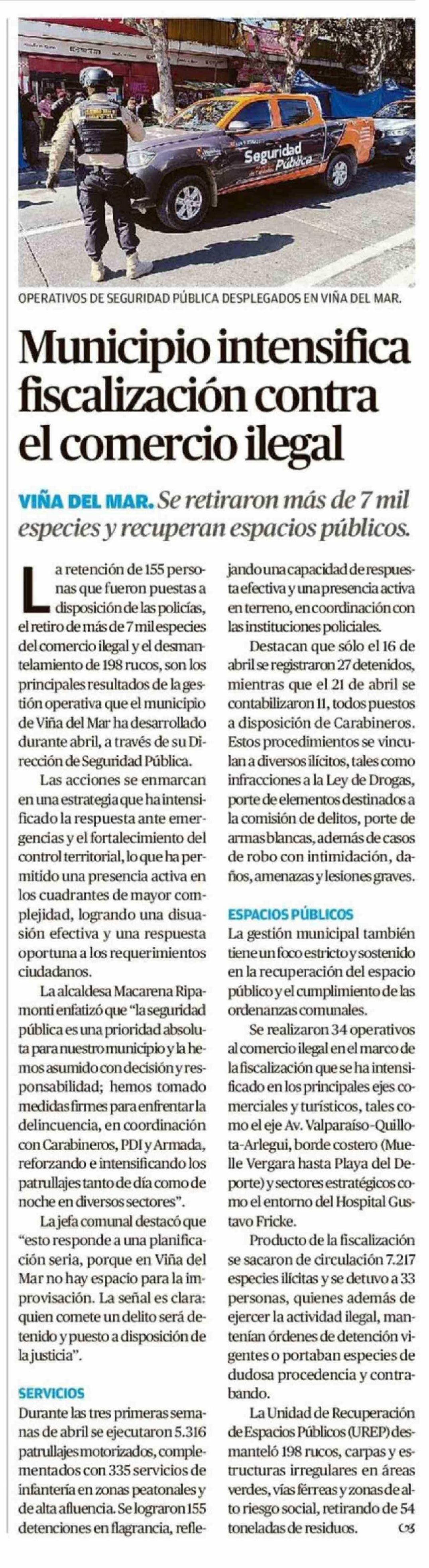 Título: Municipio intensifica fiscalización contra el comercio ilegal